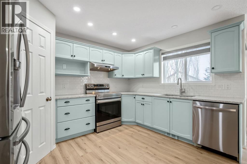 Live in Chestermere and enjoy the lake lifestyle. This update home is a rare find. Situated on a quiet street with a 2 bedroom legal basement suite! As you enter you will notice the freshly painted grand front foyer with an open to above. The kitchen is a focal point with updated cabinets, gorgeous quartz counters, timeless subway tile backsplash, stainless steel appliances, a large corner pantry for additional storage, and a sink overlooking your backyard with mature trees. Adjacent to the kitchen is the bright dinning room with access to your sunny deck. The spacious living room features a gas fireplace with a tile detail. A large front den, could be used as a former dinning room, play area, or home office. The powder room with stone counters is tucked away and conveniently located next to the laundry space and mudroom. As you head upstairs you will notice the timeless railing and large windows drawing in the natural light. The expansive primary includes a walk in closet, 5 pc ensuite with a separate shower and water closet. In addition to this there are 2 well sized bedrooms, and a 4pc main bath with stone counters. The suited walkout basement has extra large windows, an updated 3 pc bath, separate laundry space, kitchen with modern cabinets and 2 additional bedrooms. The suite has its own separate entrance and a large outdoor patio space. This is currently being rented for $1,200. This property is a rare find and includes new windows, an instant hot water tank, new plumbing and light fixtures among many other updates. Ideally located within a quick 5-minute walk to Chestermere’s private beach, scenic walking paths, and local hot spots like Dockside Bar & Grill. Only minutes to Prairie Waters Elementary, Chestermere Lake Middle School, and a short 10-minute drive to East Hills Shopping Centre, Costco, and Walmart. You’re also just 10 minutes from Calgary city limits and 30 minutes from downtown. Schedule your private showing today or view the virtual tour! (id:51913)