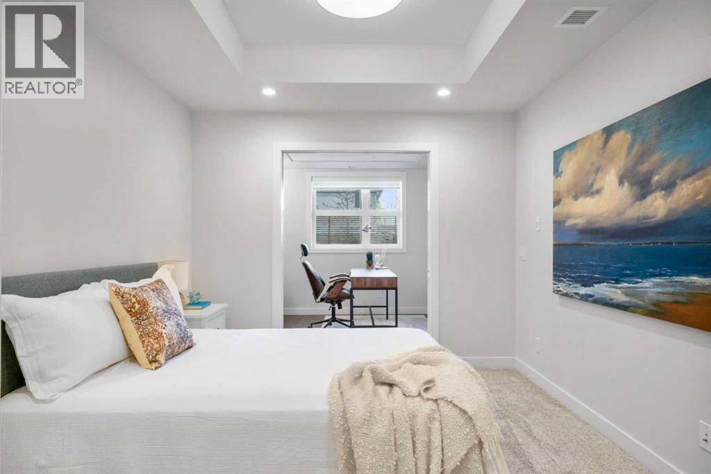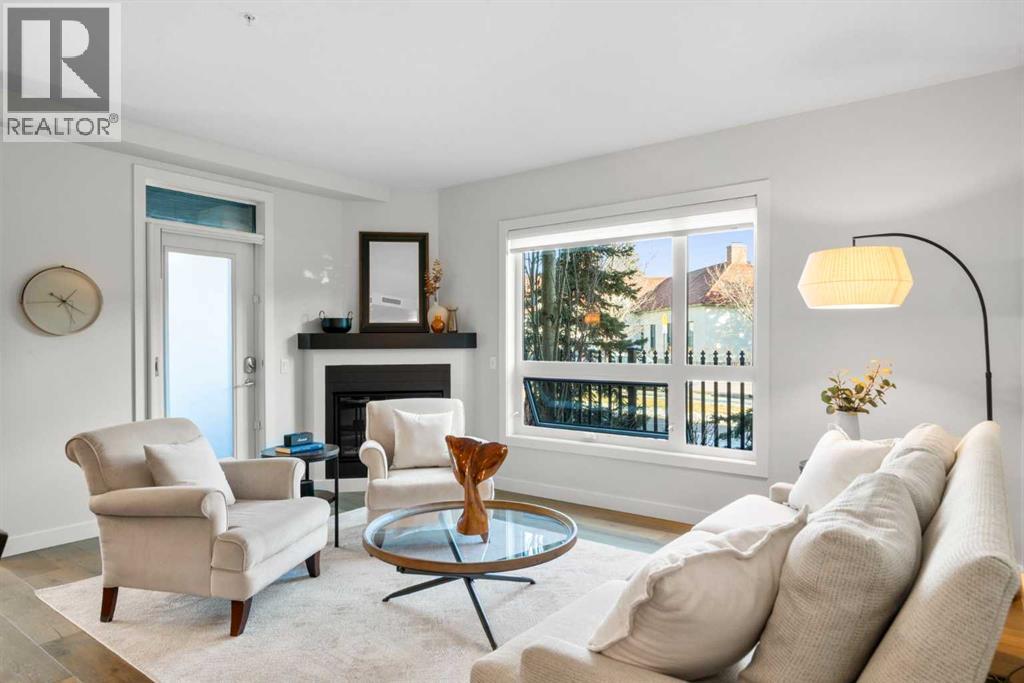 Welcome to Unit 105 at 145 Burma Star Road SW in The Armory, an elegant and refined ground-level corner residence in the esteemed Currie Barracks community. Spanning 1,161 square feet of thoughtfully designed living space with 9-foot ceilings, this exceptional home features two spacious bedrooms on opposite sides of the condo for added privacy, a private den, and two full bathrooms, achieving an ideal blend of comfort, style, and functionality.Recently painted and with new carpets in the bedrooms, this home is ready for you to move in. As a corner unit, it benefits from more windows than an interior unit, allowing for abundant natural light that enhances the airy atmosphere. The thoughtfully planned interior, accentuated by the generous ceiling height, is warm and inviting, with large windows that showcase the quality finishes throughout. The welcoming living area is anchored by a charming gas fireplace and flows effortlessly onto a private patio equipped with a gas hook-up for your BBQ, creating a perfect setting for outdoor relaxation and refined entertaining.The well-appointed kitchen combines elegance with practicality, offering ample cabinetry and counter space for everyday living and hosting guests. An open dining area conveniently connects the den and kitchen, providing an inviting space for meals and gatherings. The primary bedroom serves as a peaceful retreat, complete with its own ensuite bath, while the second bedroom, situated on the opposite side of the condo, along with the versatile den, provides excellent flexibility for a home office, guest room, or creative space.Convenience is further enhanced by a dedicated laundry room with additional storage, ideal for keeping an organized home. This exceptional property also includes the rare advantage of two titled parking stalls, along with two storage cages conveniently located nearby. The building has central air-conditioning and is pet-friendly, making it an excellent choice for pet owners.Perfect ly situated, the home is just a five-minute walk to Mount Royal University and only a twenty-minute walk to the boutiques, cafés, and renowned restaurants of vibrant Marda Loop. Enjoy a meal across the street at The Inn on Officers Garden, or take a five-minute stroll to Wild Rose Brewery for dinner and drinks at Veranda at The Stables. Parks, scenic pathways, and convenient transit are all close by, providing quick and easy access to downtown Calgary.Combining timeless elegance, exceptional space, and a desirable location, this residence offers a truly elevated lifestyle in one of Calgary’s most sought-after neighbourhoods. (id:51913)