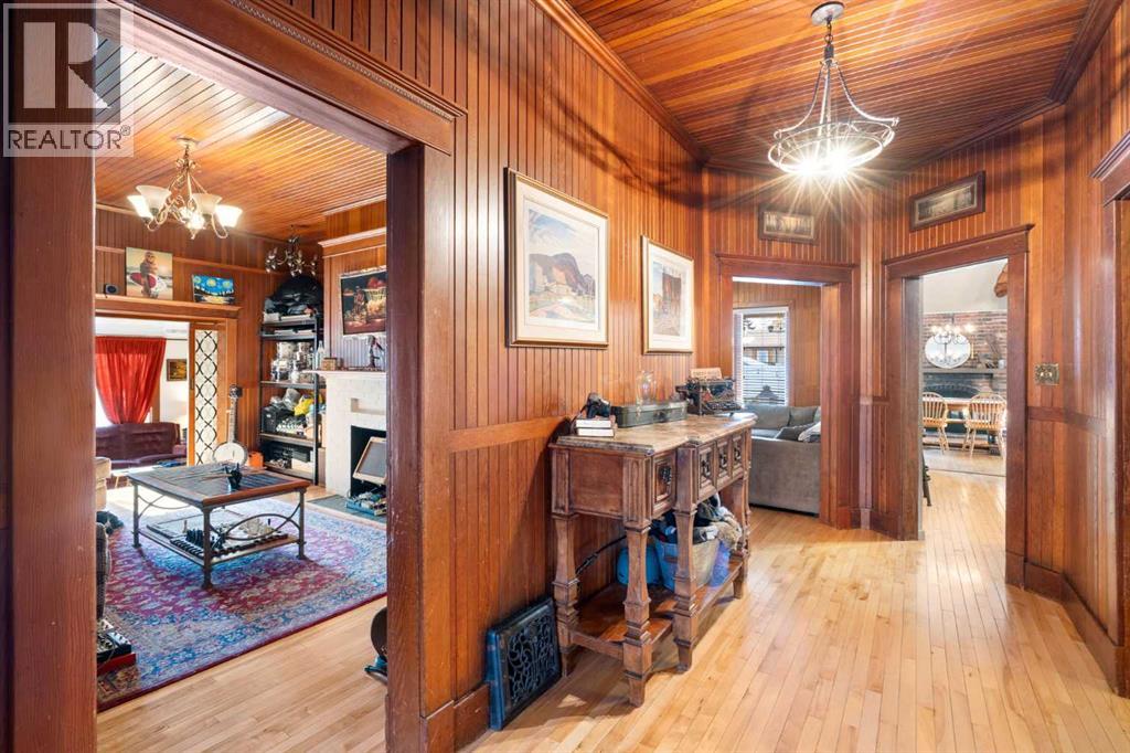 Once in a lifetime opportunity to own a truly irreplaceable piece of Calgary history. Originally the homestead of A.E. Cross and later the site of the original Braeside Farms, this is a property that simply cannot be replicated.Set on one of the largest lots in Braeside (¼ acre), this 2,901 sq. ft. bungalow is the largest bungalow ever offered in the community. Located on a quiet street on a raised lot with low-maintenance stucco exterior, the home offers exceptional curb appeal and privacy. Inside, original character has been carefully preserved and complemented by thoughtful updates over time. Fir detailing, slate tile, and hardwood flooring run throughout the main level. The front living room features the original floor-to-ceiling river stone fireplace, while a fir-paneled parlor provides a perfect home office or sitting room. The kitchen has been tastefully updated with white cabinetry, subway tile backsplash, updated counters, coffered ceiling, and stainless steel appliances including a gas range. Adjacent family and dining rooms boast both rich with original fir walls and detailing ideal for everyday living and entertaining. The dining room also features a third original fireplace, built-ins, and garden doors leading to the backyard. Three bedrooms are located on the main floor, including a spacious primary retreat with a third fireplace and spa-style ensuite with glass shower and jetted soaker tub. A second full bathroom, heated solarium, and large main-floor laundry room add flexibility and function. The fully developed lower level includes a fourth bedroom with adjacent 4-piece ensuite, a unique library with built-in shelving and reading nook, media room, and a flexible exercise or office space. Outside, the oversized private yard is a true highlight, featuring a large deck, mature trees and landscaping, ample lawn space, concrete sports pad, and white PVC fencing. An over-height double detached garage completes the property. Numerous updates have been com pleted over the years, including bathrooms, multiple high-efficiency furnaces, hot water tanks, roof replacement, and modernized finishes, all while preserving the home’s historic charm. A rare combination of history, scale, lot size, and character, this is one of Braeside’s most iconic homes ever to come to market. Please email realtor if you would like the virtual walkthrough and/or floorplan, but must be seen in person to see it's full grandeur. (id:51913)