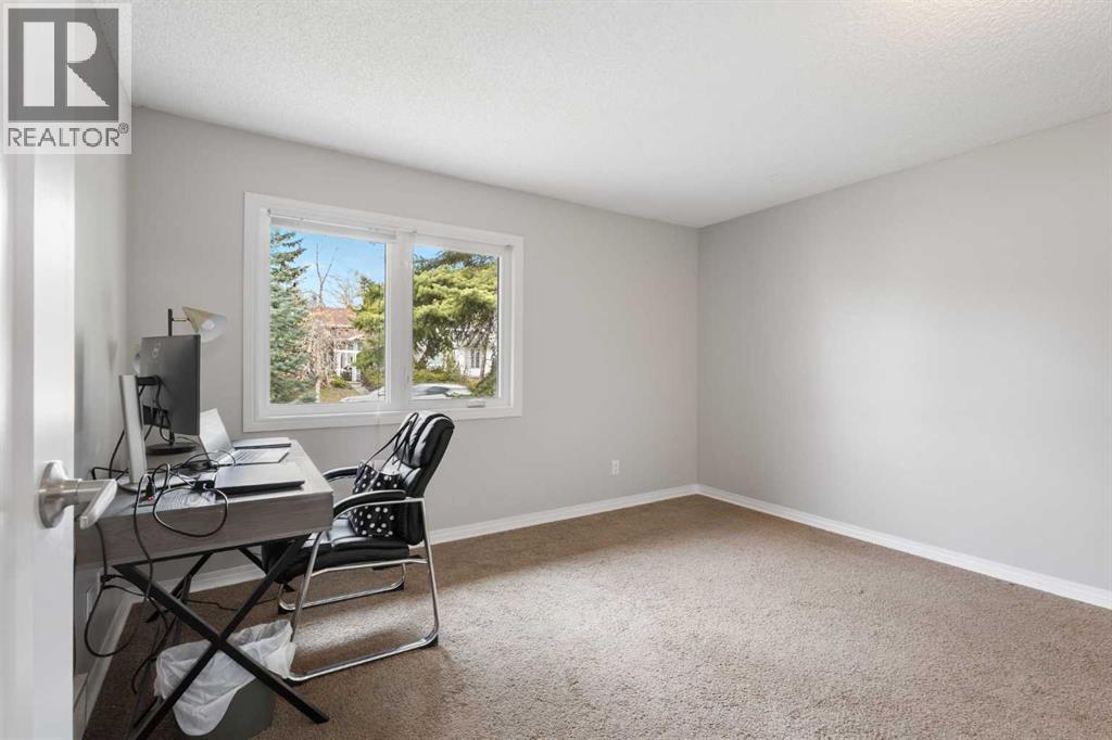 Welcome to this beautiful and spacious bungalow perfectly situated in the desirable community of Woodbine, just a 3-minute walk from Woodbine School and steps away from the scenic trails of Fish Creek Park. Upon entering, you are greeted by a large new window that allows natural sunlight to penetrate the living space, highlighting the cozy wood-burning fireplace. The primary bedroom serves as a private retreat featuring its own convenient 3-piece ensuite bathroom. The home also includes a thoughtfully remodeled kitchen (2009) and newer stainless steel appliances (2023) and the entire interior has been refreshed with new paint. The basement has been fully renovated to provide additional living area and features a second wood-burning fireplace, adding warmth and character to the lower level. Comfort is guaranteed year-round with the inclusion of central air conditioning and a new furnace (2021), while the home's exterior was updated with new roof shingles in 2018. Step outside to a massive tiered deck, perfect for sun-soaked entertaining. The unique pie shape lot has an extra provides an abundance of extra green space and a rare sense of openness. Rounding out this outdoor oasis is an oversized double detached garage, offering plenty of room for vehicles, a workshop, and extra storage. (id:51913)