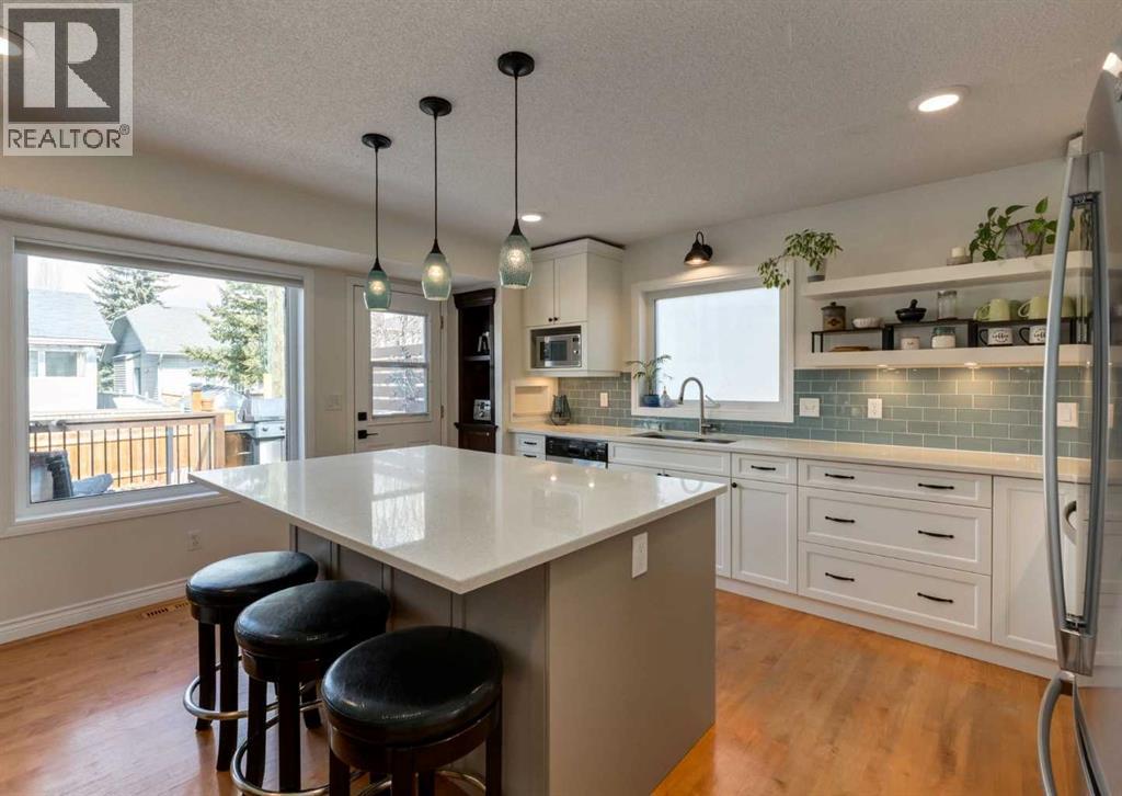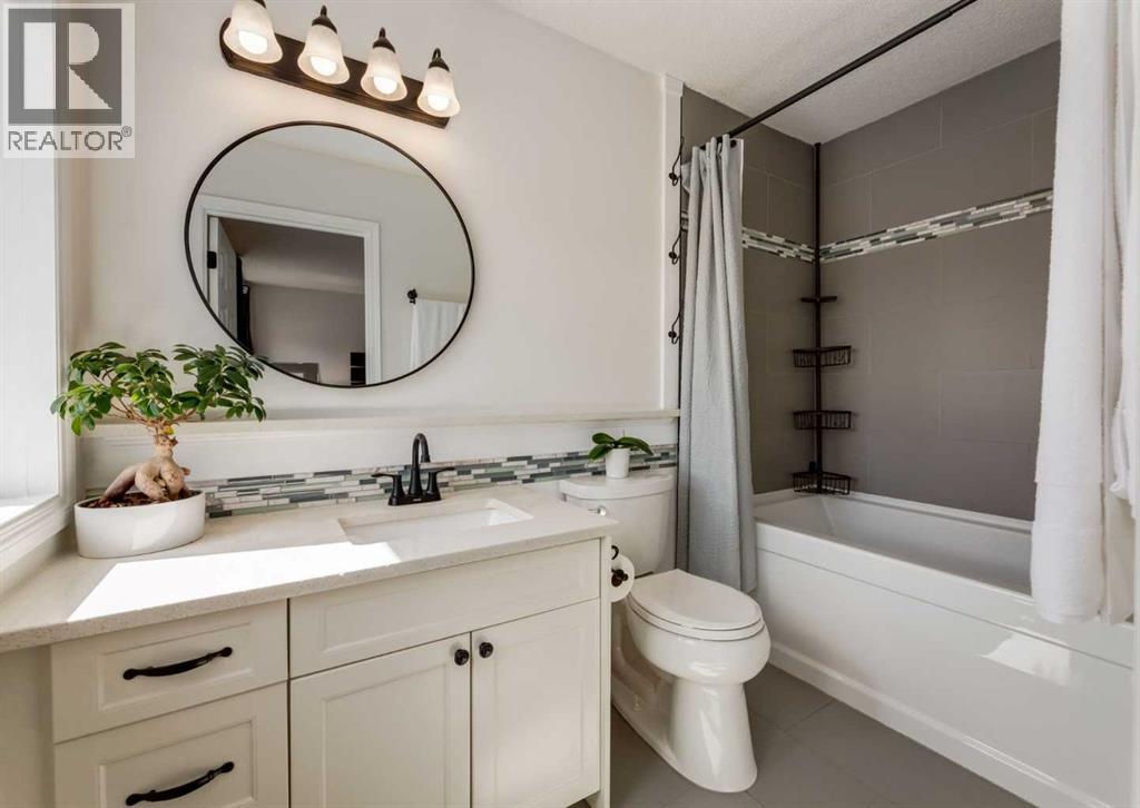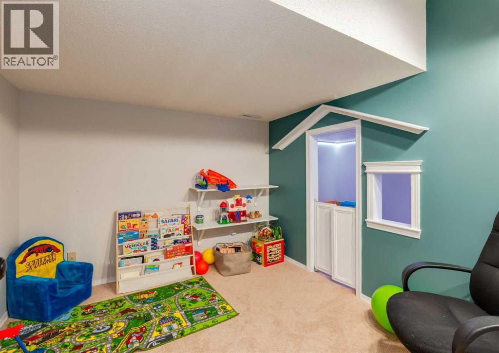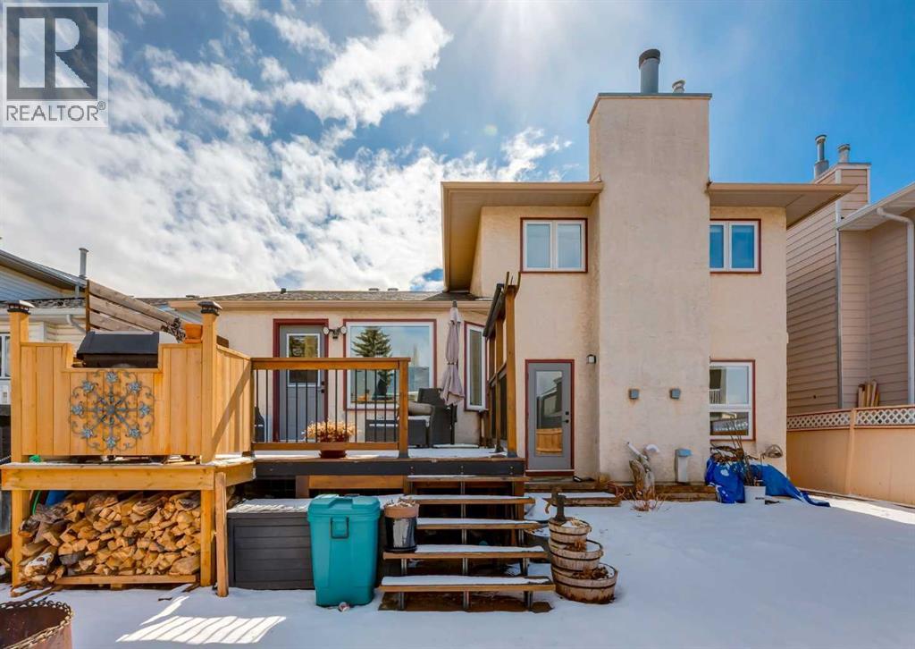 This home truly sets itself apart. Significantly upgraded, remodeled, and filled with wonderful tasteful details. Located on a Cul de sac nestled in the heart of family friendly Sundance, with lake privileges, 6 schools & quick access to Stoney Tr. It is the perfect family home! All Poly B Plumbing has been removed, enjoy new central air, a newer high efficiency furnace with UV filter, triple pane windows, a stucco exterior, newer fence, cedar deck with gas BBQ line, a low maintenance professionally landscaped front yard. The overhead garage door is insulated, the garage is insulated & drywalled, and the front driveway is extra long to welcome friends and family. Inside is a great floor plan with refinishable hardwood floors through out the main level, fresh paint & updated lighting. The front living room is flooded with natural light accentuated by the vaulted ceiling and is open to the generous dining space. The fully renovated kitchen is chic, functional and modern with loads of cabinets, pots & pan drawers, a center island with seating, quarts counter tops, and glass back splash all adorned by tasteful custom built in artisan cabinetry bringing character to an already great space. Cozy up to the fireplace as you step down to the large family room with space for the whole family. The Stately barn door slides to reveal a convenient main floor laundry room with awesome build in storage that discreetly leads to a 2 pc powder room. The interior garage entry with separate coat closet and access to the basement resides here too. Upstairs is a generous primary bedroom with a full wall closet complete with closet organizer and lovely renovated 4 pc Ensuite. Two additional bedrooms, a custom created linen closet adding a touch of flair and a 4 pc main bath complete this level. The finished basement is home to a large Rec/Great Room, a flex room currently built into a play area with the cutest playhouse! Carrying on, is a 4th bedroom and a large storage/utility area . The back yard has 2 rear entry doors, one off the kitchen opening to the raised, private deck, perfect for barbequing & the 2nd is off the Family room with stone steps down to the lush lawn. Sundance is more than a lake community it is a family friendly, convenient lifestyle boarding onto Fish Creek Park, surrounded by shopping, services, amenities and more. Come experience the Sundance Lifestyle. (id:51913)