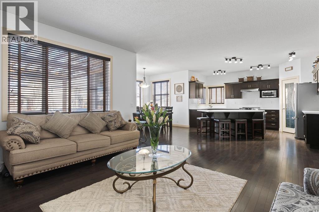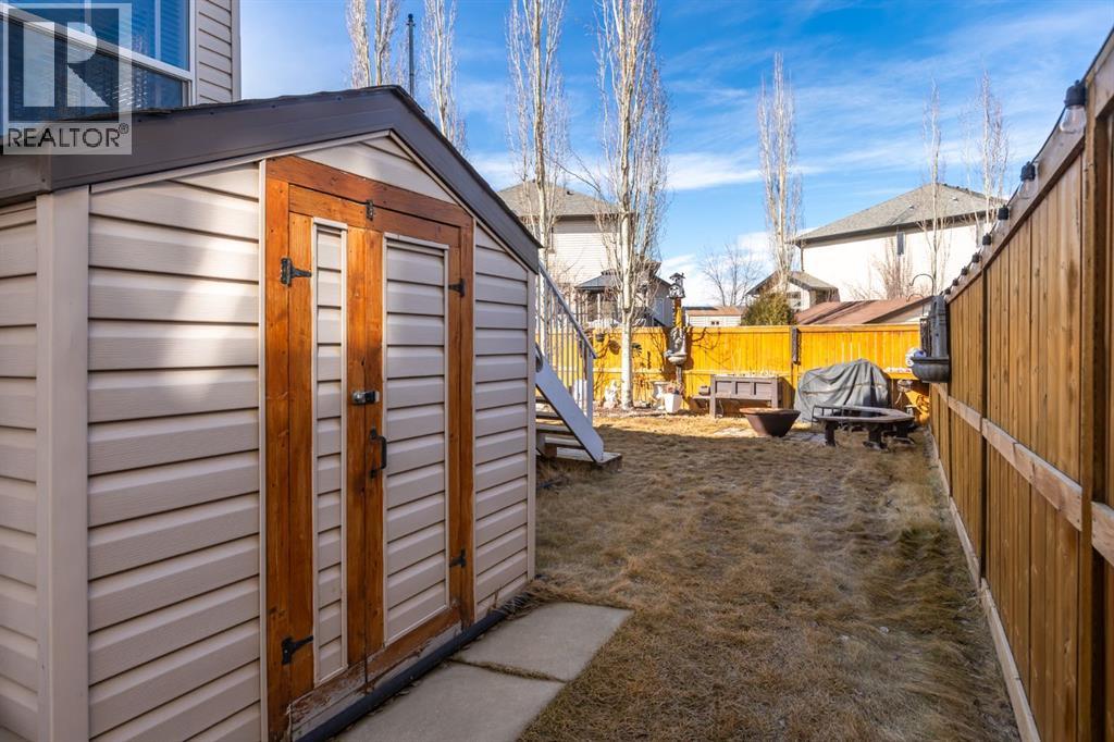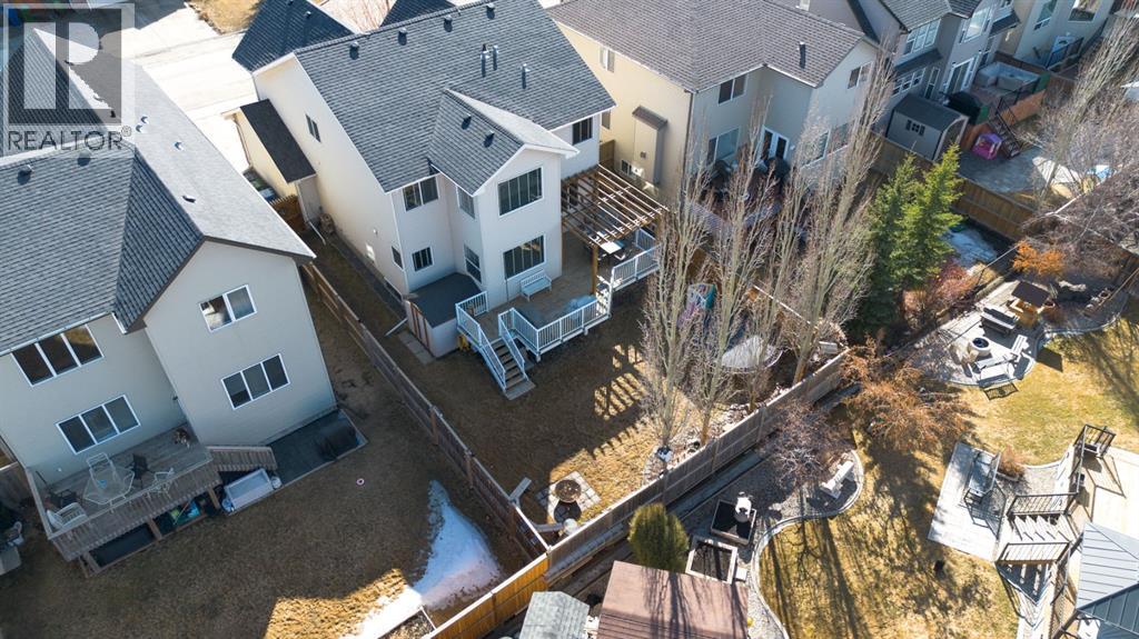 Beautifully maintained home being sold for the 1st time! Located on a quiet and well established street in Rainbow Falls, within walking distance to all amenities. Wonderful floor plan with 3 bedrooms, 2.5 bathrooms and nearly 2500 SQ FT! You will be immediately impressed by the vaulted entrance and bright, natural light. The main floor boasts HARDWOOD FLOORS, 9 FT CEILINGS and an open concept with tons of windows. The kitchen is set up perfectly for cooking and entertaining, with a MASSIVE QUARTZ ISLAND, stainless steel appliances, dark maple cabinetry and a convenient walk-thru pantry. Carry your groceries directly from the garage, straight into the kitchen. There is also an office space with French doors and 2-pc guest washroom on the main level. Head upstairs to your incredible owners retreat, equipped with its own relaxation nook, to enjoy lounging or reading. 5-pc ensuite has DUAL VANITIES, SOAKER TUB and WALK IN CLOSET. Two more bedrooms, a 4-pc bathroom and a sun filled bonus room complete the upper level. Basement has been framed and is awaiting your creative touch. The backyard features a large deck, screened pergola and lush and private landscaping. Storage shed and fire pit are included. HEATED GARAGE with ample shelving and large driveway. CENTRAL AIR CONDITIONING and GAS FIREPLACE will keep you comfortable all year long. Other bonuses include: TANKLESS HOT WATER HEATER, sump pump, central vacuum and 2 high efficiency furnaces. This is a lovingly maintained ORIGINAL OWNER HOME in a family friendly community. Within walking distance to the Elementary school, Middle school, Seagreen community gardens, hockey rink, skate park, community waterfalls and Chestermere Lake - You will LOVE living here! Book a showing before it's too late and CHECK OUT THE 3D VIRTUAL TOUR! (id:51913)