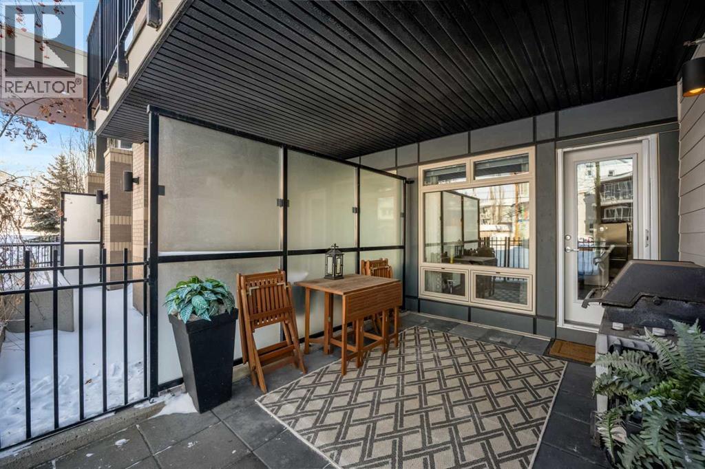 Located in the sought after Ven of Kensington, this ground floor one bedroom apartment offers modern construction, direct outdoor access, and an exceptional west Sunnyside location just steps from Kensington and minutes to downtown.Measuring 580 square feet, the layout is bright and efficient, enhanced by 9 foot ceilings that create an open, comfortable feel. The kitchen features quality stainless steel appliances and flows into the main living area, while in suite laundry adds everyday practicality. The bedroom and full bathroom are well proportioned, making the home equally suitable for personal use or rental income.The standout feature is the spacious private patio. Larger than most upper floor balconies, it provides direct gated access to the street, a rare advantage in apartment living. For dog owners, this location is especially appealing, with the Rosedale Off Leash Area and McHugh Bluff Playground directly across the street, offering immediate access to green space and walking paths.Built in 2015, the Ven offers secure underground parking with one titled stall included, along with an assigned storage unit. The parkade also features a workshop and two bike storage areas, ideal for those who take advantage of the nearby Bow River pathway system and quick downtown cycling routes.Sunnyside continues to attract first time buyers, investors, and adults in transition who value walkability and connection. Kensington’s cafés, restaurants, and daily services are only minutes away, and the Sunnyside CTrain station makes car optional living realistic. A well located, low maintenance home that combines convenience, comfort, and long term appeal in one of Calgary’s most established inner city communities. (id:51913)