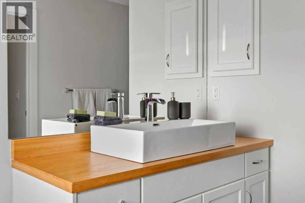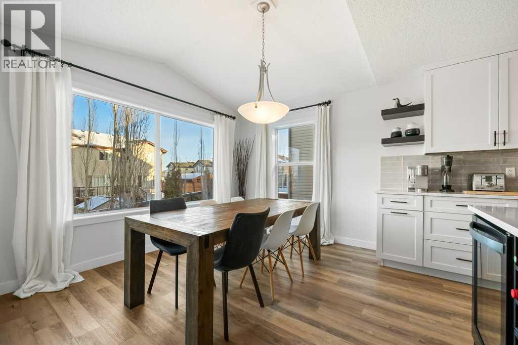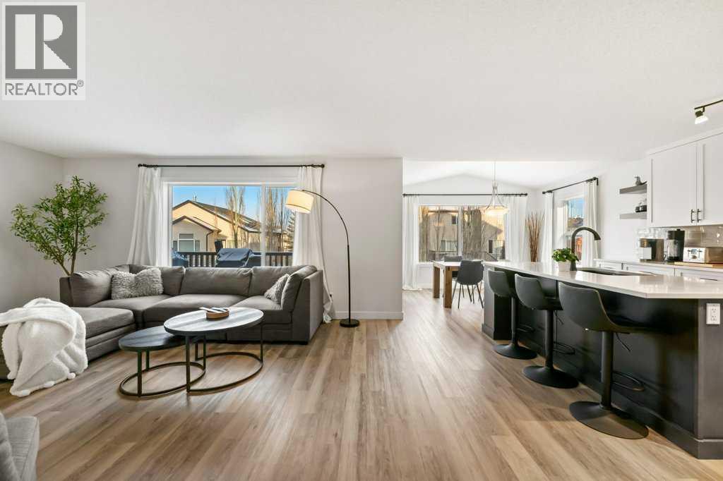 Perfectly situated in a family-friendly location, this beautifully updated home offers the ideal balance of walkability, lifestyle, & thoughtful design. Just steps from Our Lady of Wisdom School and Rainbow Creek Elementary, with nearby commercial amenities close at hand, residents will also enjoy easy access to a nearby bike park & scenic canal pathways. Quick access to Lakeside Golf Greens, Chestermere Lake, & Chestermere Lake Middle School further enhances the appeal of this exceptional location. The main floor welcomes you with fresh vinyl plank flooring, neutral paint tones, & the comfort of central air conditioning. Natural light flows through vinyl windows, while the layout has been carefully curated for both function & style. Direct access from the double attached garage leads into a well-designed mudroom & laundry area finished with hex tile flooring, added cabinetry & raw wood and metal shelving that adds character & warmth. A chic two-piece bathroom completes this level, featuring a counter-height standalone vanity & designer wallpaper. The lifestyle room invites relaxation with a gas fireplace framed by a tiled surround, creating a cozy focal point for everyday living. The heart of the home is the stunning kitchen, designed & renovated by Bjornson Design. White and grey cabinetry with soft-close mechanics, dovetail inlays, extended-height uppers, & a tiled backsplash set a timeless tone, while thoughtful details such as a garbage pull-out, built-in wine rack, beverage fridge, floating shelves, & premium built-in appliances elevate both form & function. The adjoining dining area is highlighted by a vaulted ceiling and opens through a garden door onto the deck, overlooking the the massive backyard & creating a seamless indoor-outdoor connection. Upstairs, vinyl plank flooring continues through a well-planned split-bedroom design. A front bonus room with a vaulted ceiling provides flexible space for a family room, office, or play area. Two additional bedroo ms are privately positioned toward the back & side of the home, while the main four-piece bathroom offers a storage vanity, tub surround, & added tile accents. The primary bedroom is a peaceful retreat with backyard views, generous space for a king-size bed, & a walk-in closet. The renovated ensuite showcases a spa-inspired design with a water closet, soaker tub with tiled skirting, counter-height storage vanity in classic white cabinetry with Scandinavian-style countertop, an upper vessel sink, & a full-size stand-up shower accented with tile. The developed walkout basement, expands the living space with 9-foot ceilings, plush carpeting, & a large fourth bedroom. A three-piece bathroom with a storage vanity & corner shower adds convenience, while the recreation room features a second garden door that walks out to a lower concrete patio. Outside, the fully fenced walkout yard is fenced & framed by mature trees, garden beds & includes a corner storage shed for your convenience (id:51913)