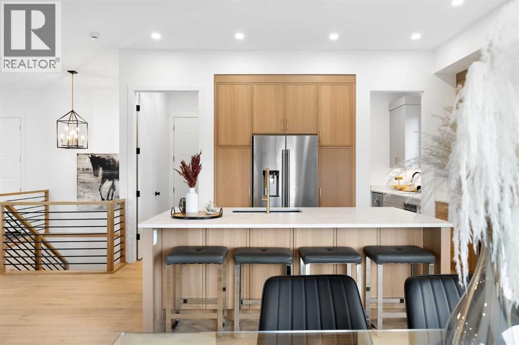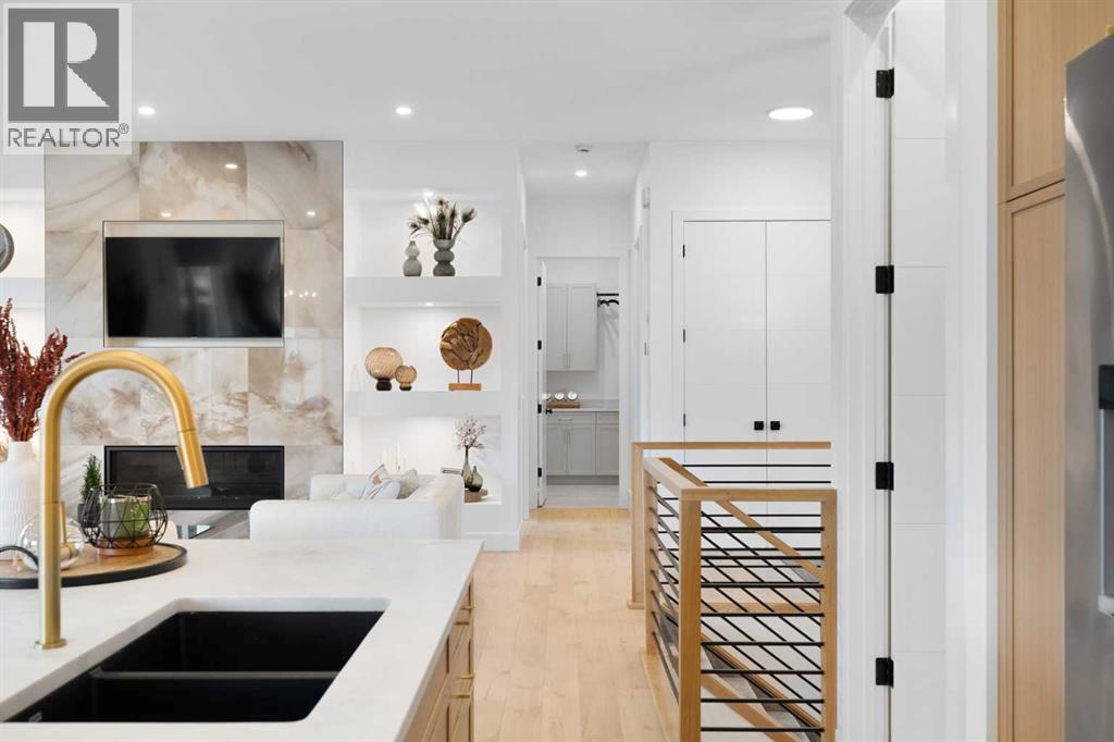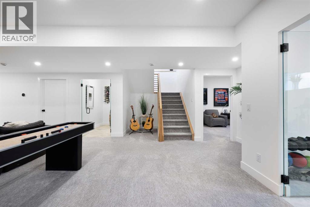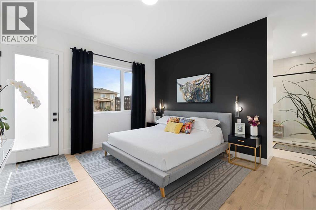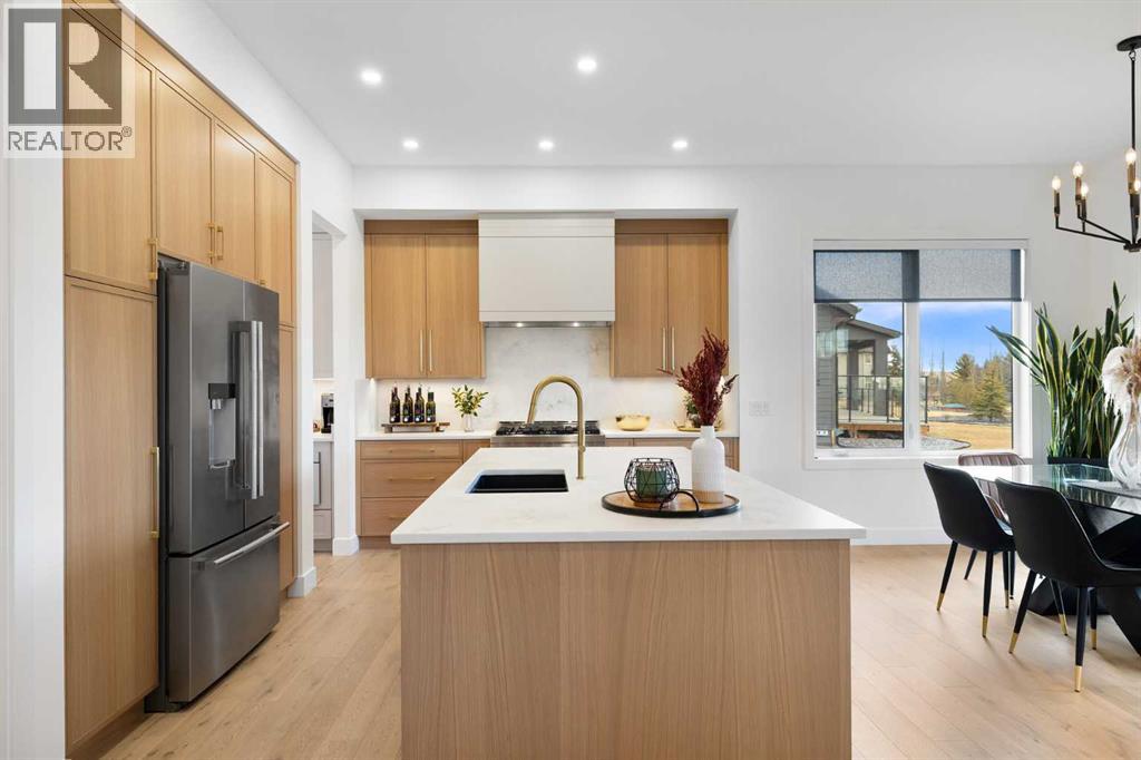 Step into refined simplicity with this exquisite newly built Scandinavian-style bungalow showcasing modern design and natural beauty. “The Olso” was created and built by Ironstone Custom Homes. Thoughtfully crafted with clean lines, organic textures, and an emphasis on light and space, this home redefines contemporary comfort with an array of high-end upgrades and sophisticated features. From the exterior, the home's minimalist architecture captures attention with its blend of SAGIWALL custom white oak exterior cladding that is a completely maintenance free product! As well James Hardie concrete infused matte black accent panels, and oversized windows that bring the outdoors in. The single-level layout offers the ultimate in ease and accessibility, while maintaining an elegant and airy presence. Inside, you're welcomed into an open-concept living space radiating warmth and functionality. Vaulted ceilings and expansive windows create a sense of volume and tranquility, enhanced by engineered wide-plank hardwood flooring, soft white walls, and the calming palette typical of Nordic design. At the heart of the home lies a gourmet kitchen, featuring sleek quartz countertops, custom cabinetry, designer fixtures, and a full suite of premium stainless steel appliances—perfect for both entertaining and everyday living. A butlers pantry awaits you with a storage on one side and additional cabinets on the other side. The spacious office over looks the landscaped front yard. A seamless transition between the gourmet kitchen, dining area and living room create perfect synergy. The bungalow offers spacious bedrooms, each designed with simplicity and comfort in mind. The primary suite is a private retreat with direct access to the outdoor deck with separate space for cooking , a retreat with a wood burning fireplace and hot tub area. This luxurious ensuite bath, featuring a double vanity, walk-in glass shower, separate tub and spa-like finishes. A massive closet with builtins galor e. Every corner of the home is elevated with smart home features, upgraded lighting, and energy-efficient systems. Seamlessly extending the living space outdoors is a true highlight: an exceptional outdoor experience anchored by a grand wood-burning fireplace. This custom-built stone feature sets the tone for year-round gatherings under the covered patio. Whether you're enjoying crisp evenings beside the fire or hosting al fresco dinner parties, the space offers an intimate connection to nature, blending modern luxury with rustic charm. The basement is fully finished offering 3 massive bedrooms, builtins, a full bathroom, exercise room, wine room a family room and recreation space. Don’t miss the hidden door or the triple car garage completely done out!! Covered by New Home Warranty with upgrades galore, timeless Scandinavian design, and an unbeatable indoor-outdoor flow, this is a rare opportunity to own a home that’s both effortlessly stylish and functionally flawless. (id:51913)