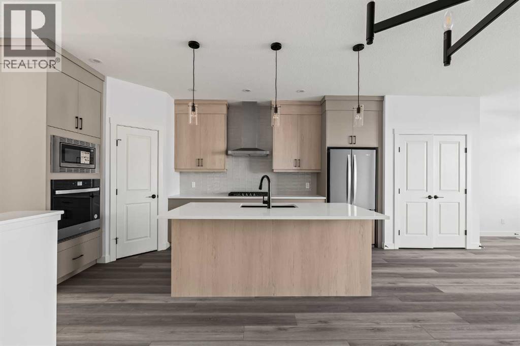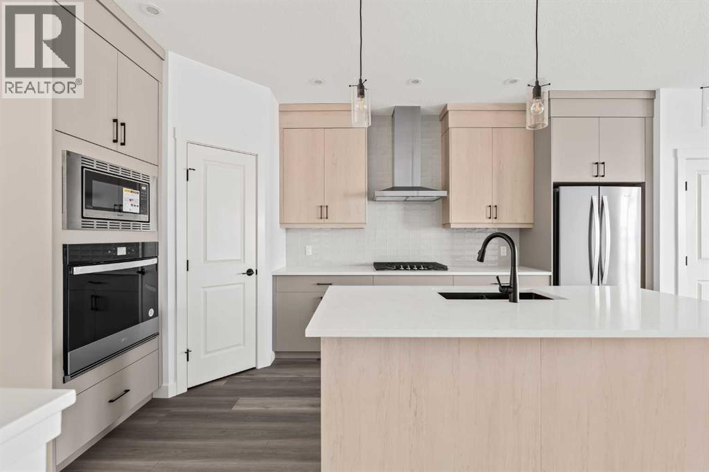 The Carlisle 2 is a thoughtfully designed home offering nearly 1,900 sq. ft. of beautifully planned living space, complete with 3 bedrooms, 2.5 bathrooms, a main floor office/flex room, an upper-level bonus room, and a full basement. Perfect for families or professionals, this home combines functionality with modern style. The open-concept main level is bright and inviting, with 9-foot ceilings, luxury vinyl plank flooring, and oversized front and rear windows that fill the home with natural light all day long. A versatile den/flex room on the main level makes the perfect home office, study, or playroom. At the heart of the home, the gourmet kitchen features full-height cabinetry, quartz countertops, a spacious corner pantry, and a large central island with a flush eating bar. A premium stainless steel appliance package is included, complete with a built-in oven and microwave, chimney hood fan, and cooktop. The kitchen overlooks both the dining area and the great room, making it the ideal space for entertaining or everyday family living. A rear entrance leads to the private backyard, complete with a BBQ gas line for everyday convenience and the main level is complete with a 2pc powder room. Upstairs, a central bonus room separates the spacious primary suite from the secondary bedrooms, providing privacy and flexibility. The sun-filled primary retreat includes a walk-in closet and a 4-piece ensuite with dual sinks and a walk-in shower. Two additional bedrooms, a full bathroom, and a convenient upper laundry room complete this level. The basement offers endless opportunities for future development, with 9’ foundation walls, rough-ins for a 4-piece bathroom and sink, oversized windows, and private backyard access via the side entrance. Located in the vibrant community of Seton, this brand-new home will be move-in ready this fall and is just steps from countless amenities and the South Calgary Health Campus. Builder warranty and Alberta New Home Warranty allow you to pu rchase with peace of mind - start enjoying your brand new home this fall! Note: Home is under construction. Photos are of a showhome model and not an exact representation of the property for sale. (id:51913)