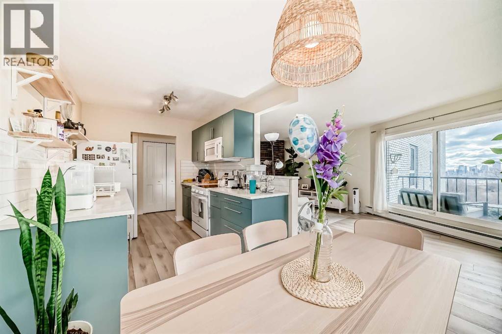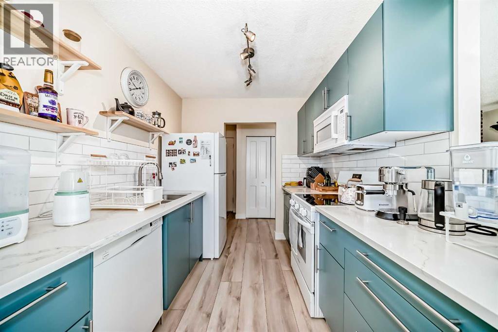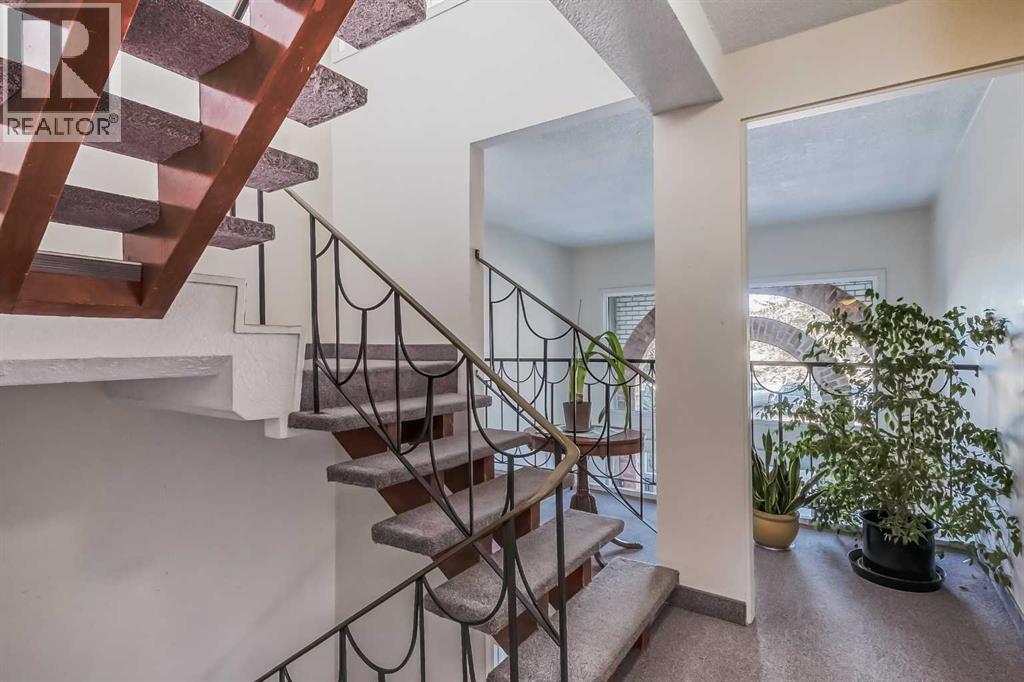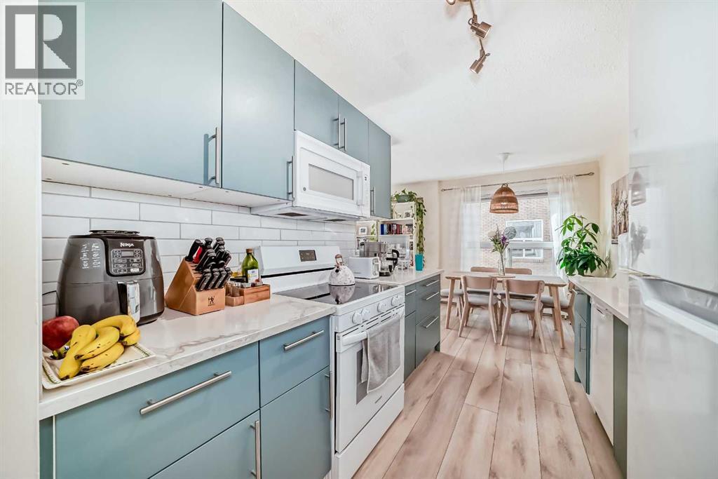 Don't miss out on your chance to own a PROFESSIONALLY RENOVATED ($50,000), CONCRETE 3 Bedroom (walk-up) corner unit for under $400,000 in Spruce Cliff -- WITH FABULOUS VIEWS OF: THE DOWNTOWN CORE, DOUGLAS FIR WALKING TRAIL, SHAGANAPPI GOLF COURSE and Chateau Belle Vue's own PRIVATE COURTYARD! ALL NEW KITCHEN (cabinets, quartz countertops, appliances & tile backsplash), LUXURY VINYL PLANK THROUGHOUT and both BATHROOMS redone (all hardware). Safer 2nd floor location, SUNNY EAST BY SOUTHEAST EXPOSURE. This cozy 3 Bedroom, 1.5 bath unit has just under 1050 ft2 -- open FR/DR combination with a rare WOOD BURNING BRICK FIREPLACE. Building amenities include: assigned surface stall (#24) steps from the front door, a secure storage locker (#202), shared WORKSHOP space, shared 3rd floor deck overlooking park, shared laundry room & washbasin in the basement (2 washers/2 dryers). Walking distance to LRT, Shaganappi Golf Course (x-country skiing track), shopping and Douglas Fir Trails for walking. (id:51913)