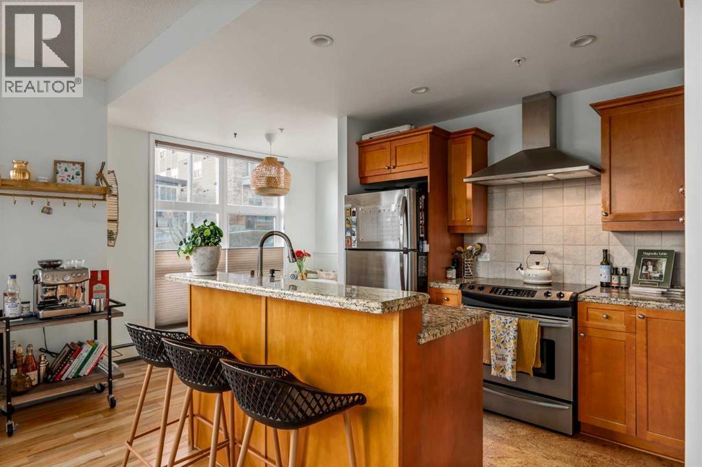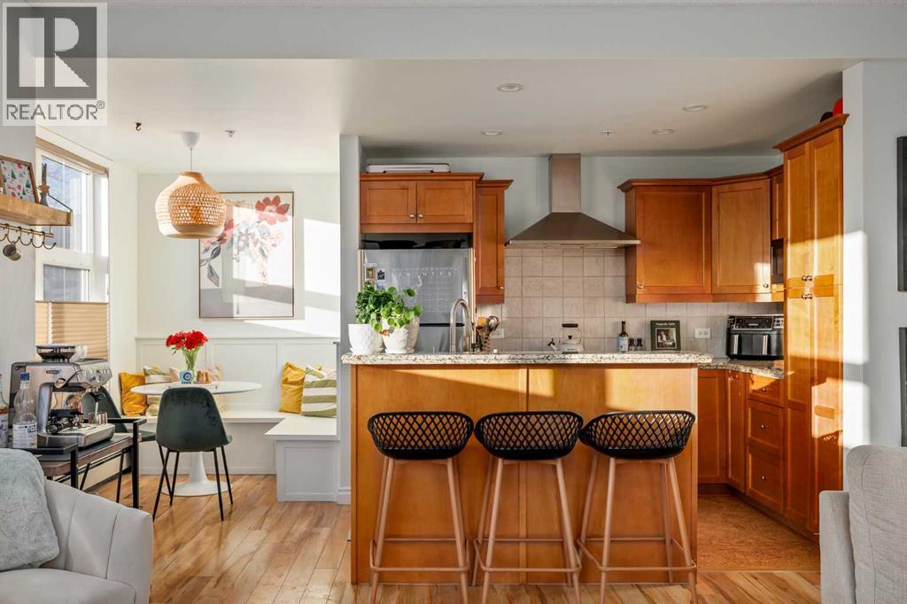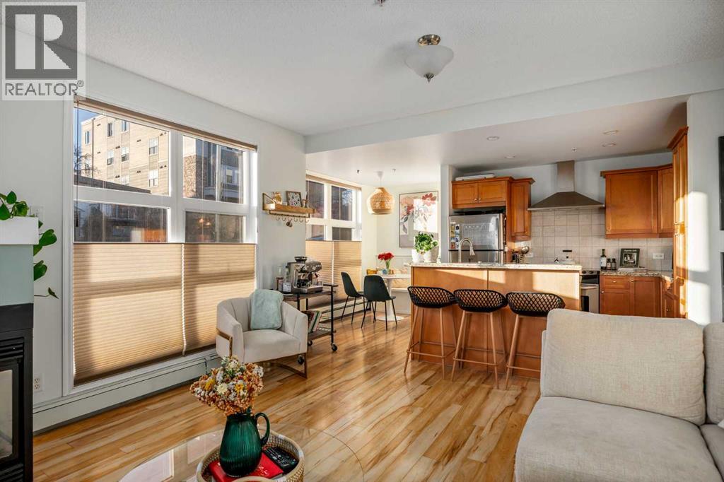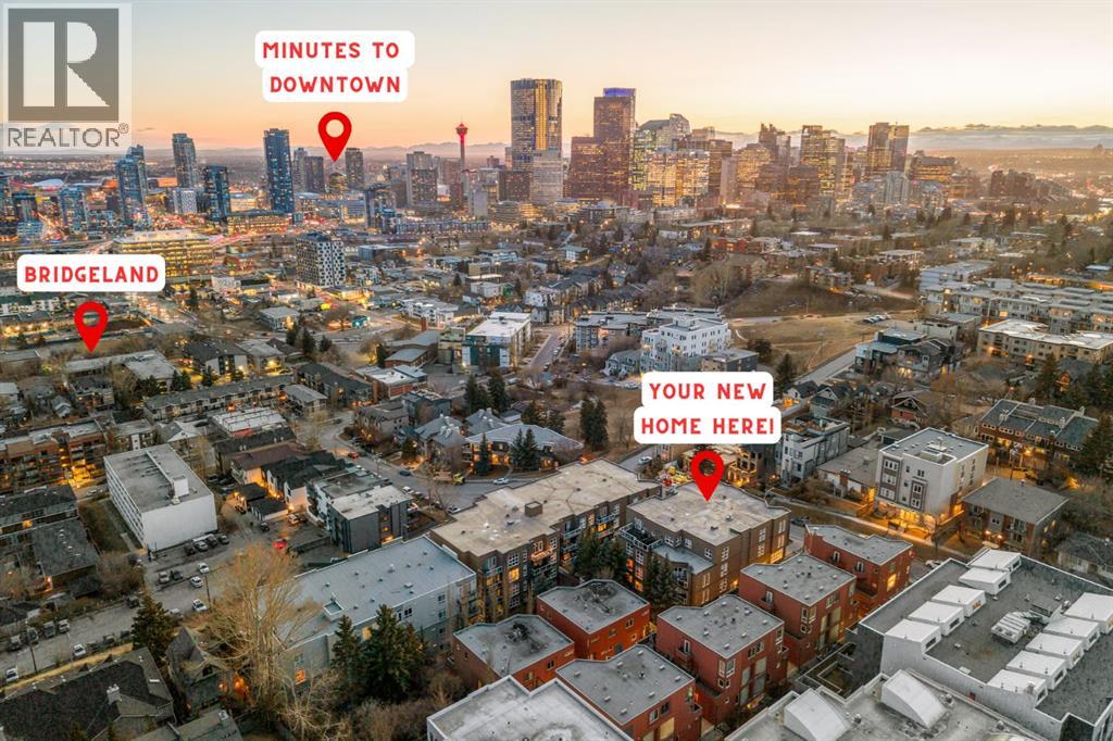 2 BED 2 BATH | CORNER UNIT | STUNNING DOWNTOWN VIEWS | PET LOVERS DREAM | Welcome to the Portico, located in the desirable neighbourhood of Renfrew and right on the border of Bridgeland - two of Calgary’s most vibrant inner-city communities and just minutes from Calgary's downtown core. This gorgeous 2 bedroom, 2 bathroom corner unit offers nearly 900 sq ft of thoughtfully designed space, wrapped in floor-to-ceiling windows that flood this open-concept home with beautiful natural light. With S/SW exposure, you’ll enjoy the sunshine as well as stunning views of downtown and the iconic Calgary Tower - the sunsets are especially breathtaking! Inside, the kitchen features plenty of cabinetry, granite countertops, stainless steel appliances, and a raised bar for casual dining. The dining space has the sweetest custom-built breakfast nook from which you also get to enjoy the city views. The bright and airy living area features a cozy gas fireplace, perfect for Calgary winters. The spacious entryway makes a welcoming first impression, and the dedicated laundry room offers additional storage space to keep everything organized. One titled underground parking stall & a large secure storage locker is included. Step out onto your private balcony overlooking downtown, complete with a gas BBQ line - perfect for summer evenings with friends or quiet mornings soaking in the city views. Pet lovers or those with mobility issues will especially appreciate this unique building design. Entry is from the second level, meaning no elevator or stairs are required for you or your pup, while the unit itself is elevated above ground level for added privacy and security. The Portico is a pet-friendly building with fantastic off-leash parks nearby. Living here means getting to enjoy the cafés, restaurants, shops and river pathway systems that make Renfrew and Bridgeland so sought-after. Calgary favourites like Luke’s Drug Mart, Bridgeland Market, Bar Gigi, and Mari Bakeshop are all minutes away, with easy access to downtown. Step into the heart of Bridgeland and Renfrew living - comfort, convenience and community all in one place. This condo is the perfect opportunity to plant roots in one of Calgary’s best inner-city neighbourhoods. (id:51913)