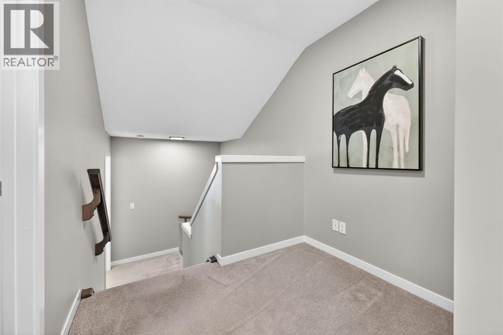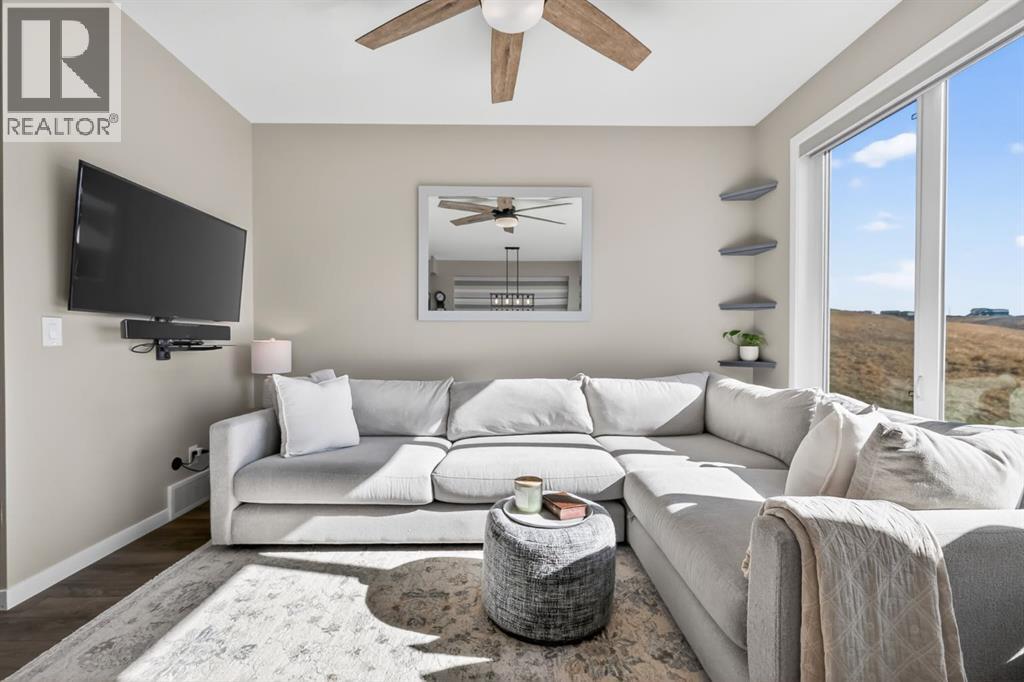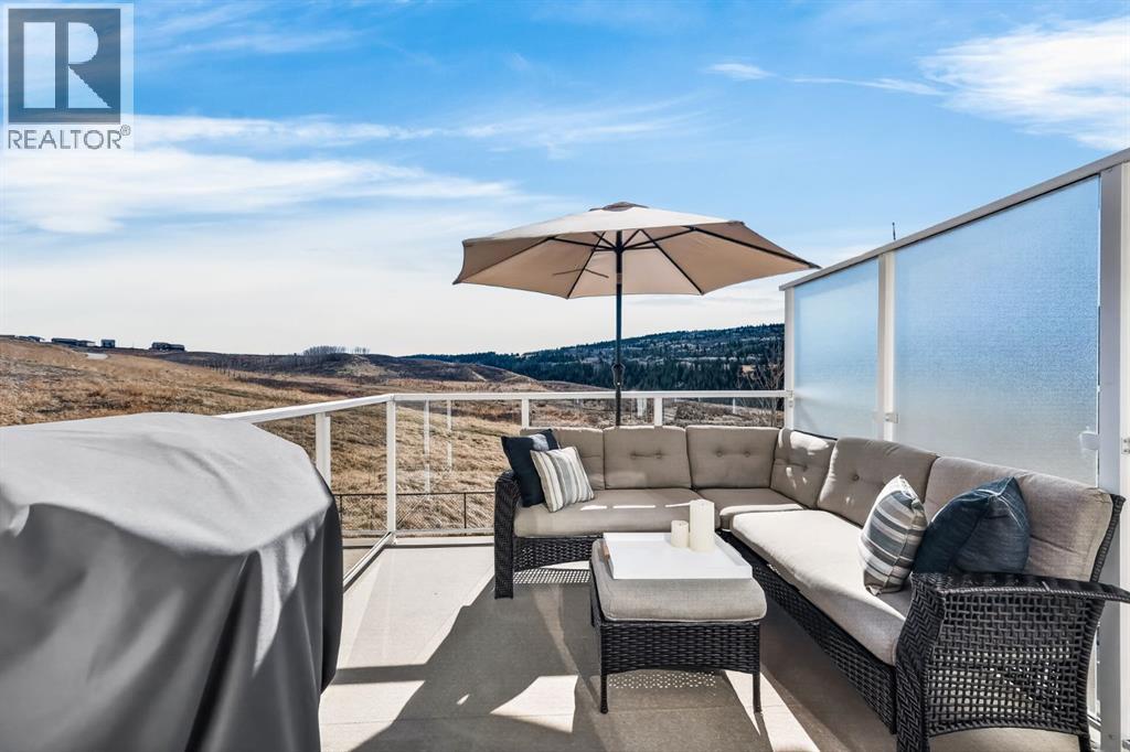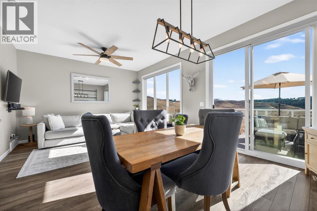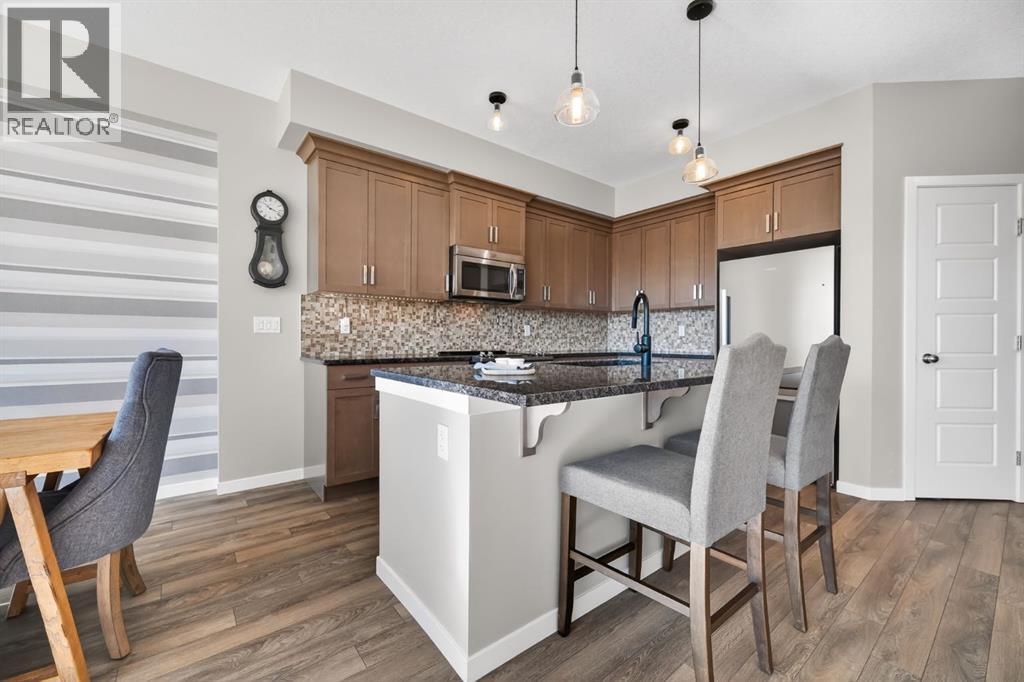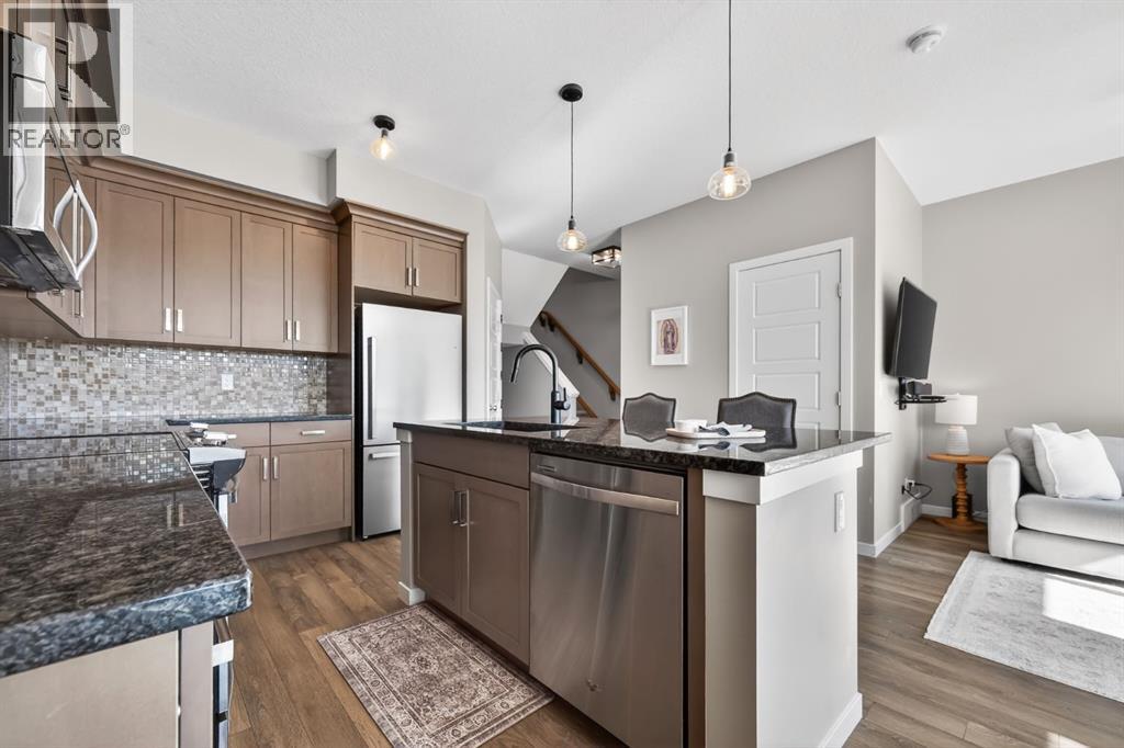 Welcome to 205 Sunset Point in beautiful Cochrane, Alberta. This is hands-down one of the best locations in the complex—tucked at the end of a quiet cul-de-sac with no through traffic, backing directly onto a stunning ravine with forest, rolling hills, and wildlife, plus private gated access to walking trails right out your door.Built by Calbridge and meticulously maintained, this 3 bed, 3.5 bath townhouse is move-in ready with the added confidence of an extended structural warranty until Feb 2027.Inside, you’ll find a bright, open feel with 9’ ceilings, large windows, neutral tones, and a spacious layout. The kitchen is a standout—featuring granite countertops, full-height cabinets with crown moulding, mosaic backsplash, Silgranite sink, pantry, island with breakfast bar, and newer stainless steel appliances (including a new fridge). The dining nook opens to your upper deck with Duradeck, glass railing, and privacy wall—perfect for taking in those unobstructed views.Upstairs offers three generous bedrooms, with 2 overlooking the ravine, plus a full bath and convenient laundry (with newer dryer). The primary suite sits on its own level for added privacy, complete with partial mountain views, a large walk-in closet with window, and a 4-piece ensuite with granite and tile finishes.The newly developed walkout basement (2025) adds incredible value—featuring a spacious rec room, 4-piece bath with heated floors, and direct access to a relaxing lower patio, all with continued views of the natural surroundings. You’ll also appreciate the new high-efficiency furnace and hot water tank.Additional highlights:Low condo fees, Single attached garage, Built-in vac rough-in, Extremely clean, pride of ownership throughout.This home offers a rare mix of privacy, views, upgrades, and location—all in a well-managed complex.Opportunities like this are few and far between. Don’t miss your chance to own one of the best units here. (id:51913)