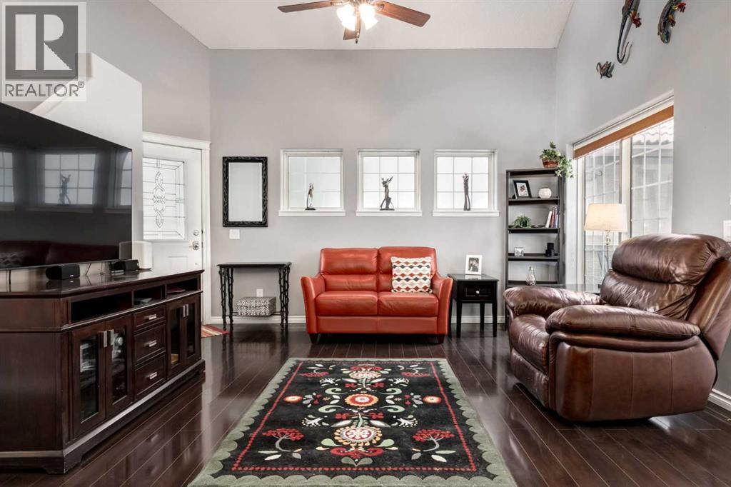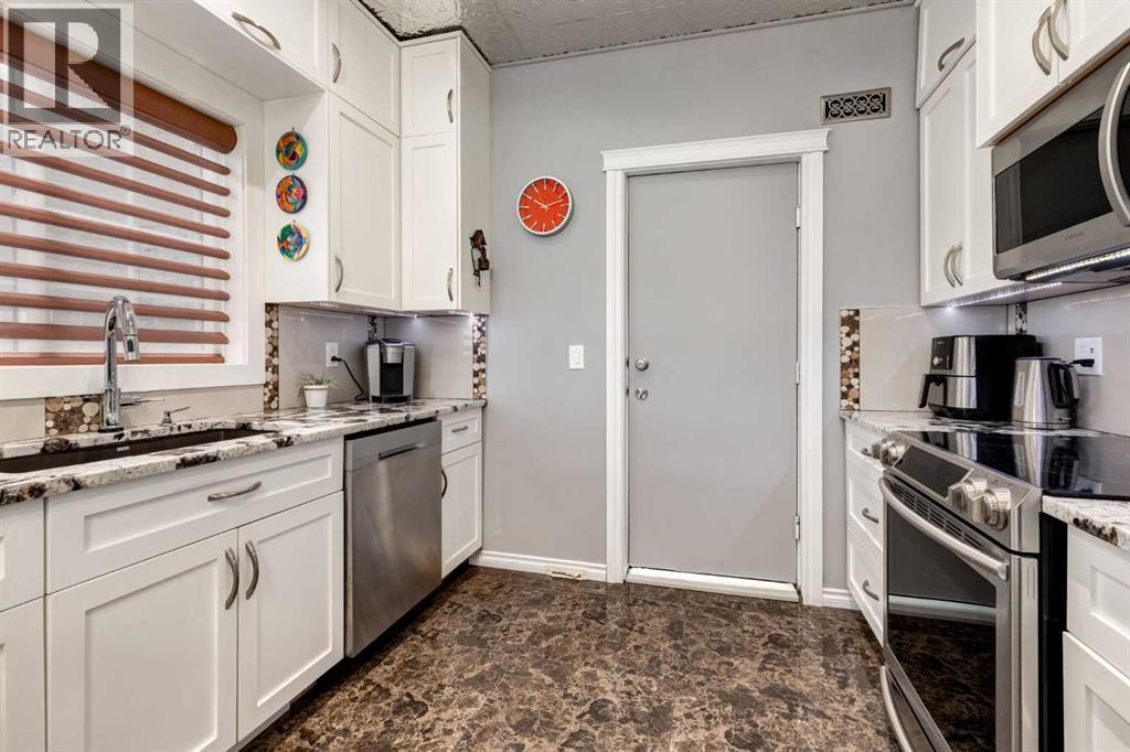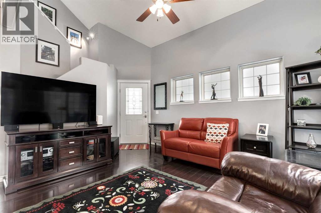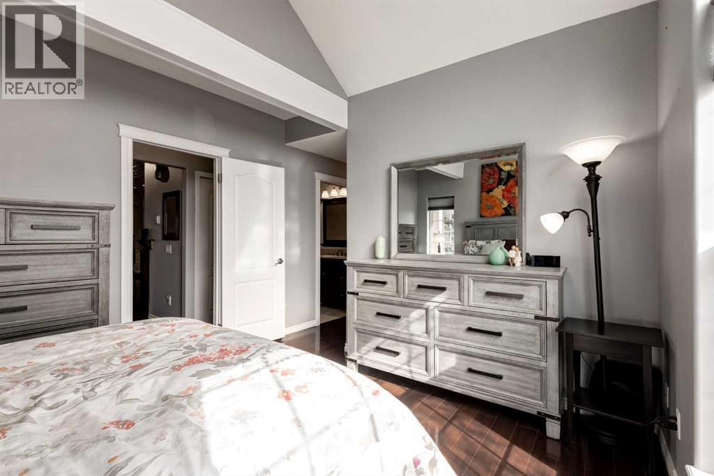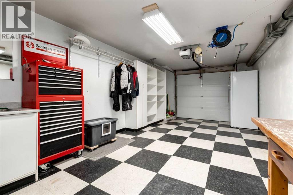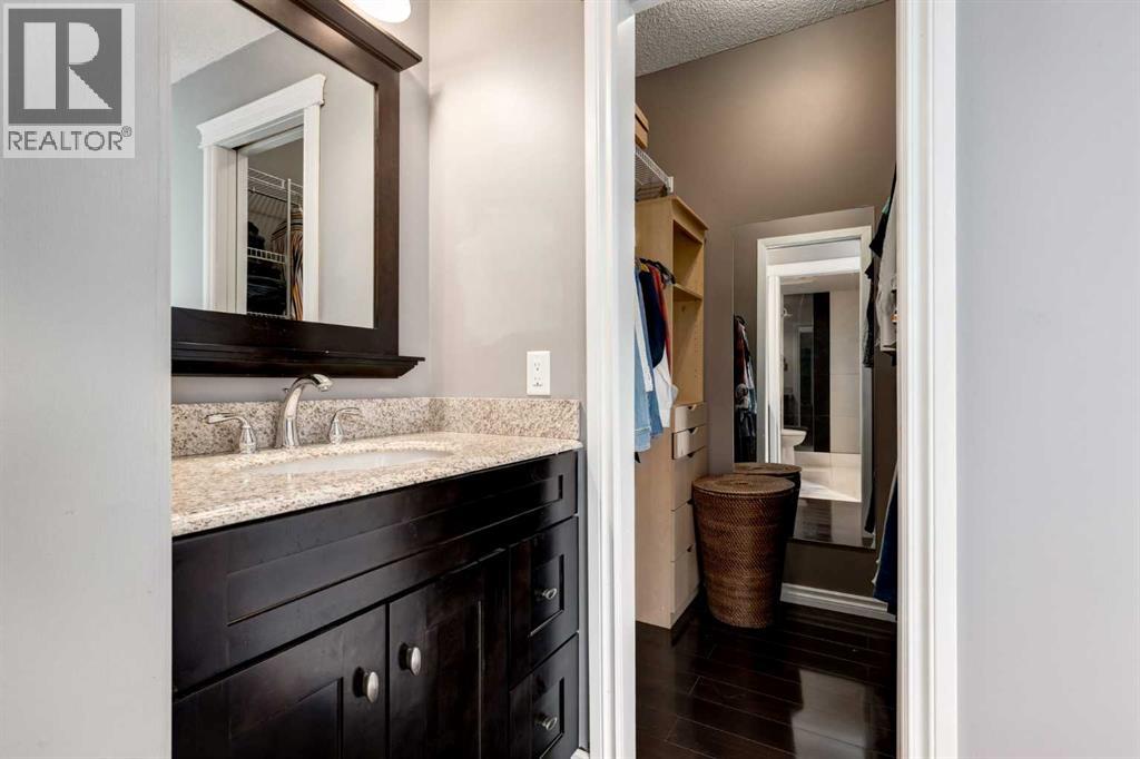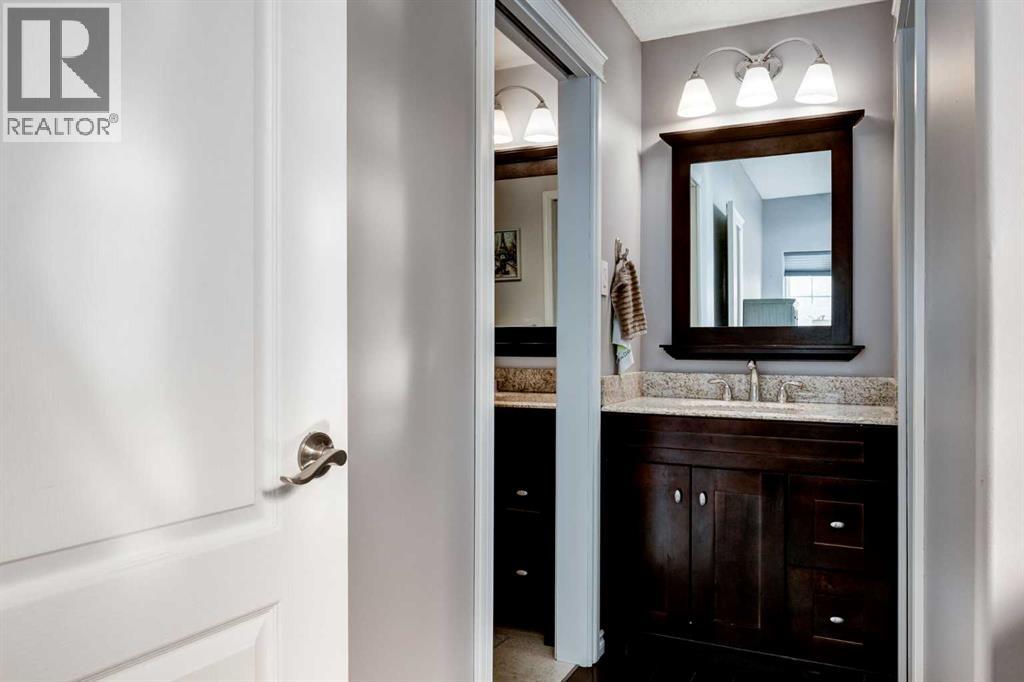 Immaculate fully renovated townhouse with main floor primary bedroom and ensuite. Radiant in floor heat throughout. Living room features dramatic vaulted ceilings, a real wood burning fireplace and access to one of two patios. Kitchen features floor to ceiling cabinets with granite counters 24” porcelain tile, Blanco sink and a breakfast bar. The star of the show is the real pressed tin ceiling that flows through the kitchen and dining area. Vaulted ceilings carry into the Primary bedroom with large windows. Primary ensuite features a walk in shower with Grohe taps and bench, dual vanities and a walk in closet. Upstairs features another bedroom, a full bathroom and a den that could easily be converted into a third bedroom. Heated oversized single garage with additional driveway parking. Pet Friendly complex features a clubhouse with BBQ patio. Walking distance to Sirocco C-train station, shopping and dining. (id:51913)