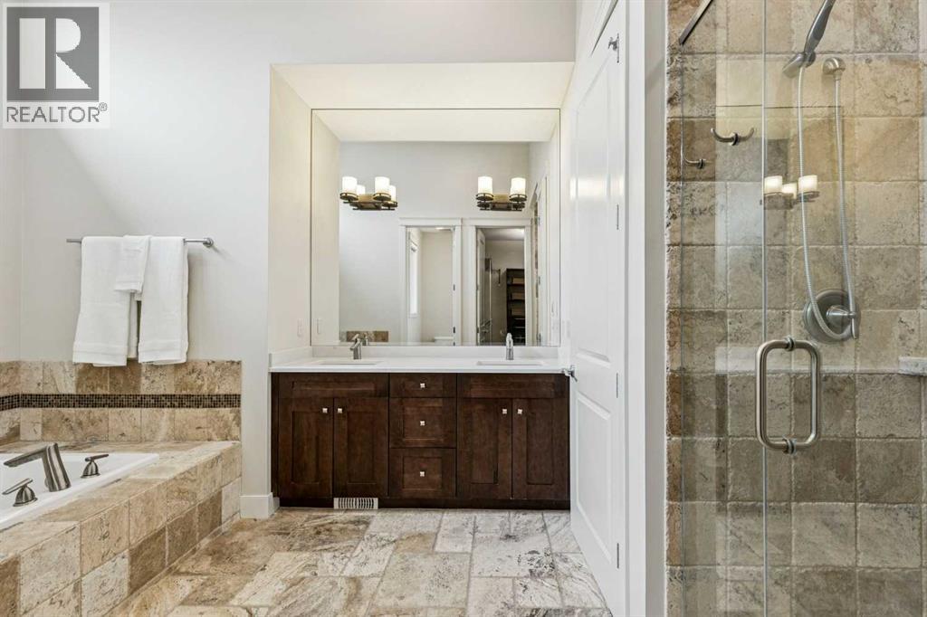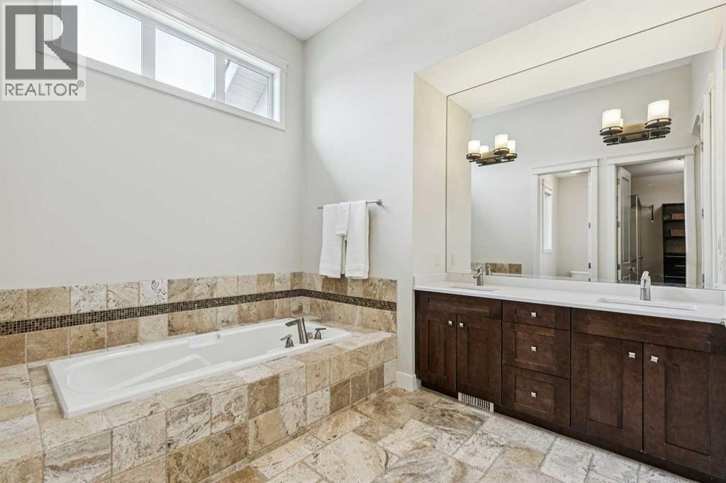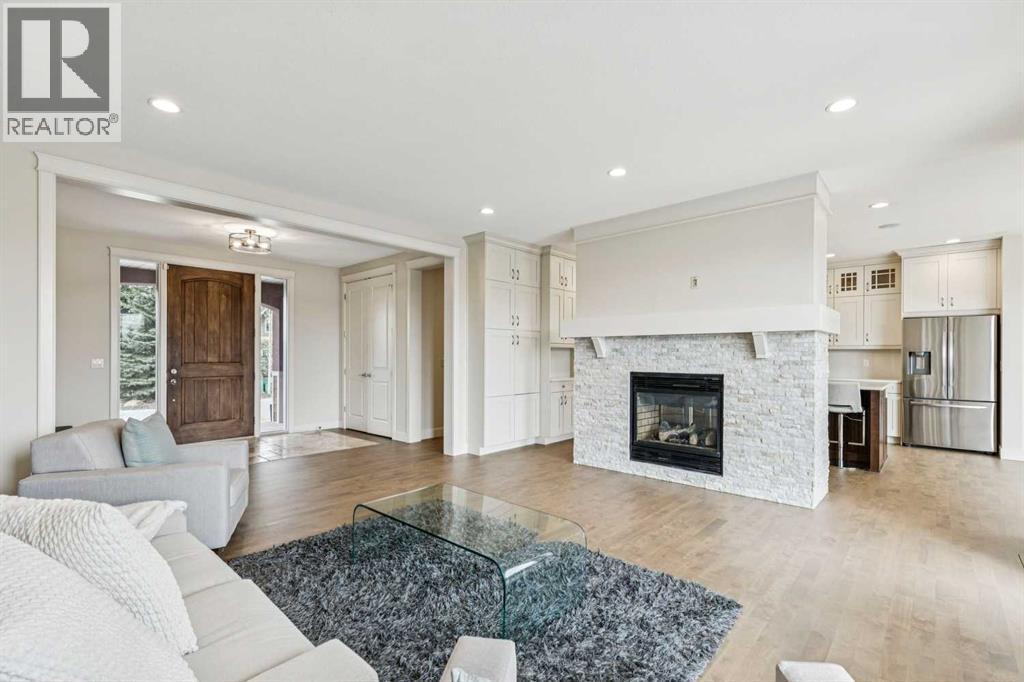 Welcome to 208 Leighton Court, an exceptional executive estate tucked quietly at the end of a private cul-de-sac in the prestigious community of Elbow Valley West, where over 4,000 square feet of beautifully refreshed living space sits on a massive 0.81-acre walkout lot offering the rare combination of space, privacy, and polished estate living that discerning buyers have been searching for. From the moment you step inside, elegant travertine tile and freshly refinished hardwood floors set an immediate tone of quality, flowing through bright, sun-filled living spaces anchored by a stunning stone veneered two-sided fireplace, the perfect focal point for both everyday comfort and memorable entertaining. The gourmet kitchen has been thoughtfully elevated with brand-new quartz countertops, a sleek new backsplash, custom cabinetry, premium stainless steel appliances, and an expansive island that invites connection, while the adjacent dining area opens to an oversized upper deck overlooking the manicured grounds and surrounding natural landscape. The main floor primary retreat offers a true sanctuary with a spacious walk-in closet and spa-inspired ensuite featuring a deep soaker tub, separate shower, and dual vanities finished with fresh quartz counters, while a generous mudroom and laundry room connect directly to the triple attached garage. Upstairs, two oversized bedrooms each enjoy their own private ensuite bathrooms and walk-in closets, offering the kind of space, comfort, and privacy that growing families and guests will truly appreciate, alongside a versatile bonus room ideal for media, play, or a home office. The fully developed walkout basement extends the living experience with a large recreation room anchored by a second fireplace and custom built-ins, a stylish wet bar, a fourth bedroom, and a full bathroom, all opening directly to a landscaped lower patio, charming fire pit area, and full irrigation system. Beyond the home itself lies the true magic of Elbow Valley West, one of Calgary's most coveted and established estate communities, known for its serene and peaceful setting, abundant green space, and access to nearby playgrounds and walking pathways that wind through 44+ hectares of beautifully maintained grounds. This is the lifestyle buyers dream of, space to breathe, room to entertain, and the chance to step away from the pace of the city without ever losing its convenience. Aspen Landing, West Springs, and the Westside Recreation Centre are minutes away, Calgary's top-rated public and private schools, including sought-after Springbank School, are right at your doorstep, and when the mountains call, Bragg Creek, Kananaskis, and Banff are just a short drive west via Highway 8. Homes of this size, on lots of this scale, in a community of this caliber are increasingly rare, and 208 Leighton Court offers the ideal blend of refined estate living and effortless access to everything Calgary's west side, and the Rockies beyond, have to offer. (id:51913)