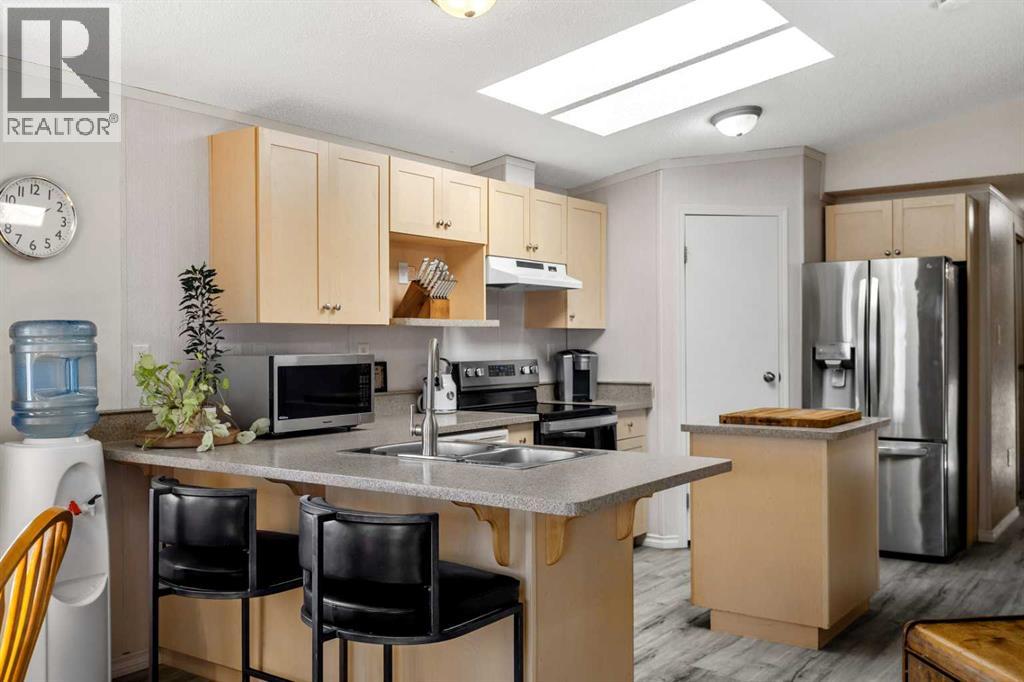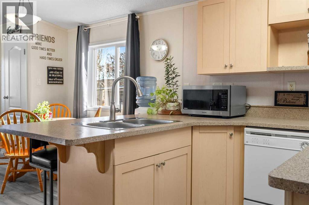 *** OPEN HOUSE SUNDAY JANUARY 25, 12:00-3:00 *** Why purchase an apartment or a townhome when you can own a detached home for less without any condo fees and still own the land. This well-maintained 2005 manufactured home sits on a spacious pie-shaped lot and includes anchored tie-downs—ideal for mortgage approval and insurance requirements. The property features an oversize 22x20 double detached garage with a new heater (2022), 220V power, and a sub-panel. Including the extra long driveway, this property can accommodate a total parking of at least 7 vehicles. Enjoy a fully fenced, private backyard—perfect for pets—along with a sunny front porch and a relaxing back deck, all located on a quiet cul-de-sac. The best part? You own the land outright with no added fees. Inside, this bright, sun-filled home offers approximately 1,000 sq. ft. of comfortable living space, showcasing pride of ownership throughout. Major updates include a new house roof (2021), garage roof (2023), hot water tank (2014), high-efficiency furnace (2005), a Costco storage shed (2023), and new asphalt (2023). Flooring, carpet, and interior paint have also been refreshed. The thoughtfully designed layout features 3 bedrooms and 2 full 4-pc bathrooms. The primary suite includes a generous walk-in closet and a private ensuite. The open-concept kitchen and living area is enhanced by vaulted ceilings, two skylights, a large pantry, centre island, breakfast bar, --perfect for everyday living and entertaining. Located within walking distance of Superstore, Tim Hortons, parks, schools, Bert Church Theatre, Big Springs Athletic Club, Genesis Place, and close to the city’s pathway system. Quick access to major routes makes commuting easy. This bright, clean, move-in-ready, low-maintenance property offers exceptional value—whether you're a first-time buyer, downsizing, or seeking a smart investment opportunity. (id:51913)