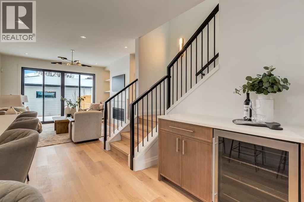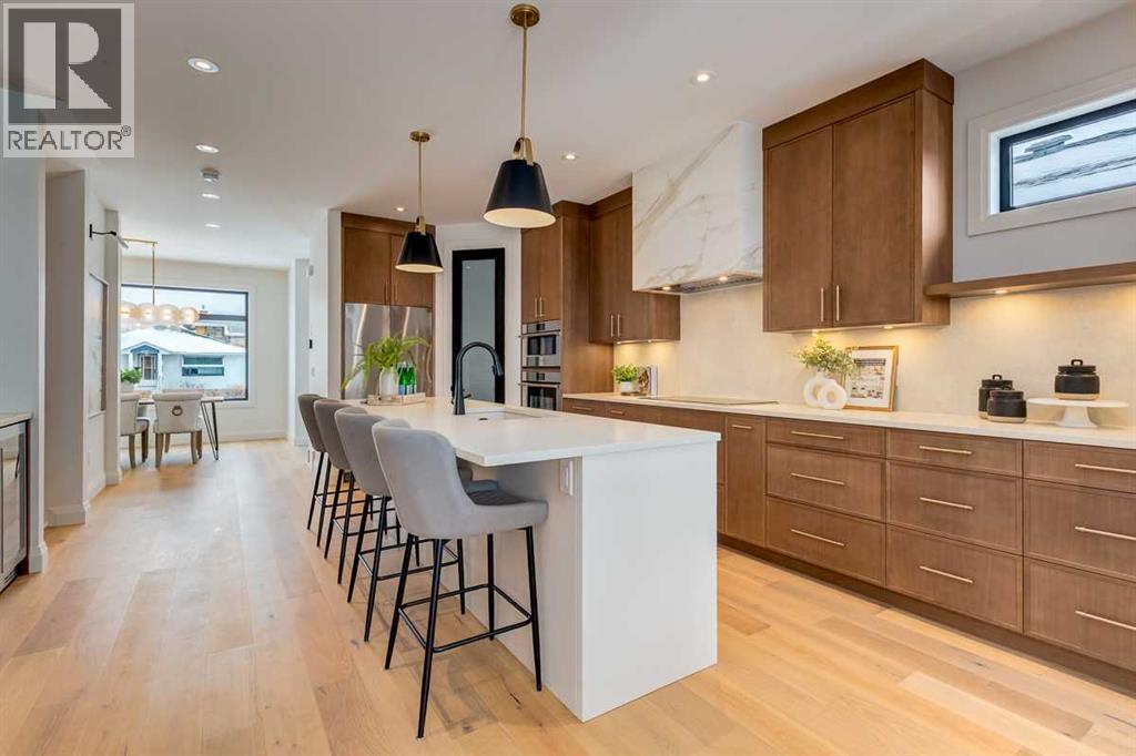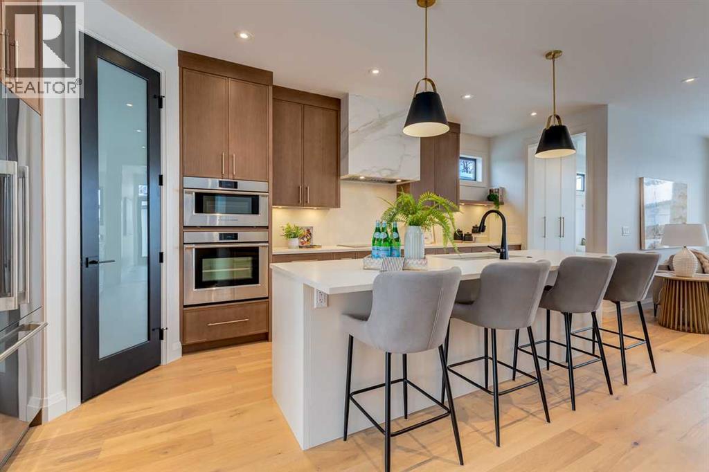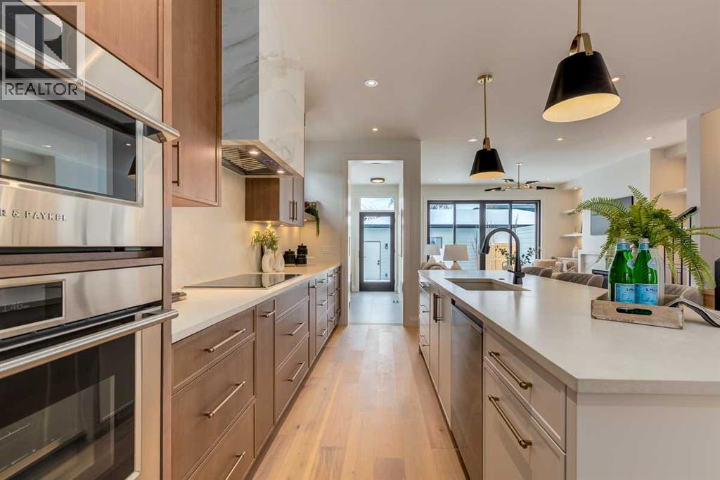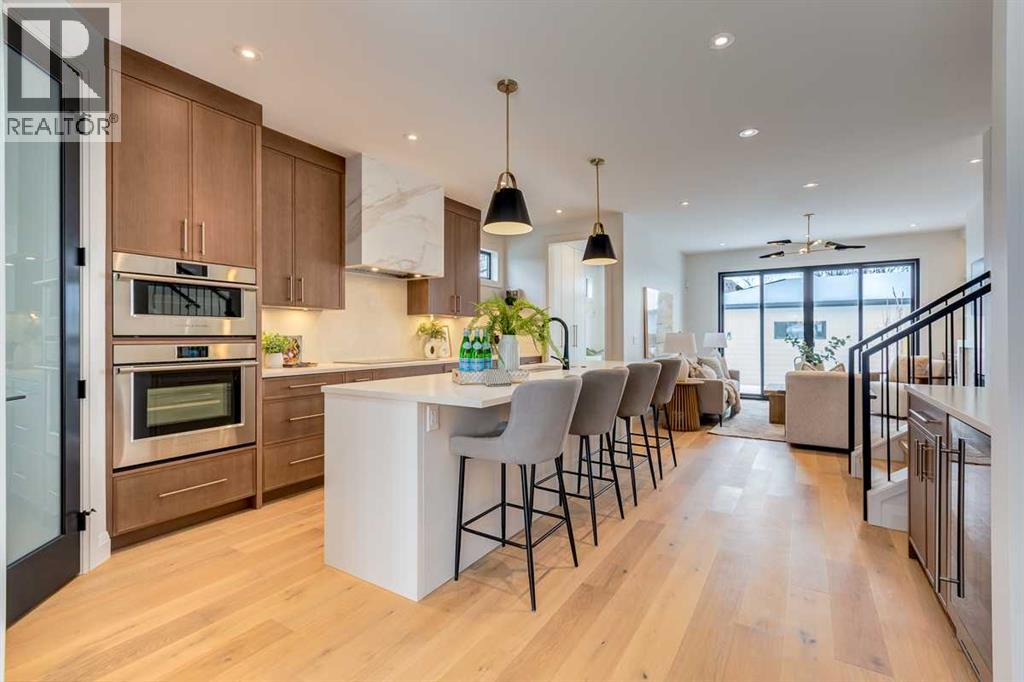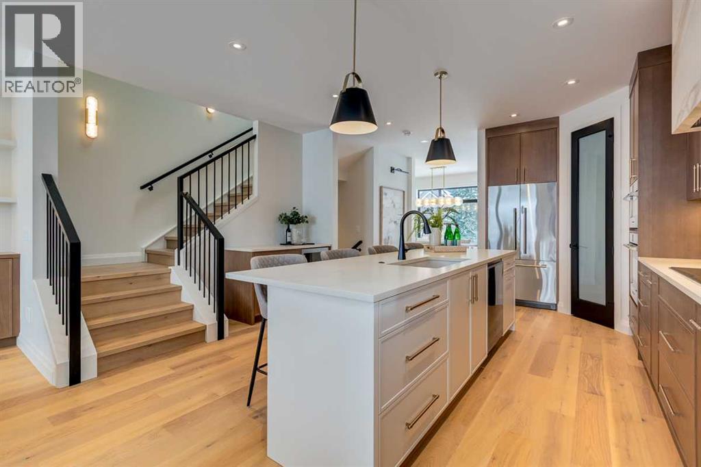 Welcome to this brand-new, exquisitely designed custom home with a West backyard built by Treehouse Developments — an award-winning builder celebrated for quality craftsmanship and thoughtful design. Located in the heart of Killarney, this property stands apart from the typical infill with its elevated finishes, concrete party wall, full New Home Warranty and a level of luxury rarely found, offering both peace of mind and timeless appeal. It’s packed with upgrades throughout and offers a truly refined living experience. Step inside to a welcoming foyer and dining room that flow seamlessly into an open-concept kitchen and living area, ideal for both everyday living and entertaining. The kitchen is equipped with high-end Fisher & Paykel appliances, stone countertops throughout, a large island, walk-in pantry, and stunning white oak rift-cut cabinetry. Extensive custom built-ins are thoughtfully integrated into the foyer, mudroom, and living room, adding function and elegance throughout the main floor. The living room features a porcelain-clad fireplace complete with Frame TV and sliding patio doors leading to a spacious maintenance-free composite deck. A functional mudroom off the rear entry leads directly to the garage, making daily routines effortless. Upstairs, a dramatic skylight floods the stairwell and bonus area with natural light, creating the perfect space for a desk or reading nook. The primary bedroom is impressively spacious, creating a true retreat with a spa ensuite that includes a standalone tub, steam shower with handheld, and heated floors. The main bath offers double sinks and linen storage, while upstairs laundry provides added convenience. Custom built-in closets are found throughout. The fully developed basement includes a large rec room with dry bar and bar fridge, a bedroom suite with walk-in closet and ensuite, and hydronic in-floor heating paired with an on-demand boiler for year-round comfort. A central AC/heat pump system adds modern efficie ncy. Outside, enjoy the fully landscaped private sunny yard and an oversized 21' x 21' garage, insulated and drywalled to fit a truck. The exterior blends stone, cedar accents, and Hardie siding for striking curb appeal. This home is move-in ready and exemplifies the craftsmanship, quality, and design that make Treehouse Developments a standout builder in Calgary. It’s rare for a Treehouse-built home to hit the market, making this a special opportunity to own a truly exceptional property. (id:51913)