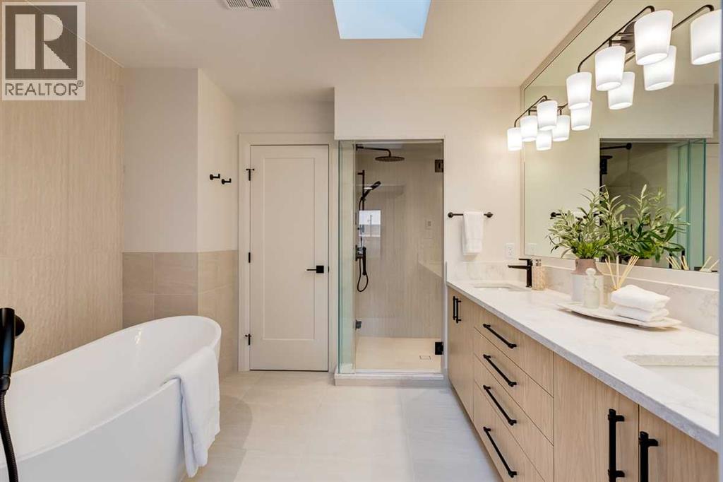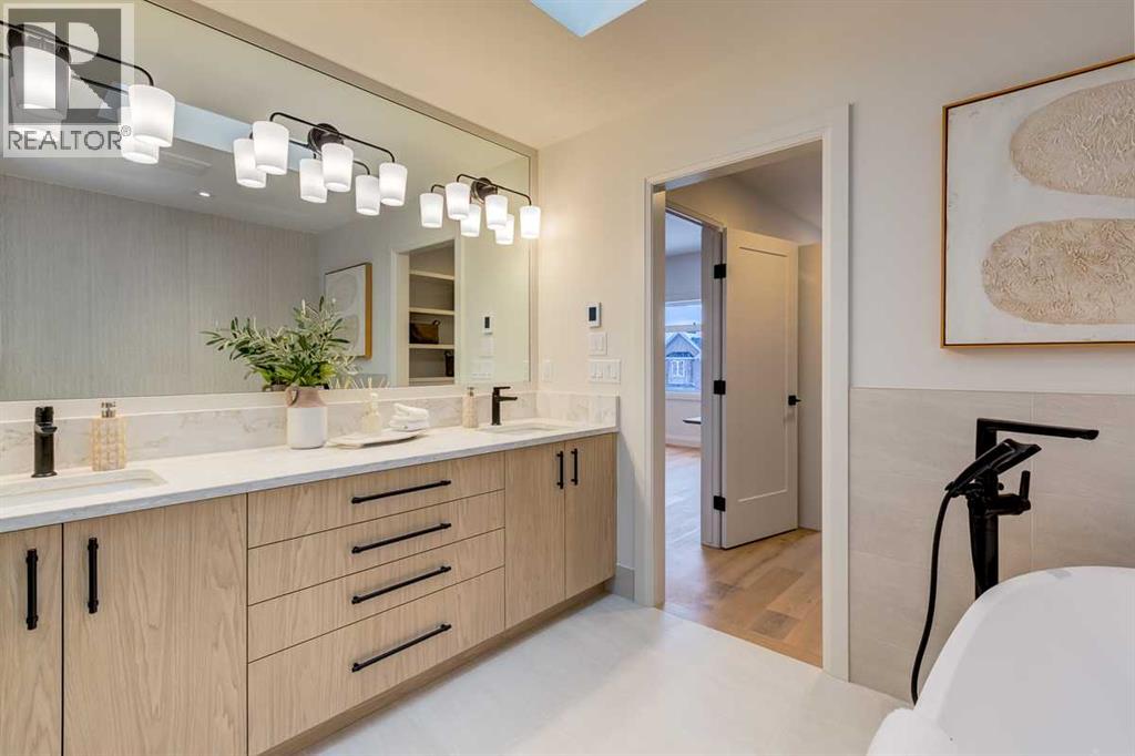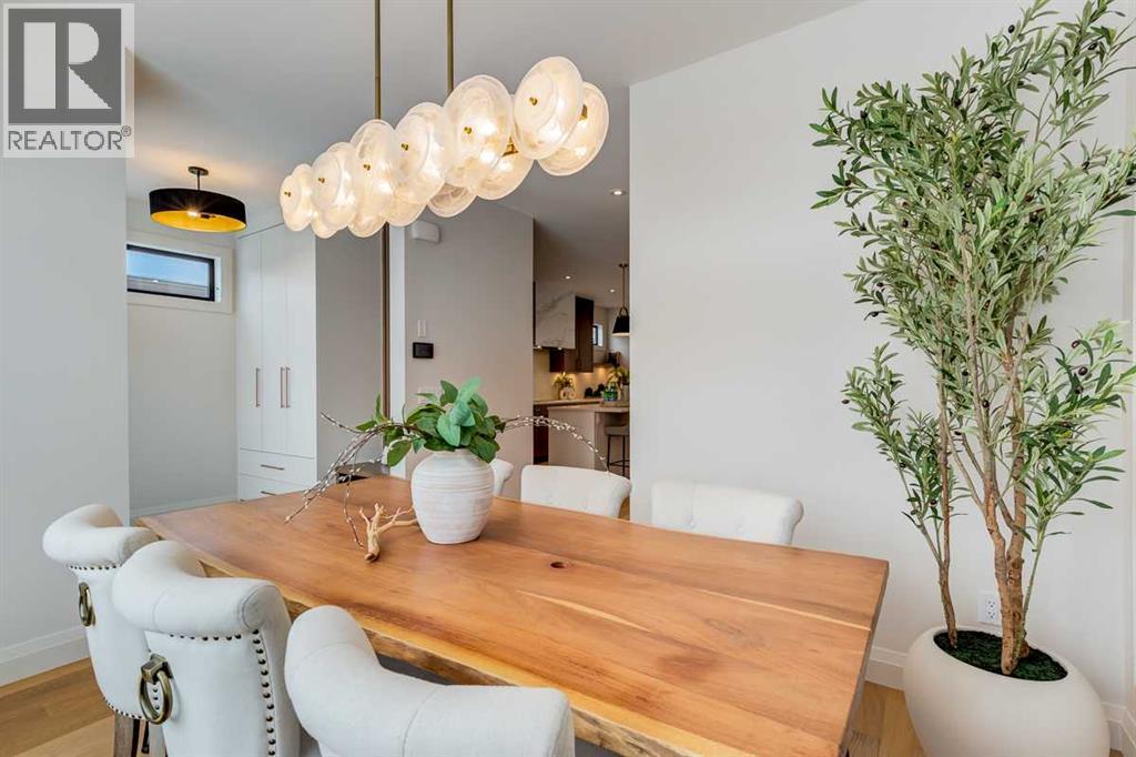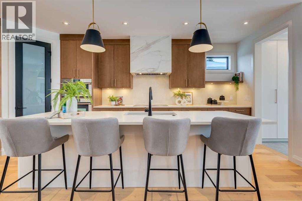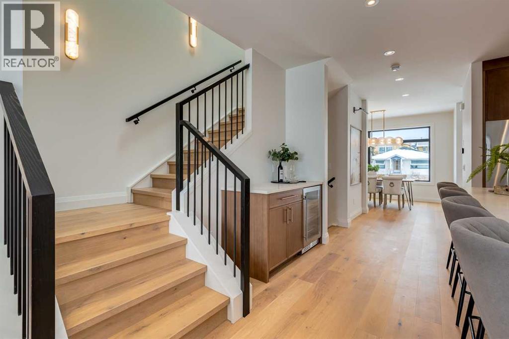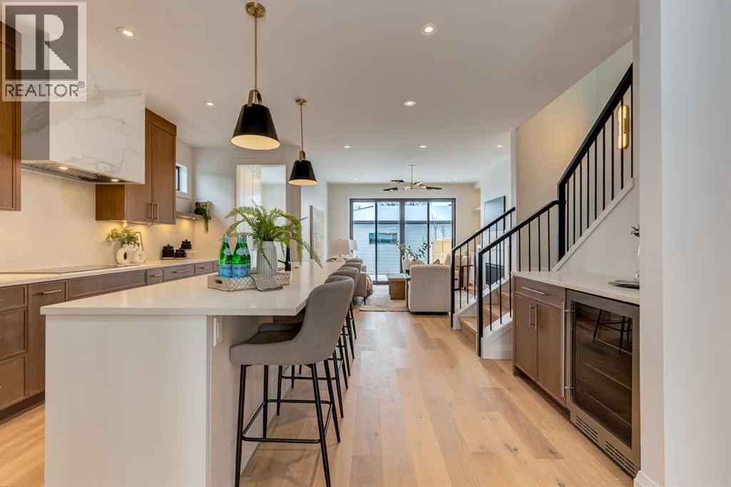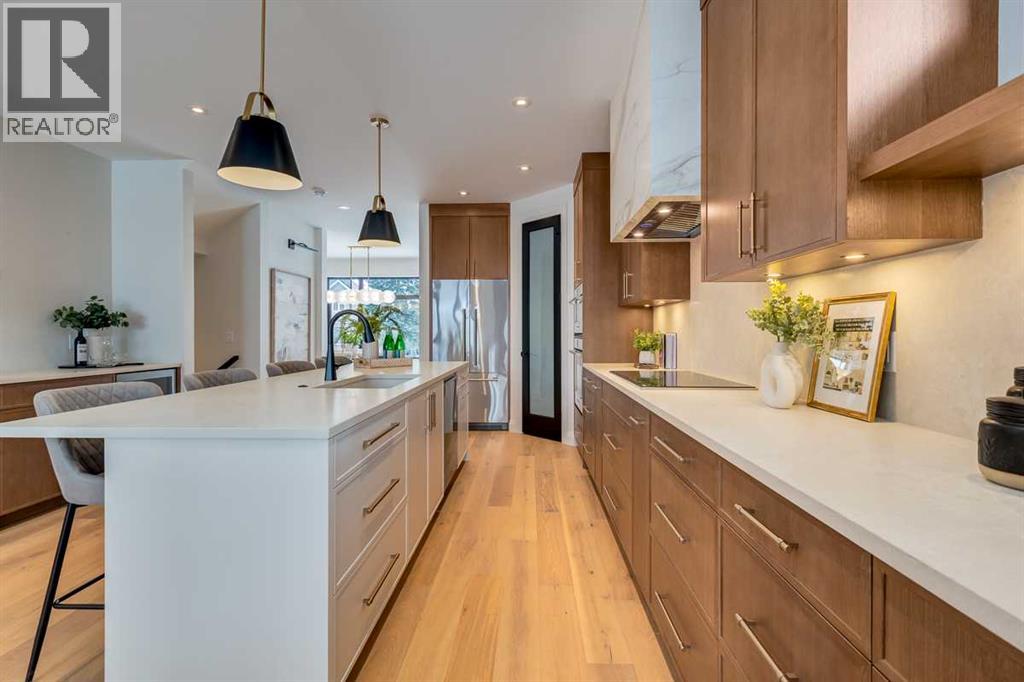 Welcome to this brand-new, exquisitely designed custom home with a West backyard built by Treehouse Developments — an award-winning builder celebrated for quality craftsmanship and thoughtful design. Located in the heart of Killarney, this property stands apart from the typical infill with its elevated finishes, concrete party wall, full New Home Warranty and a level of luxury rarely found, offering both peace of mind and timeless appeal. It’s packed with upgrades throughout and offers a truly refined living experience. Step inside to a welcoming foyer and dining room that flow seamlessly into an open-concept kitchen and living area, ideal for both everyday living and entertaining. The kitchen is equipped with high-end Fisher & Paykel appliances, stone countertops throughout, a large island, walk-in pantry, and stunning white oak rift-cut cabinetry. Extensive custom built-ins are thoughtfully integrated into the foyer, mudroom, and living room, adding function and elegance throughout the main floor. The living room features a porcelain-clad fireplace complete with Frame TV and sliding patio doors leading to a spacious maintenance-free composite deck. A functional mudroom off the rear entry leads directly to the garage, making daily routines effortless. Upstairs, a dramatic skylight floods the stairwell and bonus area with natural light, creating the perfect space for a desk or reading nook. The primary bedroom is impressively spacious, creating a true retreat with a spa ensuite that includes a standalone tub, steam shower with handheld, and heated floors. The main bath offers double sinks and linen storage, while upstairs laundry provides added convenience. Custom built-in closets are found throughout. The fully developed basement includes a large rec room with dry bar and bar fridge, a bedroom suite with walk-in closet and ensuite, and hydronic in-floor heating paired with an on-demand boiler for year-round comfort. A central AC/heat pump system adds modern efficie ncy. Outside, enjoy the fully landscaped private sunny yard and an oversized 21' x 21' garage, insulated and drywalled to fit a truck. The exterior blends stone, cedar accents, and Hardie siding for striking curb appeal. This home is move-in ready and exemplifies the craftsmanship, quality, and design that make Treehouse Developments a standout builder in Calgary. It’s rare for a Treehouse-built home to hit the market, making this a special opportunity to own a truly exceptional property. (id:51913)