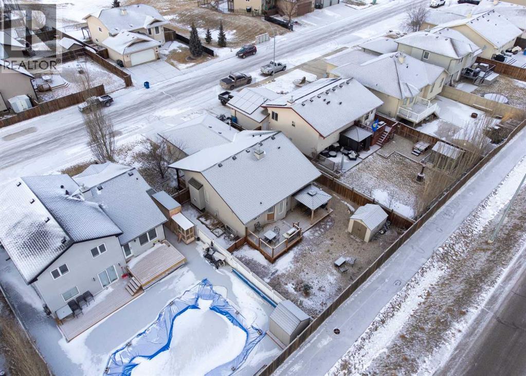 HOME SWEET HOME! This is your AMAZING opportunity to enjoy the perks of small town living in a wonderfully maintained, move-in ready bungalow in the heart of charming Strathmore backing on to a school/green space! This stunning home offers 3 bedrooms, 2.5 bathrooms, 2,183+ fully developed SQFT throughout and a double attached garage. The inviting curb appeal and front porch leads in you inside where you will find your gleaming hardwood flooring, vaulted ceilings and an abundance of windows flooding the home in natural sunlight. The main floor offers a spacious and large living room perfectly complimented by a cozy gas fireplace, a foyer, formal dining area, a wonderful 4 piece bathroom, convenient laundry room and the gourmet chef’s kitchen complete with custom cabinetry, center island with built-in storage, corner pantry, stainless steel appliances and a garden door that leads you to the rear deck. Completing this floor is a great-sized bedroom and the magnificent primary retreat with a large walk-in closet and an elegant 4 piece ensuite bathroom. The fully finished basement features a huge recreation room/living room perfect for a growing family, a 3rd bedroom, a 2 piece vanity bathroom (roughed in for a shower) and the all the storage space you could require. The hot water tank is newer and 60 gallon. Outside, there is the double attached garage with 2 additional driveway parking spots and the fully fenced, low-maintenance backyard providing you with your own private oasis with a pergola, large deck and shed. Located close to all major amenities including steps from a school, playground and park, shopping, walking paths, Strathmore Lake and a quick 30 minute drive to Calgary. This is the opportunity you have been looking for, book your private viewing today of this GEM! (id:51913)