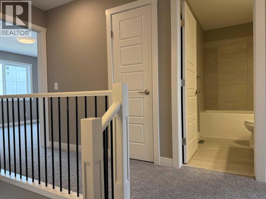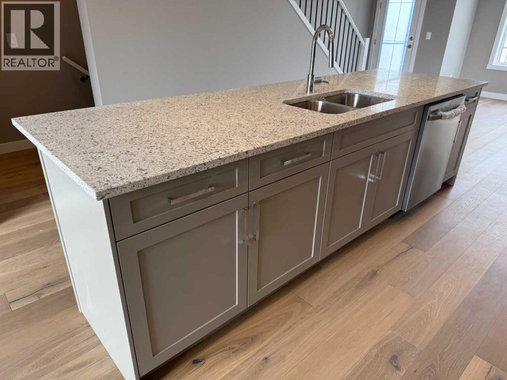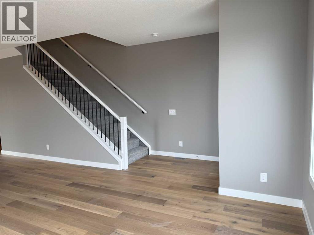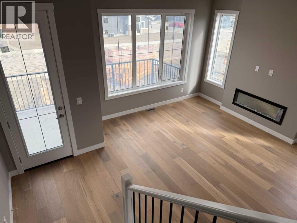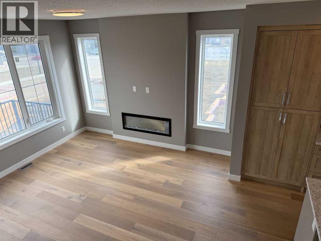 Excellent Value in Sunset Ridge… Introducing the Stirling Model by Douglas Homes Master Builder… This beautifully designed 3-storey end-unit townhouse offers approximately 1,525 sq. ft. of thoughtfully planned living space with 3 bedrooms, 2.5 bathrooms, a ground-level flex room, and a spacious double attached garage…all with NO Condo Fees…. Located in the desirable community of Sunset Ridge, this home blends modern comfort, functionality, and low-maintenance living for families, professionals, or buyers looking to right-size without compromise… Positioned with an east-facing front entrance and porch, this home welcomes the morning sun beautifully, while the south side exposure allows for additional natural light throughout the day…. The west-facing rear side provides warm afternoon and evening light, helping create a bright and inviting atmosphere across all levels of the home… The bright and open main floor features 9' ceilings, engineered hardwood flooring, and large windows that flood the space with natural light… The contemporary kitchen is beautifully appointed with quartz countertops, ample cabinetry, a central island, and a premium builder-grade stainless steel appliance package, flowing seamlessly into the dining nook and great room, making the space ideal for both daily living and entertaining...A stylish electric fireplace adds warmth and character to the main living area… Upstairs, the primary bedroom offers a comfortable retreat complete with a walk-in closet and private ensuite bathroom. Two additional bedrooms, a full bathroom, and convenient upper-floor laundry complete the upper level… The ground-level flex room provides excellent versatility for a home office, fitness area, hobby room, or additional guest space. Enjoy outdoor living with both a raised treated wood deck and a ground-level concrete patio, while the full landscaping package adds everyday convenience… The end-unit placement enhances privacy and maximizes natural light exposure from multiple directions, giving the home an open and airy feel throughout… ** Key Features: || 3-Storey End Unit Townhouse | No Condo Fees | Double Attached Garage | Ground-Level Flex Room | East-Facing Front Porch | South Side Exposure | West Rear Exposure | 9' Main Floor Ceilings | Quartz Countertops | Engineered Hardwood on Main Floor | Electric Fireplace | Upper Floor Laundry | Raised Treated Wood Deck | Concrete Patio | Full Landscaping | 3 Bedrooms | 2.5 Bathrooms | Approx. 1,525 Sq. Ft. | Located in Sunset Ridge, Cochrane || (id:51913)
