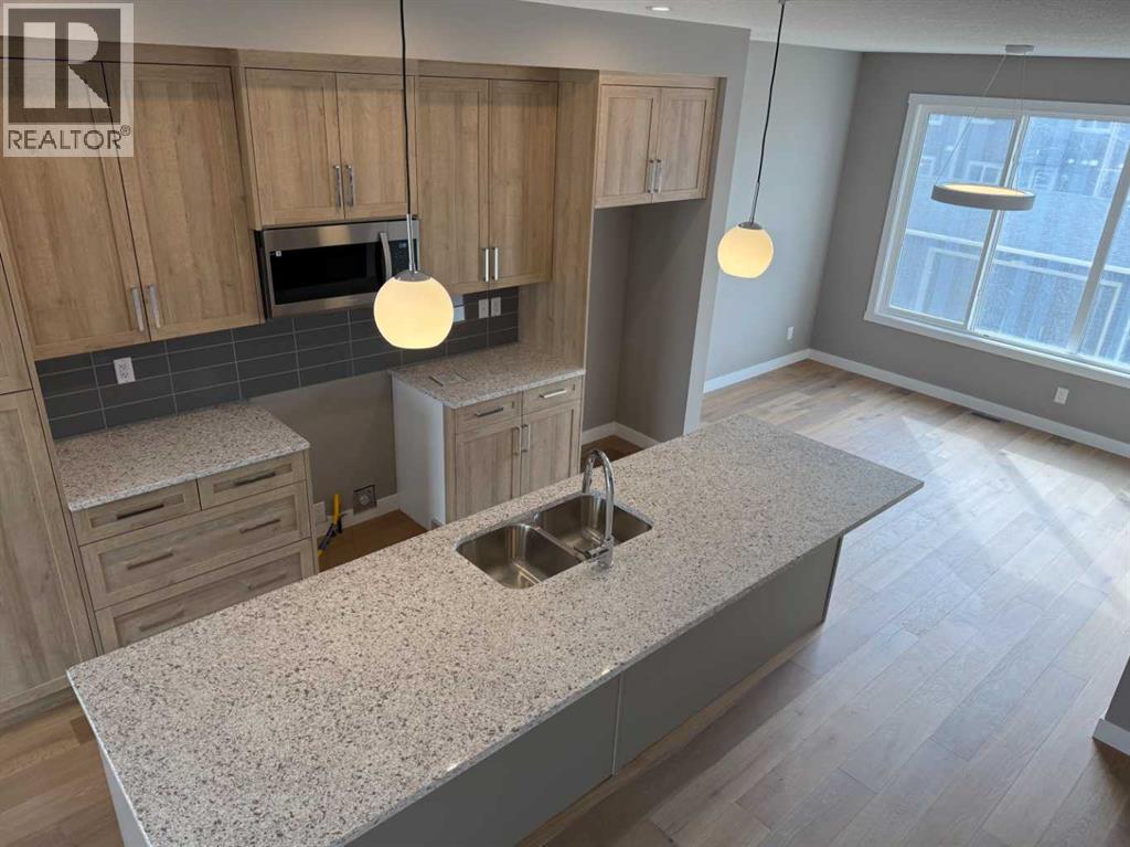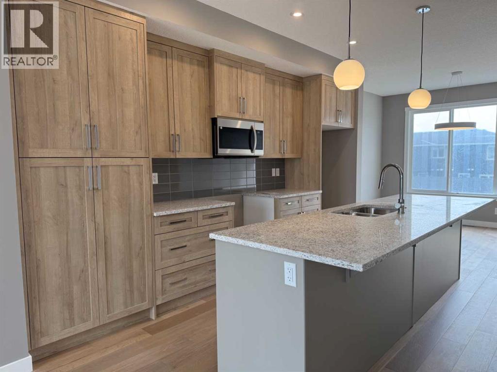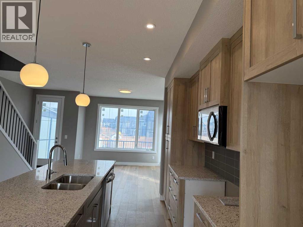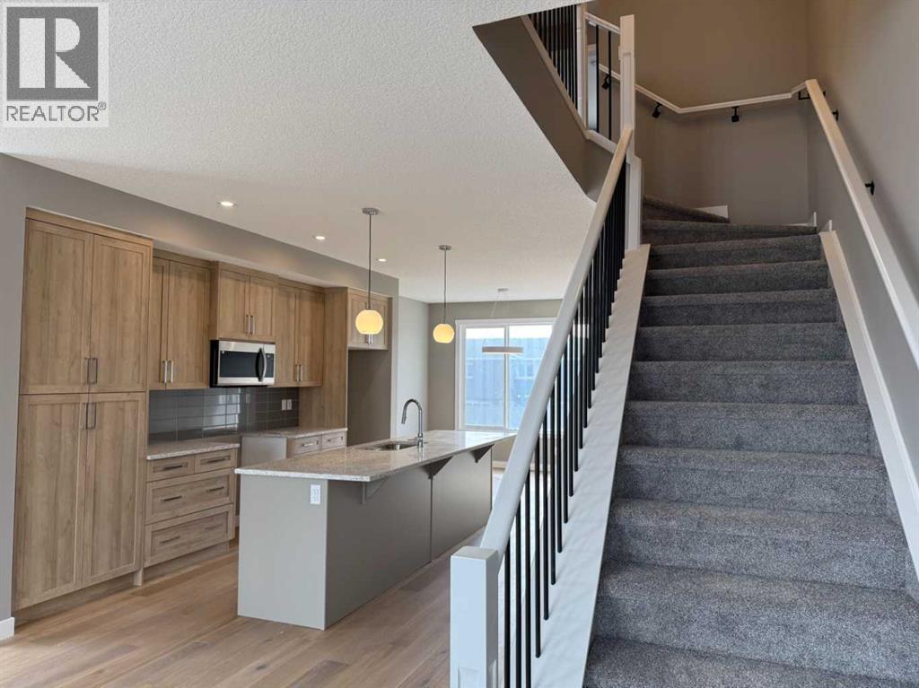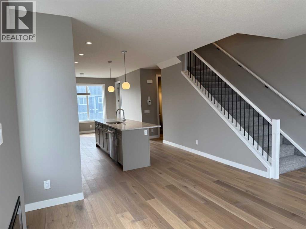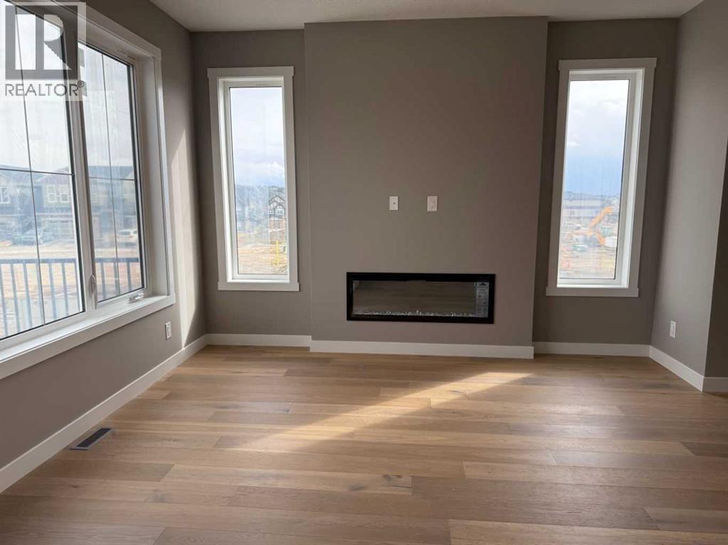 Excellent Value in Sunset Ridge… Introducing the Stirling Model by Douglas Homes Master Builder… This beautifully designed 3-storey end-unit townhouse offers approximately 1,525 sq. ft. of thoughtfully planned living space with 3 bedrooms, 2.5 bathrooms, a ground-level flex room, and a spacious double attached garage…all with NO Condo Fees…. Located in the desirable community of Sunset Ridge, this home blends modern comfort, functionality, and low-maintenance living for families, professionals, or buyers looking to right-size without compromise… Positioned with an east-facing front entrance and porch, this home welcomes the morning sun beautifully, while the south side exposure allows for additional natural light throughout the day…. The west-facing rear side provides warm afternoon and evening light, helping create a bright and inviting atmosphere across all levels of the home… The bright and open main floor features 9' ceilings, engineered hardwood flooring, and large windows that flood the space with natural light… The contemporary kitchen is beautifully appointed with quartz countertops, ample cabinetry, a central island, and a premium builder-grade stainless steel appliance package, flowing seamlessly into the dining nook and great room, making the space ideal for both daily living and entertaining...A stylish electric fireplace adds warmth and character to the main living area… Upstairs, the primary bedroom offers a comfortable retreat complete with a walk-in closet and private ensuite bathroom. Two additional bedrooms, a full bathroom, and convenient upper-floor laundry complete the upper level… The ground-level flex room provides excellent versatility for a home office, fitness area, hobby room, or additional guest space. Enjoy outdoor living with both a raised treated wood deck and a ground-level concrete patio, while the full landscaping package adds everyday convenience… The end-unit placement enhances privacy and maximizes natural light exposure from multiple directions, giving the home an open and airy feel throughout… ** Key Features: || 3-Storey End Unit Townhouse | No Condo Fees | Double Attached Garage | Ground-Level Flex Room | East-Facing Front Porch | South Side Exposure | West Rear Exposure | 9' Main Floor Ceilings | Quartz Countertops | Engineered Hardwood on Main Floor | Electric Fireplace | Upper Floor Laundry | Raised Treated Wood Deck | Concrete Patio | Full Landscaping | 3 Bedrooms | 2.5 Bathrooms | Approx. 1,525 Sq. Ft. | Located in Sunset Ridge, Cochrane || (id:51913)