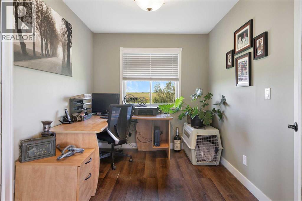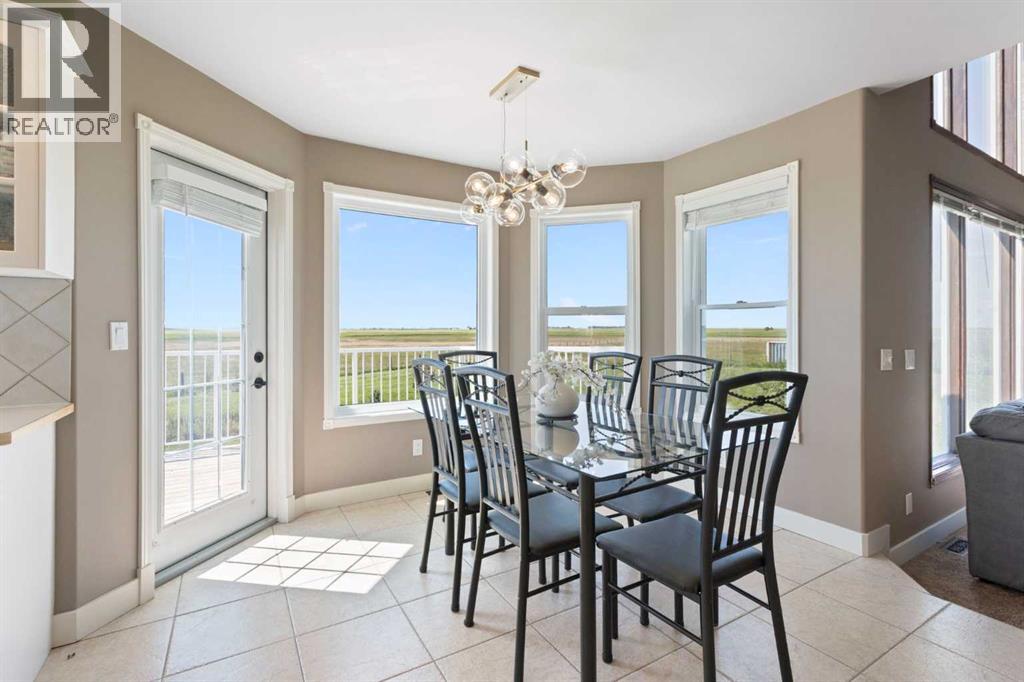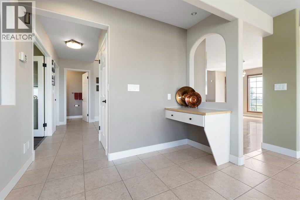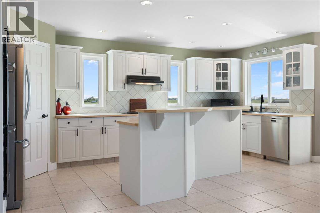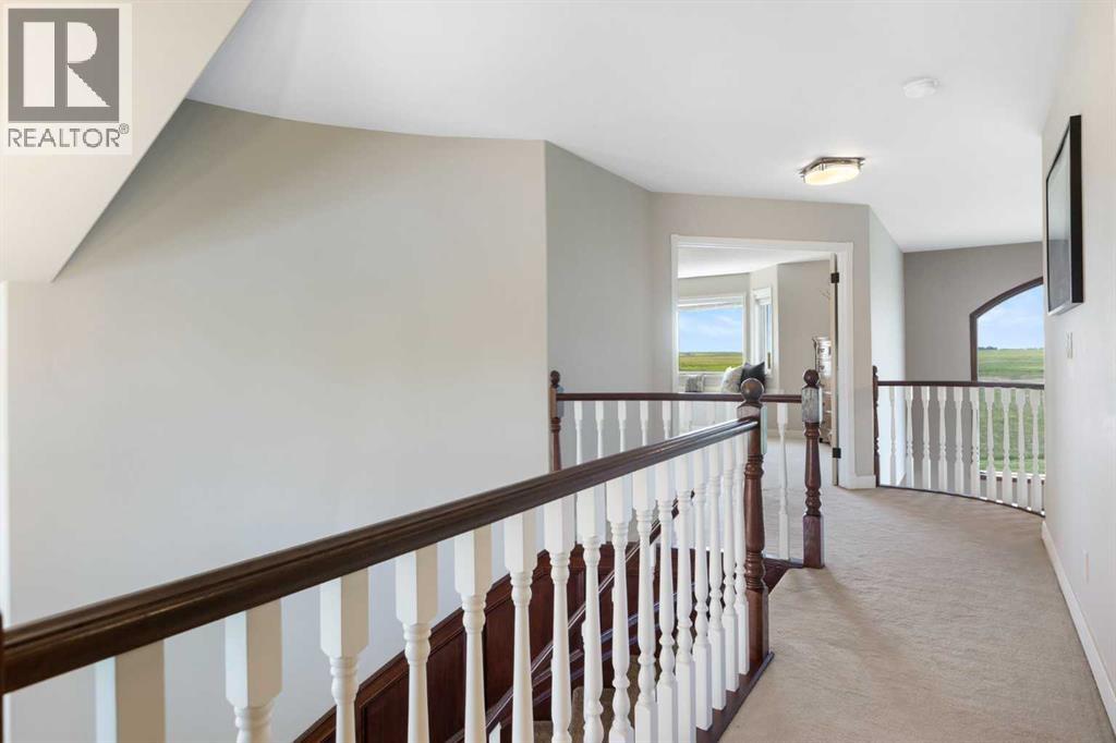 Step into a life where sweeping views, privacy, and comfort come together in perfect harmony. This stunning 2,741 sq ft two-storey walk-out home sits on a peaceful 4-acre parcel of prairie in Rocky View County -- perfect for that serene acreage charm. From the moment you arrive, a grand spiral staircase makes a dramatic first impression, setting the tone for thoughtful design and spaces meant to be lived in. The open-concept main floor boasts vaulted ceilings in the family room and living areas, complemented by rounded corner detailing, hardwood and ceramic tile finishes, and a gourmet kitchen featuring a large island, breakfast bar, double oven and eat-in nook -- built for both everyday living and entertaining. The fully finished lower level is a self-contained illegal suite -- featuring two additional bedrooms, bathroom, a full kitchen, and a living area complete with a cozy gas fireplace. It also benefits from a walk-out to the backyard and massive amounts of natural light. Enjoy both privacy and easy access; in under 15 minutes you can be in Calgary. Whether you’re sipping coffee on the balcony or exploring your land, this is a property that brings the calm and beauty of country living right to your doorstep. (id:51913)