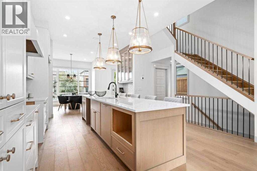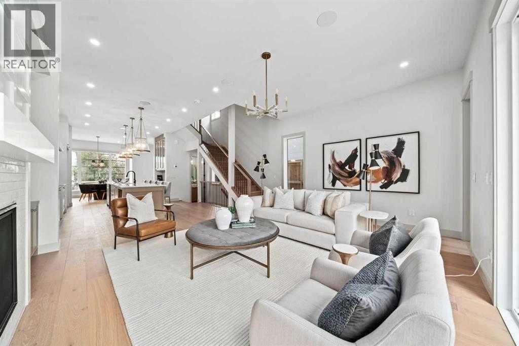 Set on a quiet cul-de-sac in WEST HILLHURST, this GORGEOUS NEW BUILD 3 STOREY DUPLEX delivers modern design, functional living and thoughtful detail in one of Calgary’s most established inner-city communities. A SOUTH BACKYARD enhances natural light and outdoor enjoyment. The main floor is designed for everyday ease and entertaining, with an open layout that flows naturally between the living room, dining area and kitchen. A FIREPLACE anchors the living space, creating warmth and visual interest, while HARDWOOD FLOORING provides durability and timeless appeal. The kitchen is thoughtfully planned with generous prep space, modern cabinetry and a layout that supports both daily routines and hosting. On the second level, well-proportioned bedrooms are complemented by a primary bedroom featuring a PRIVATE ENSUITE with a DOUBLE VANITY, offering comfort, functionality and a sense of retreat. The THIRD STOREY is a standout feature, offering a flexible retreat ideal for entertaining, working or hosting guests. This level includes a PRIVATE BEDROOM well suited for overnight visitors or a quiet HOME OFFICE, enhanced by separation from the main sleeping areas below. A WET BAR supports relaxed evenings and casual gatherings, while access to TWO DECKS with both NORTH AND SOUTH EXPOSURE allows for sunlight throughout the day, outdoor breaks between meetings or private lounging above the surrounding streetscape. The basement is developed to extend living space, offering flexibility for a media room, home gym or guest area, with finishes consistent with the quality found throughout the home. The EXTERIOR showcases a striking combination of BRICK and COMPOSIT ELEMENTS, delivering a modern aesthetic with lasting durability. LANDSCAPING is planned per the approved site design, with concrete walkways and defined outdoor spaces in place. Parking is accommodated by a DOUBLE DETACHED GARAGE accessed from the rear lane, providing secure, weather-protected parking and additional storage. WES T HILLHURST is prized for its walkability, mature tree-lined streets and strong community feel, with easy access to river pathways, parks, local shops and everyday amenities. Proximity to downtown, major routes and nearby neighbourhood favourites makes this location especially appealing for those seeking inner-city living without sacrificing comfort, privacy or connection to green space. (id:51913)