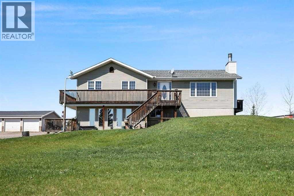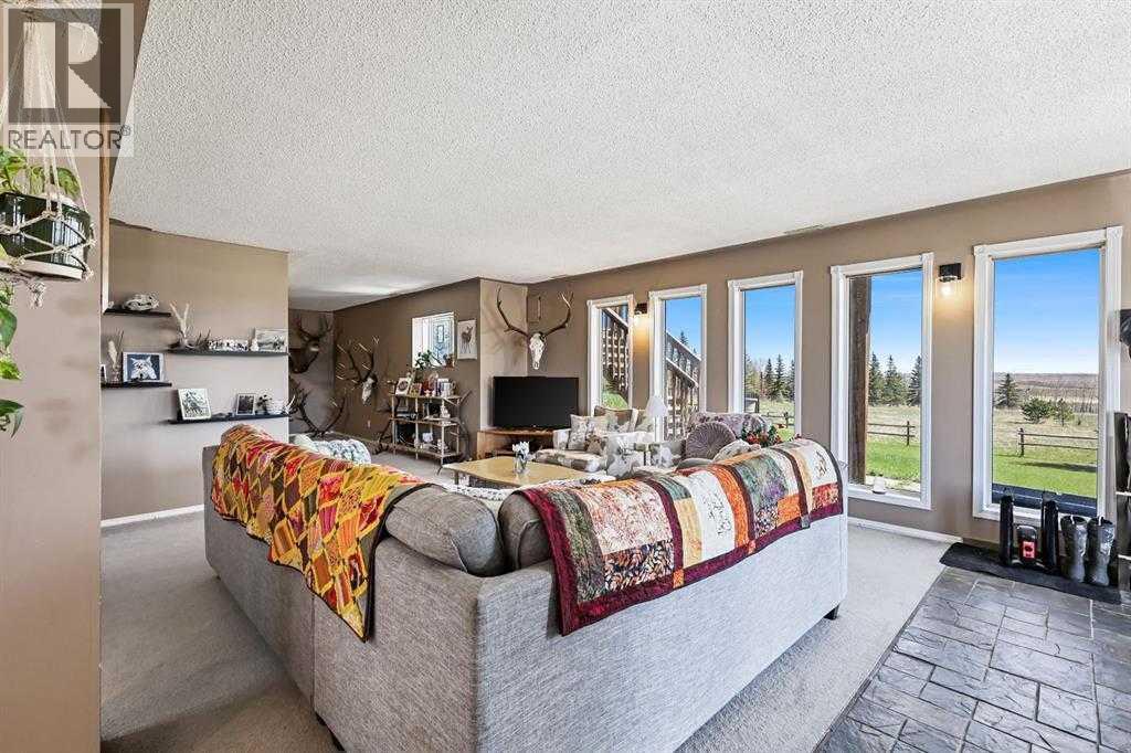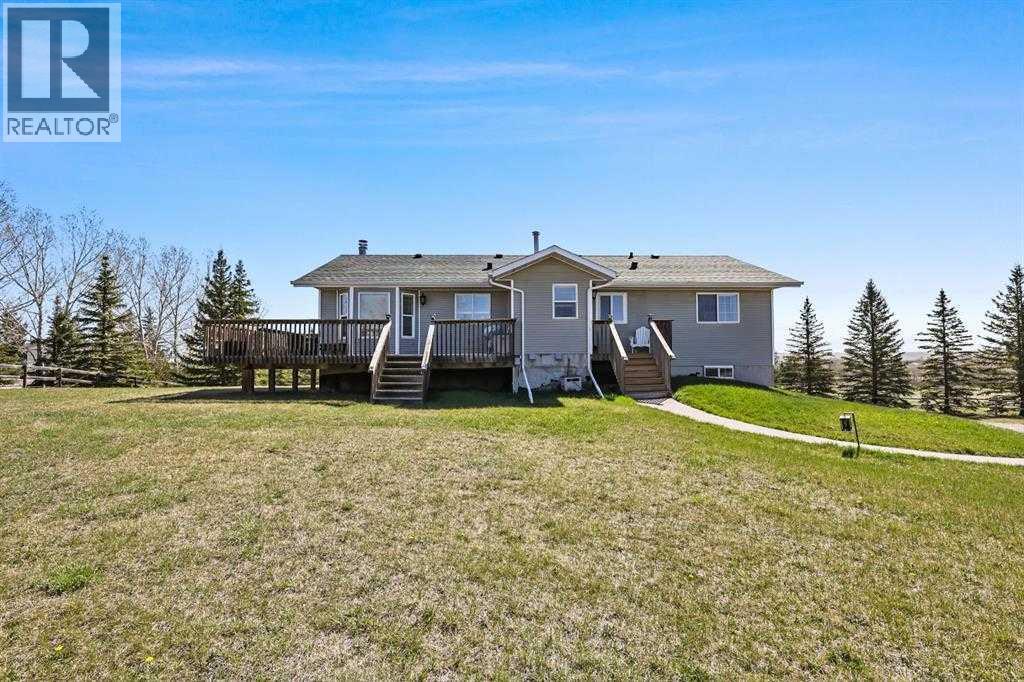 9.34 stunning acres on a hill with views of the river valley. This lovely walkout bungalow has three bedrooms up with two full bathrooms. Open living includes luxury items like quartz countertops in the kitchen, hardwood/cork/travertine floors throughout with a heated floor in the ensuite and downstairs bathroom. All closets in the house have Closet maid fully adjustable wire shelving systems. A cozy wood-burning fireplace for those chilly winter nights is a bonus. The basement has a separate private entry for extended family as well as access through the house. Multiple decks on this property allow you attain the full experience of outdoor living in the peace of the country. This property is the perfect horse set up….with multiple paddocks for rotational grazing. Two horse shelters, and multiple waterers which may be turned on or off from the house. Large barn/shop (32'x40') with approximately 120'x 80' grass arena. The water is from a well which was rated at 10-12gpm. The triple car garage completes this gorgeous property. The new owner will benefit from regular maintenance on this property which includes a new roof on house/garage and hot water tank in the last few years. The immaculate home is located 15 minutes to Calgary or Okotoks on a quiet cul-de-sac just North of the Saskatoon Farm in the hamlet of Davisburg. It is located on a school bus route servicing Heritage Heights and Okotoks schools. (id:51913)