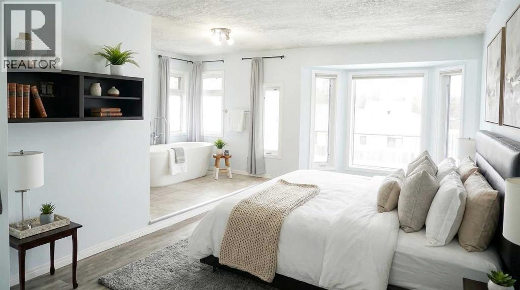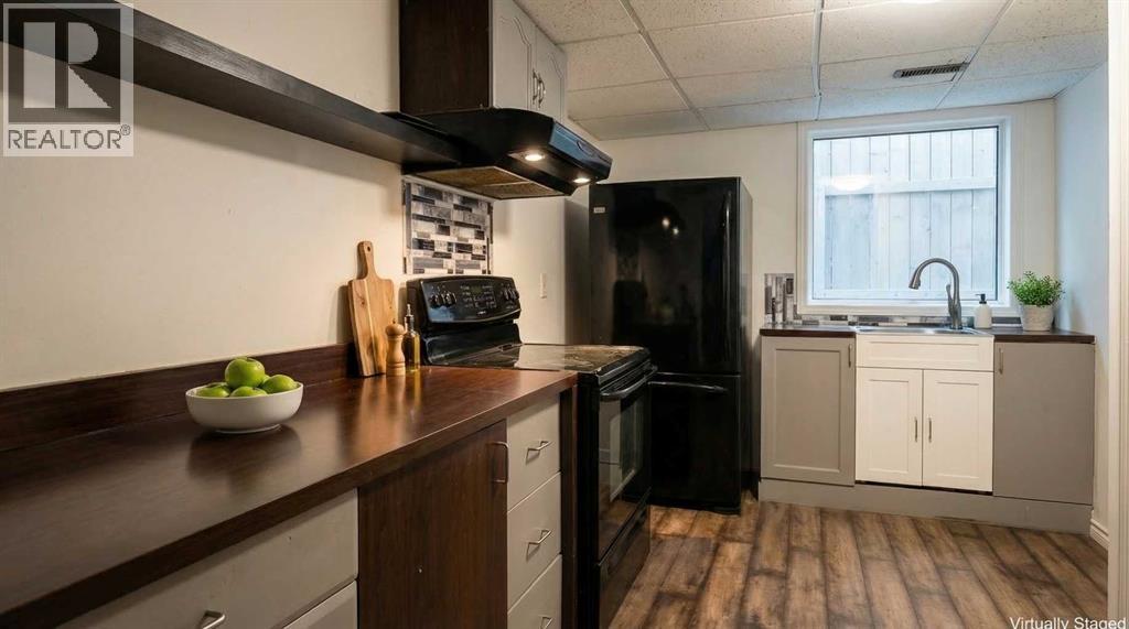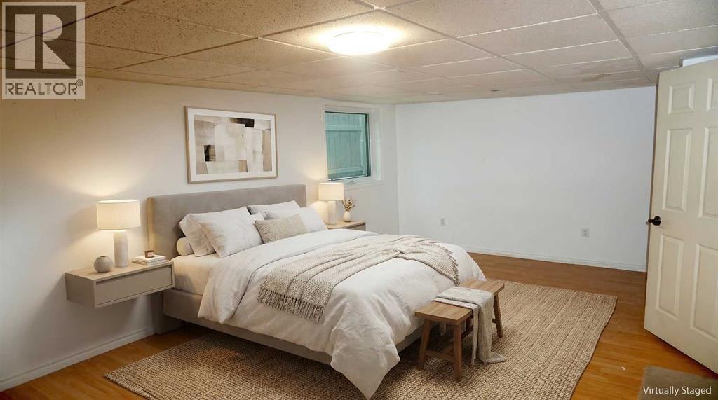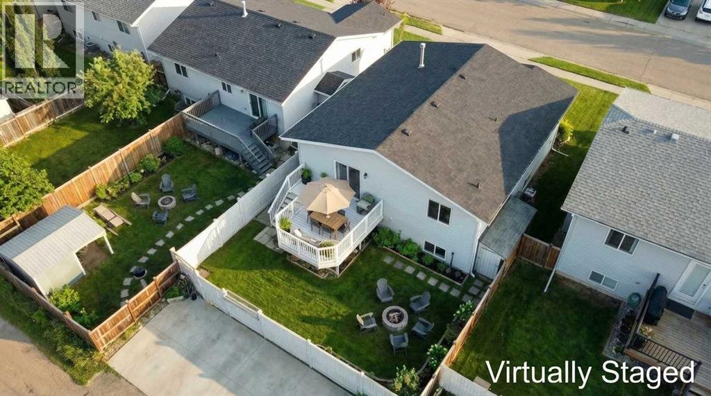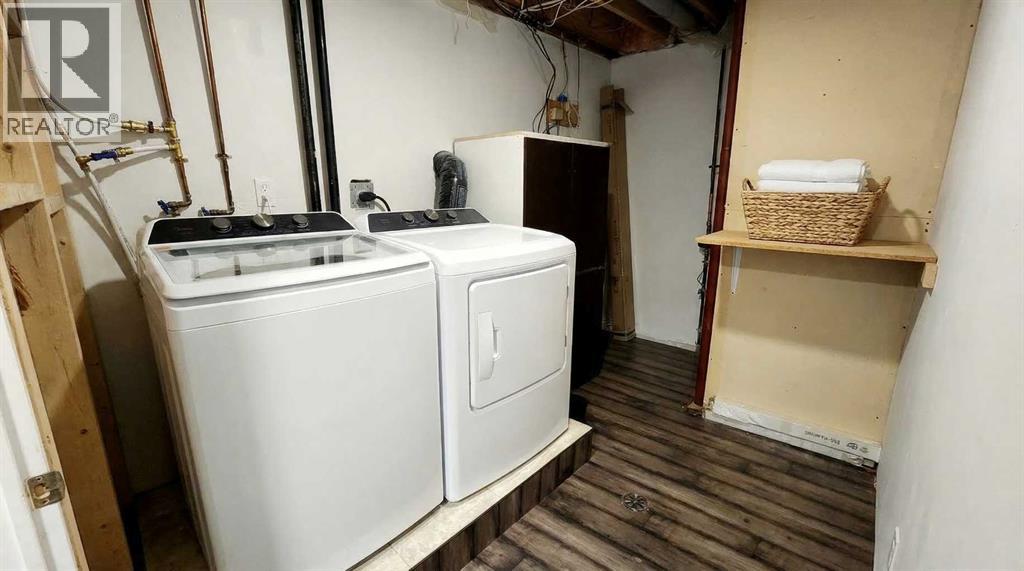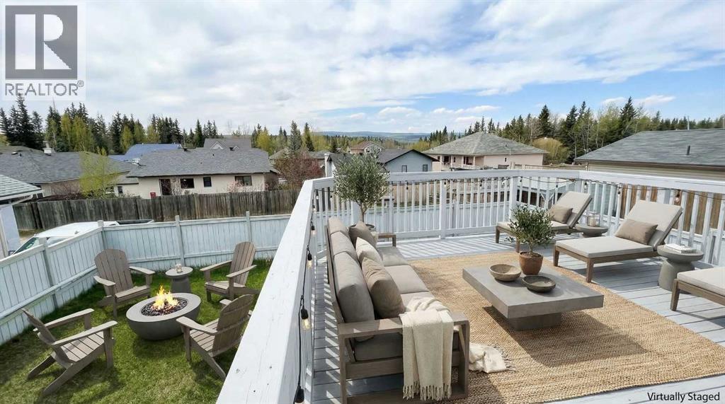 Located in the Thompson Lake area of Hinton, this well-maintained bungalow offers convenient access to parks, shopping, walking paths and community surrounded by trees. With 1,365 sq ft of above-grade living space, the property provides a spacious layout and has been thoughtfully set up as a successful AIRBNB opportunity.A front deck welcomes you to the main entrance and provides an inviting outdoor sitting area before stepping inside. The foyer offers a comfortable landing space with convenient access to the main living area and the staircase leading to the fully developed basement.The main floor features an open concept between living room and dining area with large windows allowing plenty of natural light. The kitchen includes L-shaped island with breakfast bar with seating, connecting seamlessly with the main living space.The main level features two spacious bedrooms, including large master bedroom with walk-in closet and 4 piece en-suite including separate shower, and soaker tub. A second bedroom is well sized with good closet space, and an additional full bathroom which is also located on the main level.A door from the living area leads to the rear deck overlooking the fully fenced backyard with fire pit and rear alley access. A paved parking pad provides ample off-street parking.The fully finished basement offers an illegal suite including, additional living space with a large family room featuring a gas fireplace. The lower level also includes two additional bedrooms, a 3-piece bathroom, a second kitchen area, and laundry space.The property is being sold fully furnished, providing a turnkey opportunity for buyers seeking a furnished residence or AIRBNB rental setup. (id:51913)