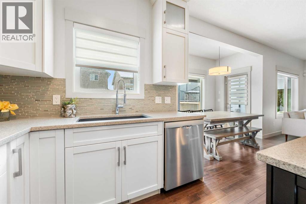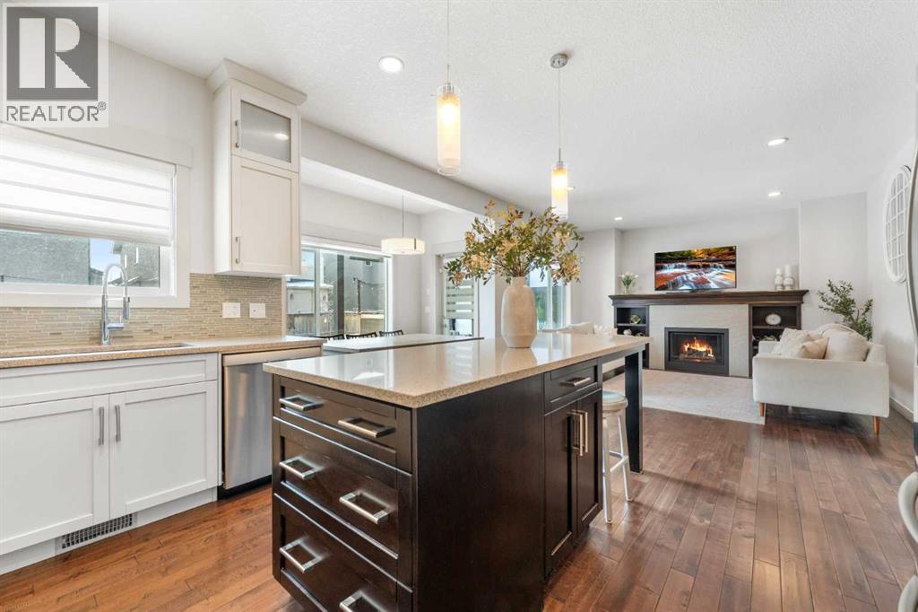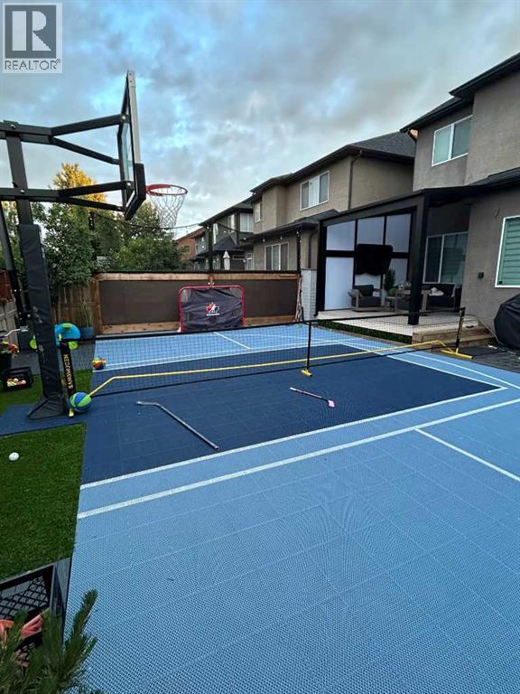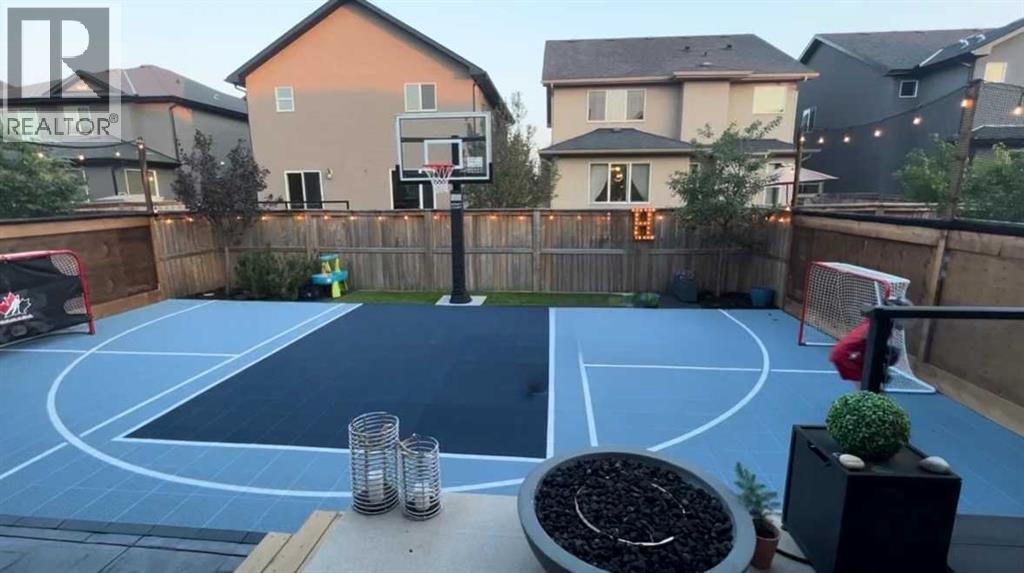 The home you’ve been waiting for in the community everyone wants to be in. Welcome to Aspenshire Estates, where this rare 4-bedrooms-up home is perfectly positioned on a sun-soaked, south-backing lot in one of Calgary’s most desirable westside communities. Walking distance to top-tier schools, Aspen Landing, dining, shopping, and everyday amenities, this is truly a home designed for modern family living. From the moment you enter, you’ll appreciate the thoughtful upgrades and timeless details, including rounded corners throughout, an open-riser staircase, custom built-ins, 9-foot basement ceilings, large basement windows, and an oversized garage. The kitchen is the heart of the home, showcasing stunning full-height white cabinetry, a large pantry, a beautiful central island, and seamless flow into the open-concept dining and living areas, anchored by a striking focal fireplace. A remodeled main-floor office with custom built-in desk space for three makes working or studying from home effortless, while a practical mudroom with added lockers keeps everything organized. The open-riser staircase leads to the upper level, where you’ll find three charming secondary bedrooms, a spacious bonus room with added, wall-anchored cabinetry, and a true primary retreat complete with a walk-in closet and a luxurious five-piece ensuite. The fully developed basement offers incredible versatility with a large 5th bedroom featuring a generous closet, a full bathroom, and a spacious open recreation area. Highlights include a built-in feature wall for TV and entertainment, a custom gym setup with 8mm rubber flooring, custom mirror, and anchored cedar wall beams, plus added wood shelving in the mechanical room for storage. Tucked under the stairs is a dream playhouse—a favorite for kids. Step outside to what may be every child’s dream backyard. A massive 38’ x 20’ poured concrete sport court seamlessly connects to existing stamped concrete and features customized lines for basketball and pickleball. Artificial turf has been added behind the court for low-maintenance play space. The backyard is further enhanced by a custom covered entertainment area, professionally constructed by Suncoast Enclosures using aluminum (anti-rust) framing and specialized panels. This space includes a built-in feature wall ready for a mounted TV with concealed power and a retractable shade for the south-facing exposure. Additional highlights include Gemstone exterior lighting on both levels of the front elevation, a fully finished garage with paint, shelving, sport lockers, and durable wall-panel storage systems (all included), central air conditioning, newer dishwasher, microwave, and hot water tank, and additional lockers added to the mudroom. This is truly where you want to raise your family—surrounded by some of the city’s top schools, close to Westside Recreation Centre, with easy access to Stoney Trail and only 20 minutes to downtown. A rare opportunity to own a thoughtfully upgraded family home. (id:51913)
