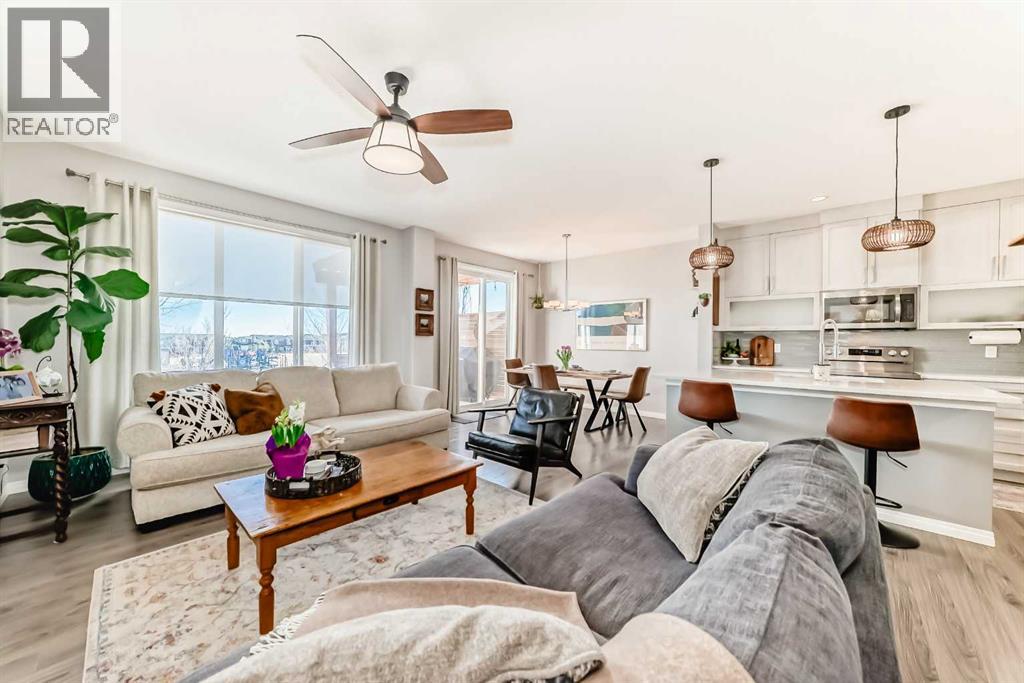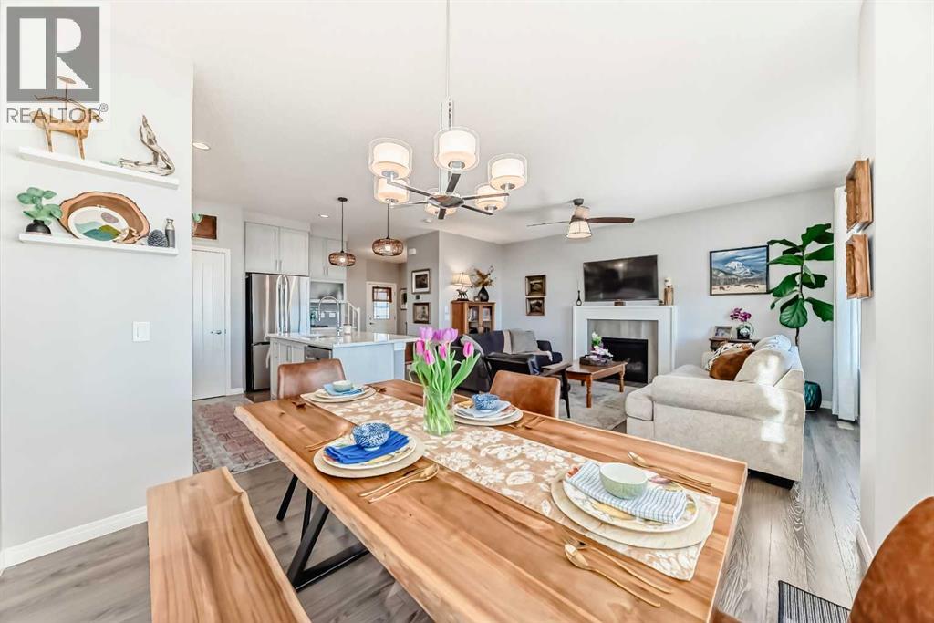 Welcome to this beautifully maintained and extensively upgraded Calbridge-built two-storey in the heart of Fireside — offering direct access to both the public and Catholic K–8 schools right behind the home.For families, this location is exceptional. WATCH OR WALK your children to school in SECONDS and enjoy the convenience of playgrounds, a ball diamond, outdoor rink, skate park, future dog park and scenic forest trails all just steps away. It’s a lifestyle designed around growing families and everyday ease.Inside, the main floor features 9’ ceilings, a stunning 8’ rear window and 8’ patio door that flood the space with natural light, and upgraded kitchen cabinetry extended to the ceiling. The kitchen is beautifully appointed with brand new refrigerator and stove (2025), newer dishwasher, and modern finishes throughout. Hunter Douglas blinds are installed in all windows, and new CENTRAL A/C (2025) ensures year-round comfort.Upstairs, you’ll find three generous bedrooms and a large, cozy bonus room highlighted by a stunning feature wall — the perfect family gathering space. The primary retreat offers a spacious walk-in closet and an impressive 5-piece ensuite designed for comfort and relaxation. Convenient upper-floor laundry with a newer washing machine adds everyday practicality.The professionally finished basement, completed by Calbridge, includes large sunshine windows that create a bright and welcoming lower level, complete with an additional bedroom, full bathroom and spacious recreation area — ideal for guests or teens.Step outside to a thoughtfully designed backyard with two decks, a privacy pergola (2023), and strategically planted trees for added privacy while still enjoying the open space behind. The widened driveway and dedicated bin pad (2025), along with new low-maintenance front landscaping (2025), enhance both function and curb appeal.Located just 5 minutes to shopping, restaurants, daily essentials & Highway 22 for Calgary or mountain ac cess, and only 10 minutes to downtown Cochrane, this home blends quality construction, thoughtful upgrades and unbeatable family convenience.Meticulously cared for and truly move-in ready. (id:51913)
