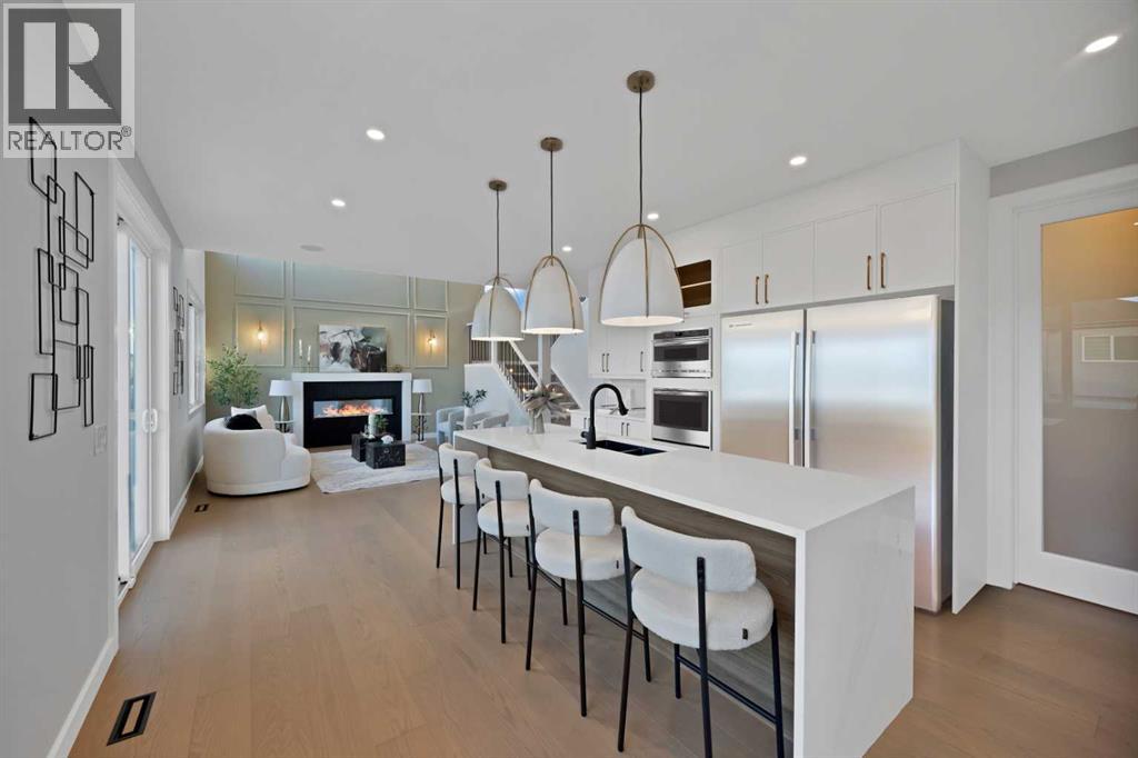 This remarkable semi-estate property offers an exceptional blend of luxury, space, and functionality, designed to impress from the moment you arrive featuring 2 Primary bedrooms, SPICE Kitchen, Built-in appliances, feature walls, bedroom and a full bathroom at the main floor, 2 Living areas, OPEN TO BELOW and a lot more to explore. Situated on a conventional lot, the home boasts a 3 car garage and features 9-foot ceilings on all three levels, enhancing the sense of openness and sophistication throughout. As you step inside, you're greeted by a dramatic open-to-below foyer with custom feature walls that set the tone for the elegance found across the home. The main floor is thoughtfully designed with a full bedroom and full bathroom, perfect for guests or multi-generational living. A large living area centers around a beautiful gas fireplace with built-in features, while a spice kitchen adds functionality and convenience. The heart of the home is the gourmet kitchen, complete with built-in appliances and a massive island — an ideal space for entertaining and culinary creativity. Upstairs, you’ll find two spacious primary bedrooms. The main primary suite offers a luxurious 6-piece ensuite and a generous walk-in closet, while the second primary features its own elegant 5-piece ensuite. Two additional bedrooms share a third bathroom and are complemented by a huge bonus area, perfect for a media room or play space. A conveniently located laundry room completes the upper floor. The unfinished walkout basement is waiting for your imagination. With its thoughtful layout, upscale finishes, and room to grow, this home truly offers a lot to explore and even more to love. (id:51913)