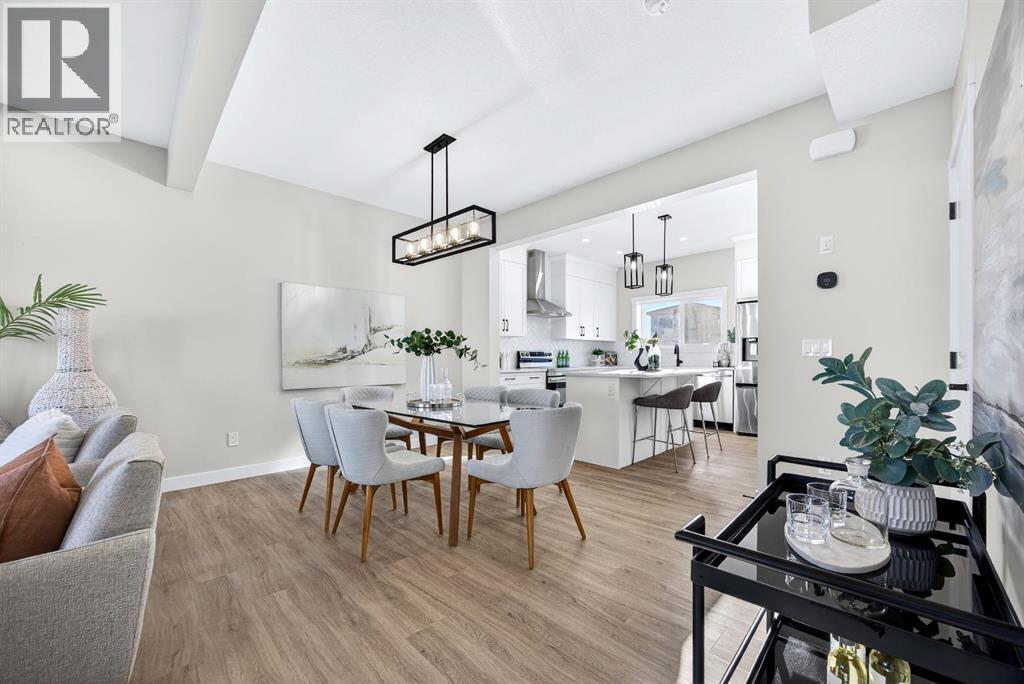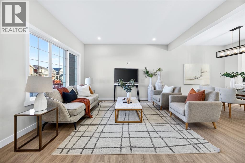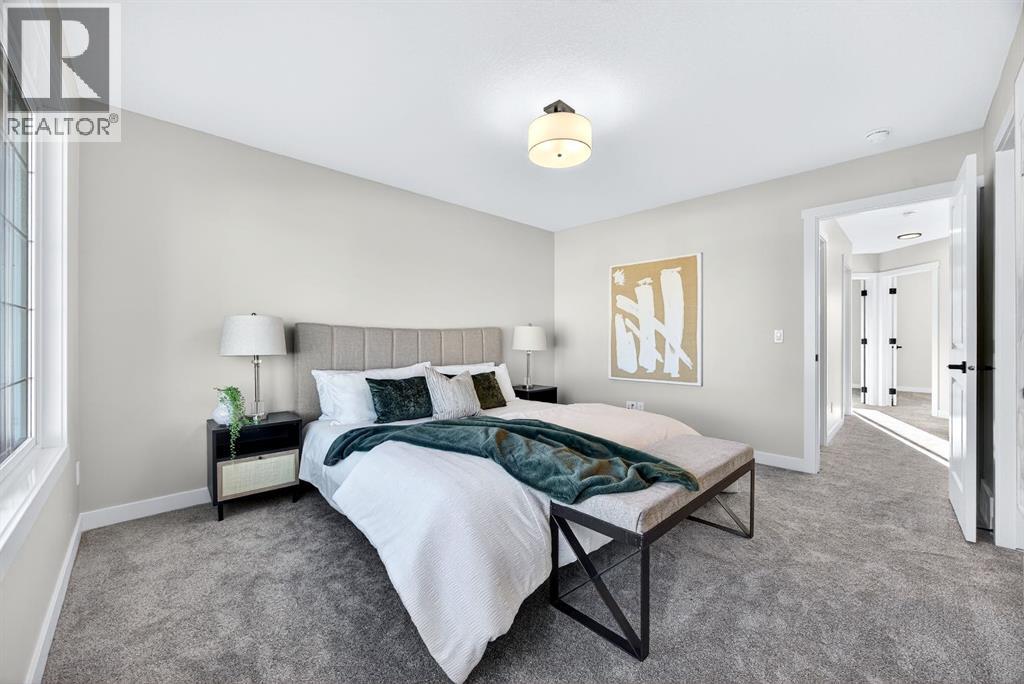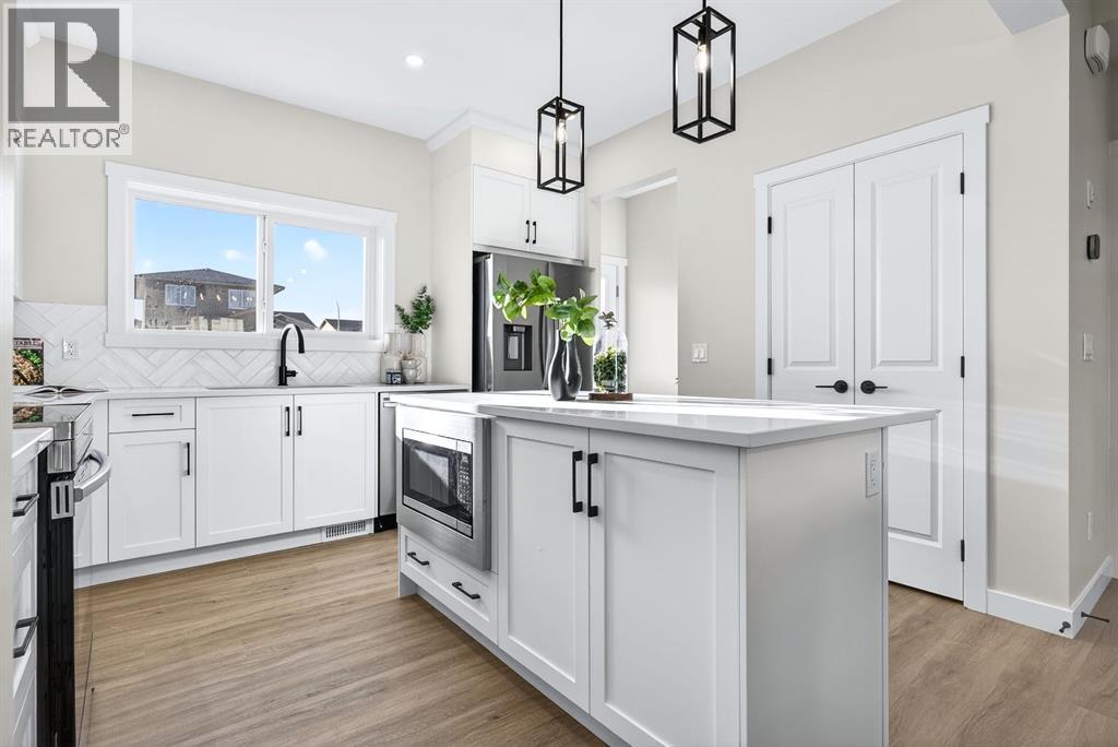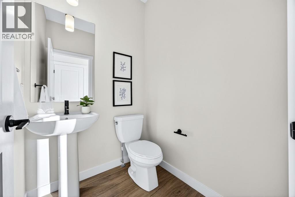 Welcome to this stunning, brand-new Genesis Builders duplex. The "Oscar" offers modern design, functional living, and exceptional future potential with basement suite rough-ins, all complemented by a warm, inviting colour palette that creates a welcoming atmosphere throughout the home. Featuring 3 bedrooms and 2.5 bathrooms, this home is thoughtfully crafted and offers over 1400 sq ft. The main floor showcases a bright, sun-filled floorplan with 9' ceilings and a seamless open-concept layout, connecting the spacious living room, central dining area, and stylish kitchen. The kitchen is beautifully appointed with quartz countertops, two-toned cabinetry, a large central island, and a sleek stainless steel appliance package, complete with a gas line to the range. A convenient powder room completes the main level. Upstairs, the primary suite is a private retreat featuring a generous walk-in closet and a spa-inspired ensuite with his-and-hers sinks and an oversized shower. Two additional well-sized bedrooms, a full bathroom, and convenient upper-floor laundry complete the second level. The unfinished basement offers incredible flexibility with 9' ceilings, a separate SIDE ENTRANCE, and BASEMENT SUITE ROUGH INs, making it ideal for additional living space or future income potential. Outside, the backyard is a blank canvas, ready for your personal touch and offering the opportunity to build your dream garage. Located in the vibrant and family-friendly community of Fireside, this home offers the perfect balance of small-town charm and modern convenience. Fireside is known for its extensive pathway system, parks, playgrounds, and green spaces, ideal for walking, biking, and outdoor enjoyment. Residents love the easy access to schools, shops, restaurants, and everyday amenities, all just minutes away. With quick access to Highway 22 and Highway 1, commuting to Calgary or heading west to the mountains is effortless. *Taxes have not been assessed. Photos are representative of th e same model. This property's colour palette is included in the pictures. RMS has been applied to the builder's construction drawings. (id:51913)