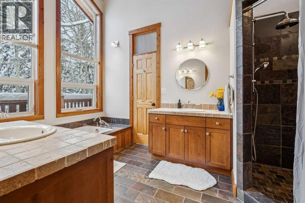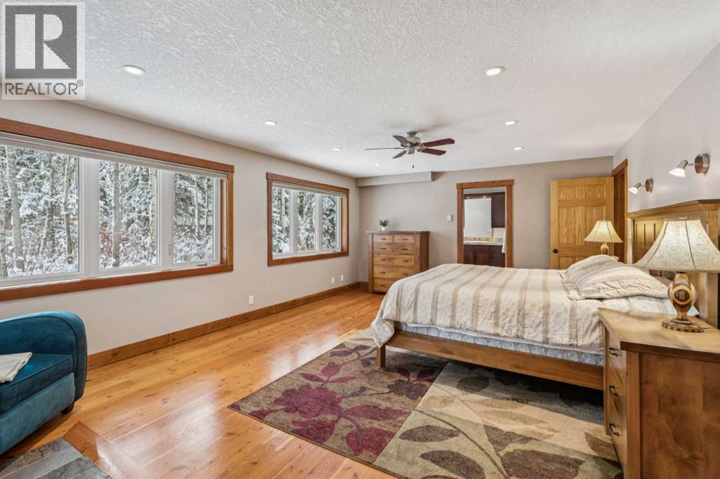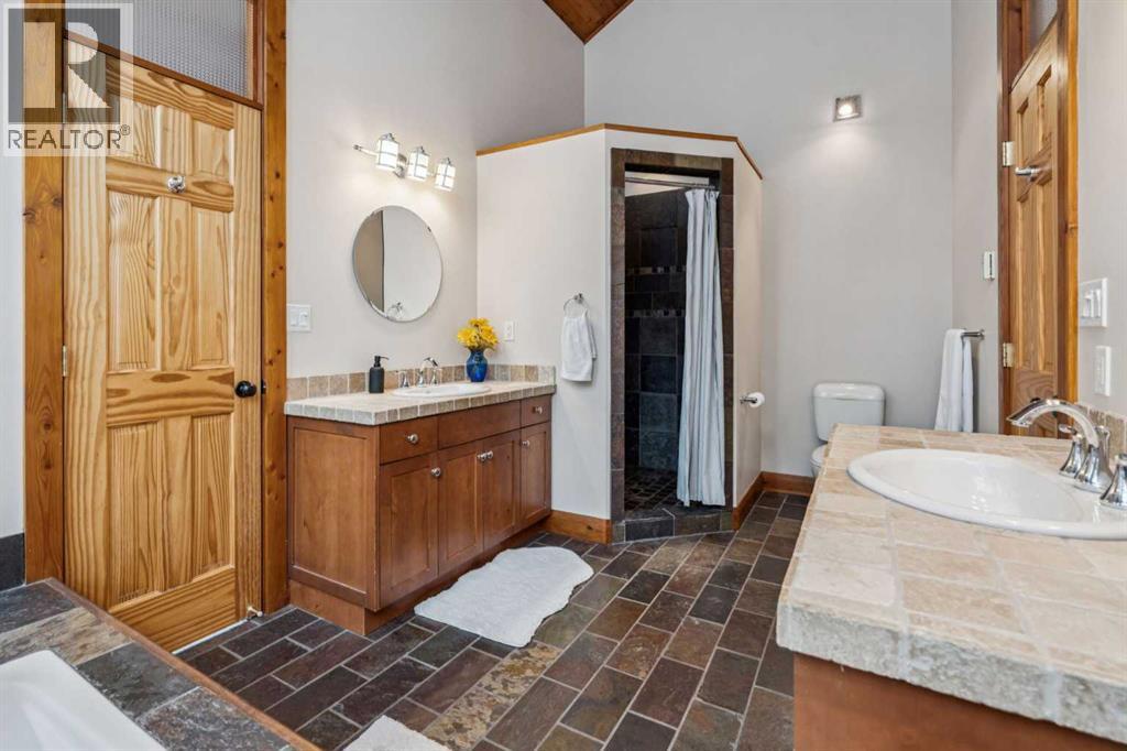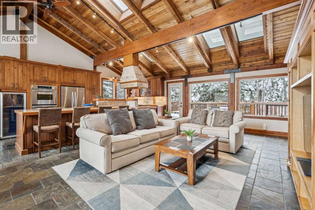 **OPEN HOUSE SATURDAY, MARCH 21 11am-4pm.** Wake up to breathtaking mountain views and the peaceful beauty of Lac des Arcs. This private and pristine half-acre mountain retreat offers spectacular scenery and surrounds you with the incredible outdoor lifestyle that defines the Bow Valley.This beautifully designed home offers over 4,300 square feet of developed living space, featuring soaring vaulted ceilings, rustic wide-plank flooring, rough-cut timber beams, warm cedar ceilings, and skylights that flood the home with natural light. A stunning wrap-around timber deck creates the perfect place to relax and take in the surrounding beauty. Originally built in 1978, the home was EXTENSIVELY EXPANDED in 2006 with the addition of a second storey and an enlarged main-floor primary suite, creating a spacious and thoughtfully designed layout. The chef-inspired kitchen features stone countertops and opens to the main living and dining areas where large windows frame beautiful mountain views. A cozy wood stove adds warmth and character to the dining space, while a separate sitting area with a wood-burning fireplace creates a cozy retreat. The large main-floor primary suite is a true sanctuary, offering direct access to the rear deck and a luxurious five-piece ensuite with soaring windows and nature views. An elegant staircase leads to the upper level to two expansive bedrooms, each showcasing vaulted ceilings, expansive windows and views, and a shared spa-like 5-pc bath, providing comfortable space for family or guests. The fully developed lower level features yet another sprawling bedroom, a full bathroom, den, and gym area, offering additional flexibility for guests, recreation, or working from home. You can access the attached, oversized double garage from here. The garage and most of the home have extensive in-floor radiant heat. A standout feature of the property is the impressive 2,200 sq. ft. detached garage/workshop/carriage house. The main level includes thre e overhead bay doors, a vehicle hoist, 220V wiring, airline and compressor for air tools, making it ideal for automotive enthusiasts, hobbyists, or trades. The bright, sunny upper level welcomes you with vaulted ceilings, offering endless possibilities for a studio, workspace, or future development. In-floor heating on the main level could also be connected to the upper level. Surrounded by world-class recreation, residents enjoy nearby access to hiking and biking trails, the Bow River, the Canmore Nordic Centre, and multiple ski resorts including Nakiska, Mount Norquay, and Sunshine Village. Golf at Stewart Creek and Silvertip is just minutes away. Conveniently located just 10 minutes from Canmore, and one hour from the Calgary International Airport, this remarkable property offers the perfect balance of peaceful mountain living and convenient access to nearby communities and amenities, at a more accessible price point. Properties in this area are not part of the foreign buyers ban. (id:51913)