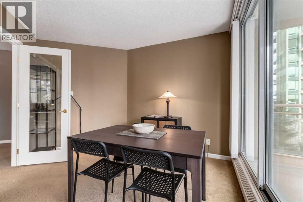 Your EXECUTIVE, urban condo lifestyle beckons at The Liberte - conveniently located in the highly sought-after Eau Claire area of Downtown Calgary, this prime END UNIT is a rare offering! Featuring a spacious floor plan with nearly 1200 SF, 2 bedrooms on either side of the suite PLUS a versatile DEN and 2 full baths. You are welcomed into the suite with a gracious tiled foyer with mirrored closet doors. The layout of the home provides separation and privacy between the living areas and the two bedrooms, each designed as a comfortable retreat. The main living/dining area is anchored with an inviting tiled gas, mantled fireplace with oversized windows to take in the urban views, the kitchen has been updated with quartz counters, stainless steel appliances and offers ample cabinets, drawers and counter space including breakfast ledge plus there is access to one of the two balconies – super convenient for your summer BBQ-ing. The den, located off the living area, is perfect for a home office, cozy dining room or other flex area as needed and features access to the second balcony. Primary bedroom easily accommodates a king-sized bed, features walk through closets with mirrored doors, and offers a 4 piece ensuite bath with soaker tub. Second bedroom is at the opposite end of the suite (great for room mates or a guest bedroom), 3 piece bath is convenient located right beside it. Side by side washer & dryer is a great upgrade. Rarely do suites in this location in the building come on the market. Titled parking stall in the heated underground parkade and additional storage locker are included. As a resident of Liberte, you will appreciate the updated and renovated common areas, have access to premium amenities, including a tennis court, bike storage, a fully equipped fitness centre and a residents lounge complete with a kitchen - ideal for your group gatherings. Plus, the building is very pet friendly! This prime location is situated just steps from some of the city’s finest restaurants including Alforno Bakery and Buchanan’s Chop House, is a short stroll to the Bow River, waking & bike pathways, Prince’s Island Park, the downtown core and surrounded by upscale amenities to suit all lifestyles; this incredible location is sure to impress. Offering the perfect blend of convenience, lifestyle, and luxury, this property is an unparalleled opportunity in the heart of the city. Perfect for the discerning buyer that wants luxury living and an option for a true lock and go lifestyle. Book your viewing Today! (id:51913)