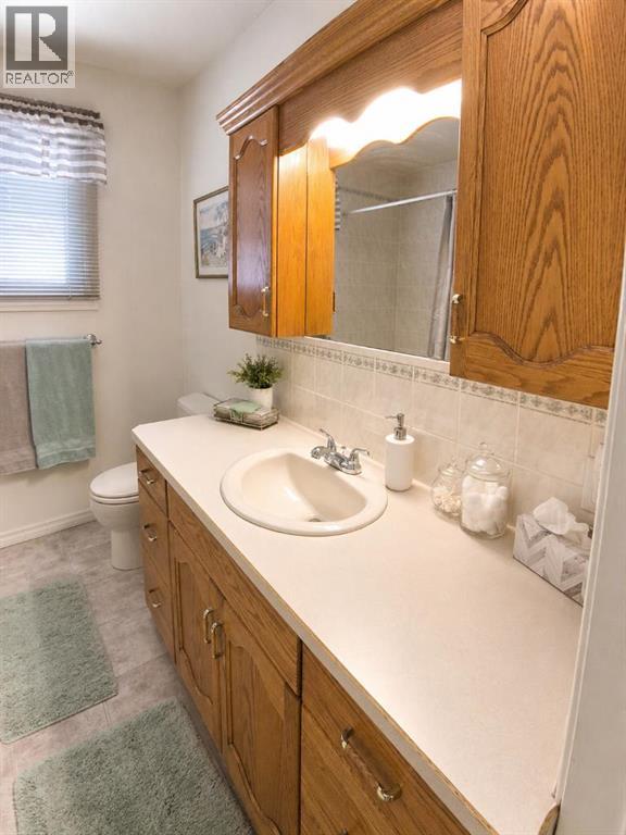 Immaculate bi-level home nestled in a quiet, family-friendly neighborhood, backing onto peaceful green space for added privacy and a true acreage-like feel. Thoughtfully designed with low-maintenance landscaping and a fully fenced yard, this property offers both comfort and convenience. Offering 988 sq ft of beautifully maintained living space, this home features two spacious bedrooms upstairs, a large, well-appointed bathroom, and rich hardwood flooring throughout the bright living room. Extensively updated over the years, improvements include newer doors and windows, New Hot water tank, updated paint, and modern cabinetry. The fully developed lower level adds exceptional versatility with a cozy gas fireplace, a generous laundry room, and option for a second kitchen—perfect for extended family or added functionality. Outside, you’ll find an oversized single detached garage, two storage sheds, a large rear deck, and underground sprinkler systems in both the front and backyard. The fully fenced yard offers back lane access with ample space for RV parking. A truly turnkey property that has been meticulously cared for—this one is not to be missed. (id:51913)