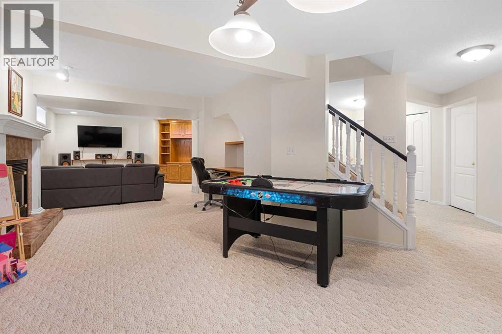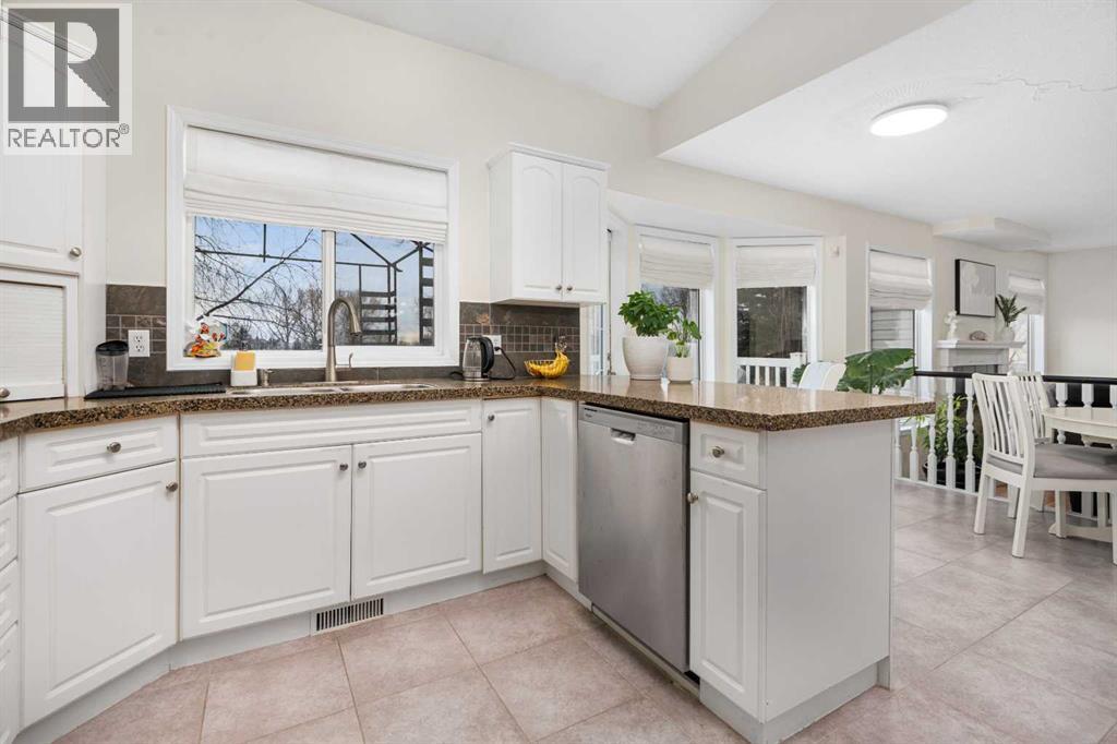 Welcome to this beautifully updated 2-storey split home, ideally located along the 10th hole of Woodside Golf Course. This impressive property combines timeless design with thoughtful modern upgrades, offering both comfort and functionality.The home has been freshly painted and features numerous recent improvements, including a new furnace and hot water tank (January 2025), new hood fan (January 2025), and a new dishwasher (November 2025), providing peace of mind for years to come.Upon entry, you’re greeted by high vaulted ceilings in the living room, dining area, and kitchen, creating an airy and welcoming atmosphere. Large windows fill the home with natural light, enhancing the open and spacious feel throughout. The main floor offers a cozy sunken family room with a gas fireplace, perfect for relaxing evenings, as well as a versatile main floor bedroom ideal for a home office or guest room.Upstairs, you’ll find three generously sized bedrooms, including a spacious primary retreat featuring a recently renovated ensuite and a custom walk-in closet by California Closets. The second level has been updated with modern vinyl plank flooring, adding a sleek and contemporary touch.The fully finished basement is designed for entertaining, offering a large recreation room complete with a fireplace, built-in desk, bar, and TV wall unit. A fifth bedroom and a 3-piece bathroom complete this flexible lower level.Additional highlights include air conditioning, location on a school bus route with priority snow removal, an extra-long driveway accommodating up to four vehicles or a large RV, and a spacious oversized double garage equipped with the heater and Level 2 EV-ready garage with 240V NEMA 14-50 outlet. .Step outside to enjoy summer days on the large deck, overlooking a beautifully maintained backyard with a sprinkler system, all just steps from Woodside Golf Course and the 525 Restaurant.This is a rare opportunity to own a well-maintained, move-in-ready home in a premium golf course location. (id:51913)