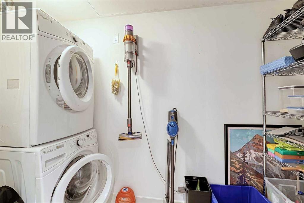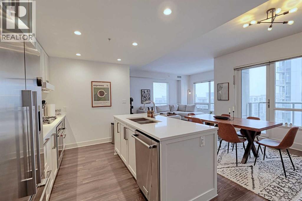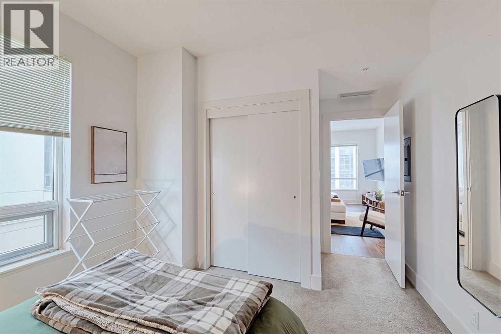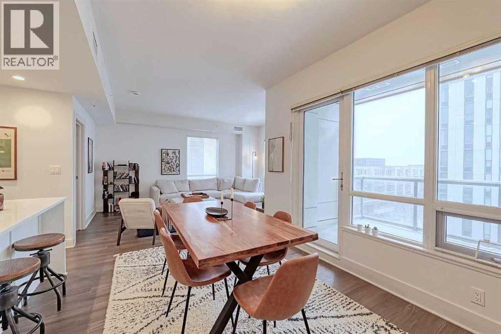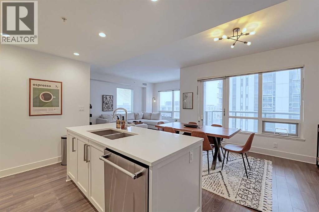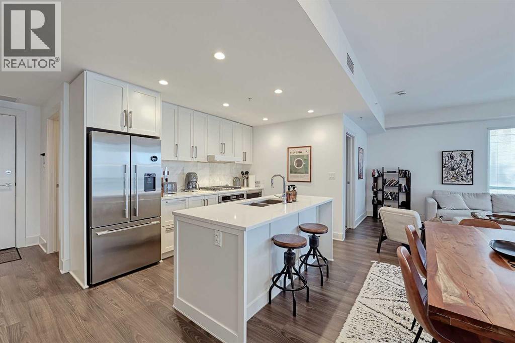 Welcome to Bridgeland Crossing. The downtown and Calgary Tower views from this 7th floor west facing condo are truly amazing. Located in the vibrant community of Bridgeland you are literally steps to shopping, parks and transit. With over 1000 sq ft he wide open plan features an island kitchen with eating bar, stainless steel appliances, quartz countertops, gas cooktop, built-in microwave, built-in dishwasher and double sinks. The spacious living room also has amazing west and SW views. The primary bedroom has plenty of room for all your furniture and and boasts a 4 piece ensuite with double sinks and a oversize shower. The second bedroom is also a good size and has a cheater access to the main 4 piece bath with soaker tub. You will love the west facing balcony. with gas bbq hookup, for evening cocktails or enjoying the Stampede fireworks. Some of the amenities the building features include two fitness centres, a yoga studio, owners lounge/Theatre room, community gardens, an outdoor patio with putting green and BBQs, a dog wash station, bike hub, and guest suite. Also included is a storage unit on the same floor for easy access. This complex is ideally located with quick access to trendy shops, cafés, the Bow River Pathway, and the Bridgeland C-train. (id:51913)