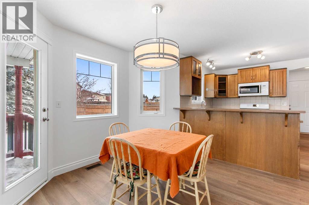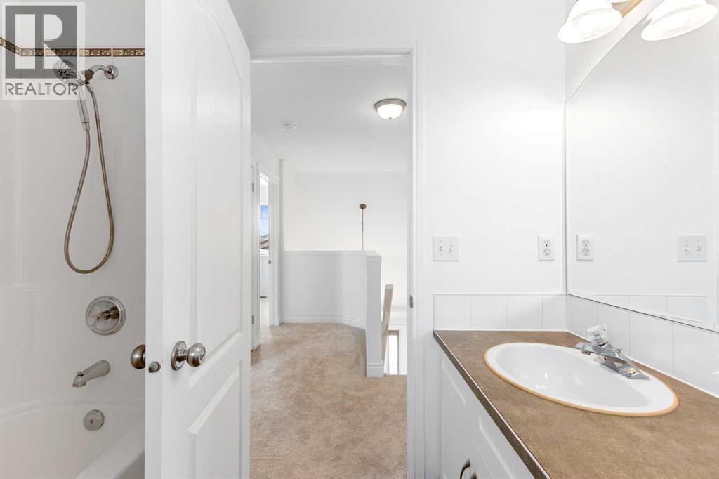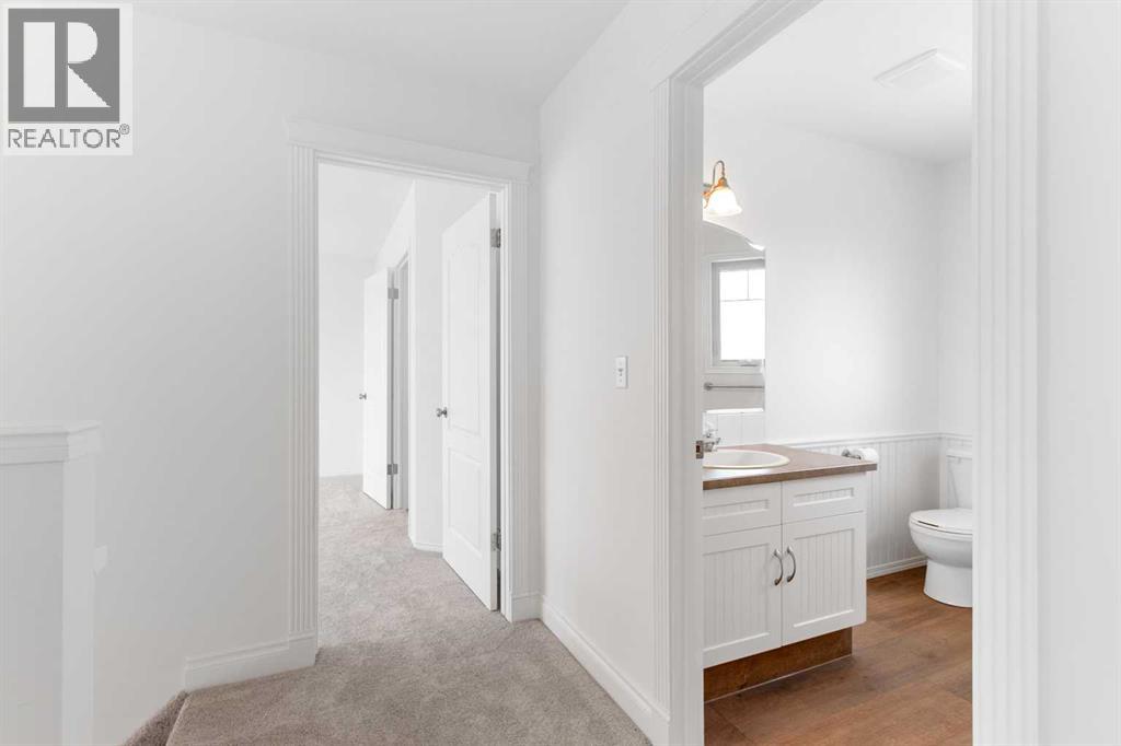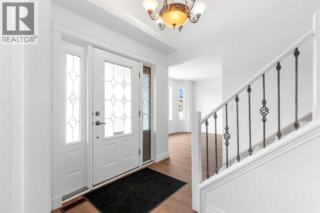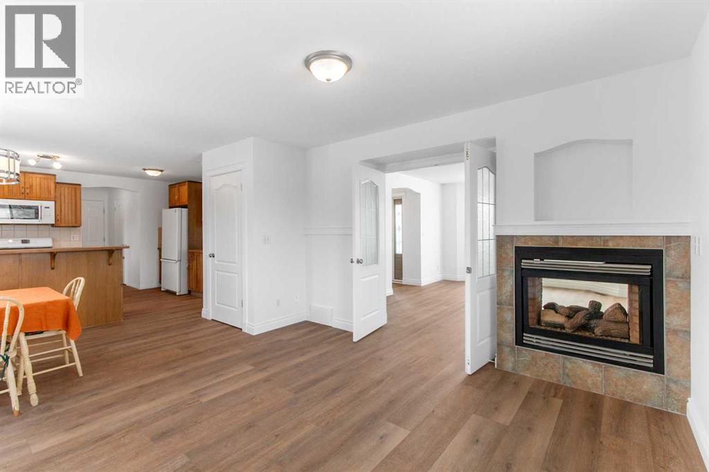 This Carstairs home was originally built as a show home and offers a thoughtful layout with tons of built in features, on a 0.35-acre lot bordered by mature trees. You will love the south facing covered front porch, no neighbors beside overlooking the beautiful GREENSPACE. Appreciate the FENCED YARD + covered rear DECK & PATIO area creating a PRIVATE SETTING that feels tucked away while still being part of a welcoming neighborhood. Built in 2002, the home is flooded with NATURAL SUNLIGHT & has been refreshed with 2026 updates to flooring, paint, light fixtures on the main and upper levels, & Furnace in 2025 giving it a clean, comfortable feel. The main floor flows easily from the kitchen—finished with attractive cabinetry & numerous built in features—into a flexible dining or office space, and then into the living room where a double sided GAS FIREPLACE adds warmth and character. Upstairs, the primary bedroom is set apart with a walk-in closet and 3-PIECE ENSUITE, while two additional bedrooms and a 4-piece bath make the upper level practical and well balanced. Downstairs, you will find large windows bring natural light into the family and hobby room, offering space to relax, create, or gather, with rough-ins for a bathroom and wet bar. The backyard has easy access from the DOUBLE ATTACHED GARAGE, complimented by an extended driveway for vehicles & toys. Set in a family-friendly area of Carstairs, with walking paths nearby and the golf course just minutes away, this is a home that offers space, privacy, and a comfortable pace of living. (id:51913)