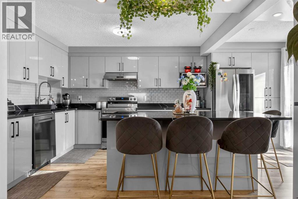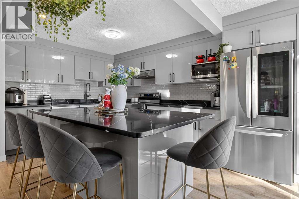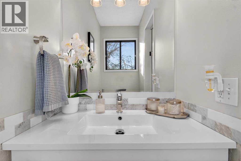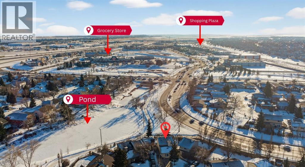 You will love this unique fully renovated two story family home, ideally situated on a quiet, kid friendly cul-de-sac surrounded by green space. Backing directly onto Nose Creek Pond and its extensive pathway system, the location offers seamless access to Nose Creek Park and Sierra Springs Shopping Centre. The bright, sunny newly renovated kitchen overlooks a lush, private garden and tranquil pond fountain perfect for everyday living and entertaining. Ample storage is complemented by a large granite-topped bar with built-in cocktail glass rack, ideal for hosting guests. Come home to a spacious vaulted living room where you can relax and snuggle up around a cozy wood-burning fireplace with chimney. An open stairway leads to a large primary bedroom with a four-piece ensuite, along with two additional generously sized bedrooms. The fully finished basement features a small kitchenette, shower, and ample closet space, making it suitable for a teenager’s bedroom, recreation area, or private guest space. Additional highlights include new flooring throughout, plenty of parking with a double-wide driveway, and a dedicated RV pad. From Yankee Valley Blvd, turn north onto Main Street, then take the next right onto Summerfield Blvd SE. (id:51913)