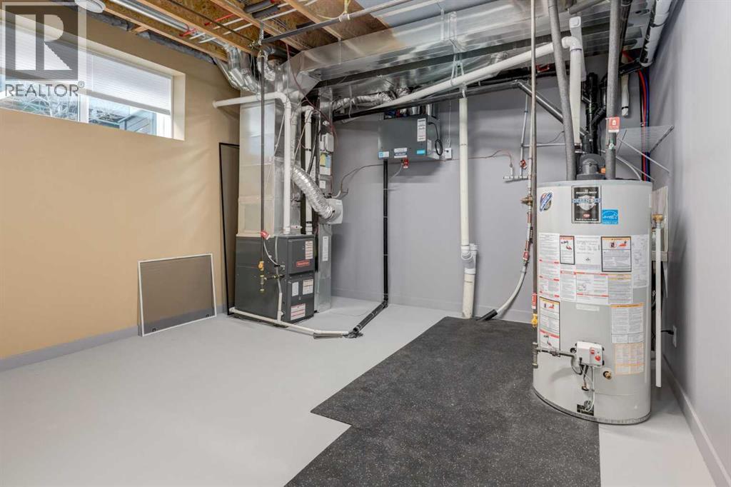 Welcome Home to your like-new double attached garage townhome offering modern design, exceptional functionality, and generous living space in the desirable community of Shawnee Park. The large, open floor plan creates a bright and welcoming atmosphere, perfect for both everyday living and entertaining. A chef’s kitchen anchors the main living area with ample counter space and a seamless flow into the dining and living rooms. The main floor also includes a flexible office space, ideal for working from home or adapting to your lifestyle needs. The entry level features a large utility and storage room that offers incredible versatility and could easily be converted into a home gym, home office, or hobby space. With loads of storage throughout the home, everything has its place. The original builder’s plan shows approximately 1,880 square feet of living space, providing plenty of room to live comfortably. Upstairs, the spacious primary suite is a true retreat, complete with a walk-in closet and a well-appointed ensuite featuring dual vanities. Two additional good-sized bedrooms and a four-piece bathroom provide space for family or guests, while an oversized upper-floor laundry room adds everyday convenience. Set within Shawnee Park, a neighbourhood known for its abundance of greenspace, parks, walking paths, and even a new pickleball court, this home offers a perfect balance of stylish living and an active, outdoor lifestyle. ** all of Shawnee Park is registered as Bareland Condominiums. The low condo fee covers all snow removal and common area landscaping ** (id:51913)