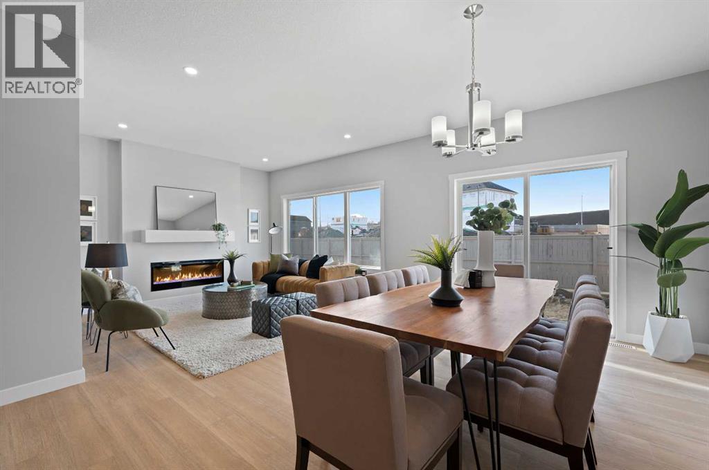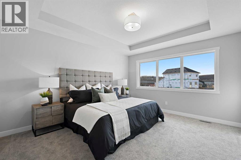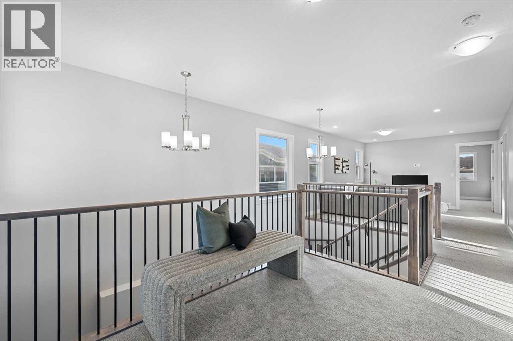 Situated in the community of Bayside, the "Mateo ll" is a thoughtfully designed home with over 2500 sq ft above grade and offers an often hard-to-find four bedrooms on the upper level. The main floor features an open-concept living space with a chef-inspired kitchen, a functional island for prep or entertaining, sleek stainless-steel appliances, and beautiful cabinetry. Not only does this home have 4 bedrooms upstairs, but it also offers a main-floor office. With this home, there is no sacrificing space. The open-concept living space is perfect for entertaining, with ample room for family dinners in the dining room and for relaxing in the living room, which features a striking focal-point fireplace. Complementing the main floor is a mudroom off the garage, which helps keep all the odds and ends organized, and a powder room nicely tucked away. Venturing upstairs, you will notice the open-to-above foyer, which adds a touch of sophistication to the home. A nice-sized loft greets you at the top of the stairs, and the primary suite offers amicable separation from the other three bedrooms, all of which have walk-in closets. The sizeable primary bedroom provides plenty of space for a king-size suite, and the spa-like ensuite offers dual sinks, a soaker tub, a separate shower, and a huge walk-in closet. Completing the upper level is a 3-piece bathroom with a tub, which makes kids' bathtime a breeze and an upper laundry for convenience. The basement is unfinished and has a separate side entrance, 9' ceilings, and is laid out well for future development. Bayside is one of Airdrie’s most desirable communities, known for its scenic canal system and year-round outdoor lifestyle. Residents enjoy walking paths, parks, and activities like paddle boarding in the summer and skating in the winter. With close access to schools, shopping, and everyday amenities, Bayside offers the perfect balance of nature, convenience, and community living. *PHOTOS ARE OF A PREVIOUSLY BUILT MODEL. Col ours will vary. RMS has been applied to construction drawings provided by the builder. Taxes to be assessed. (id:51913)