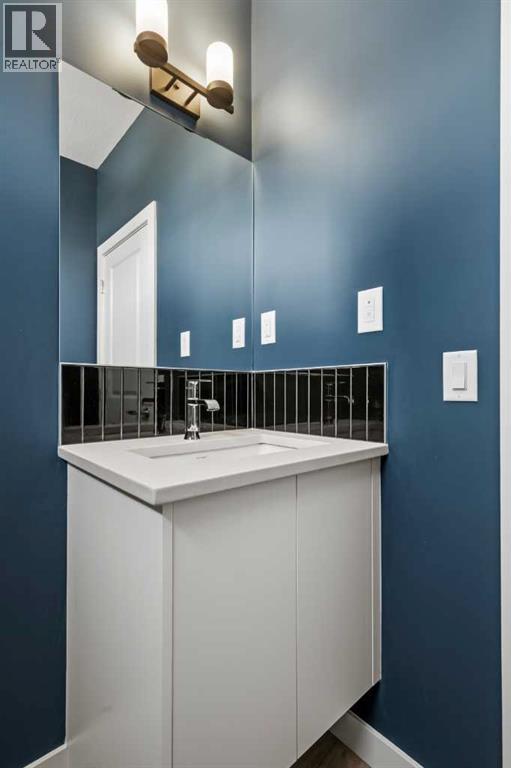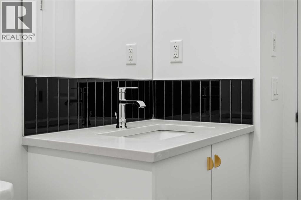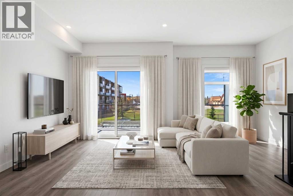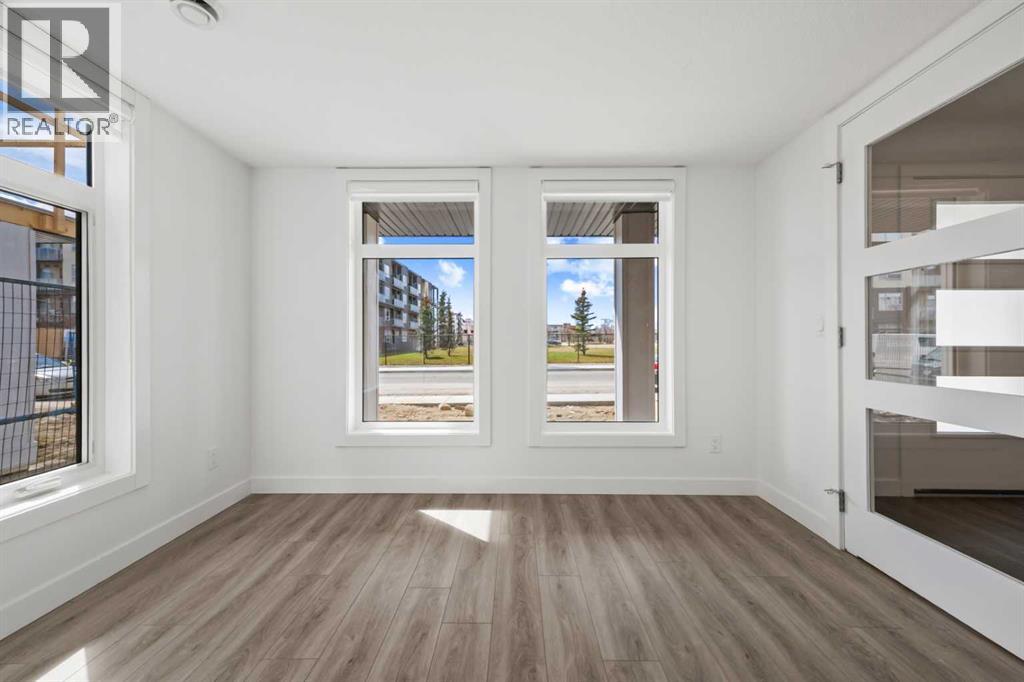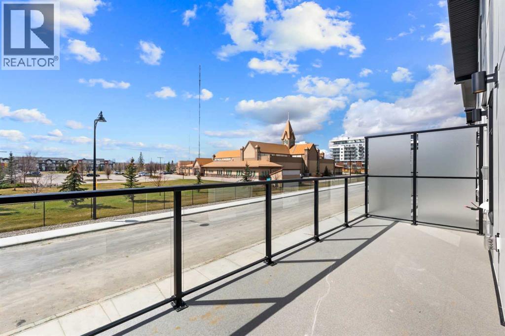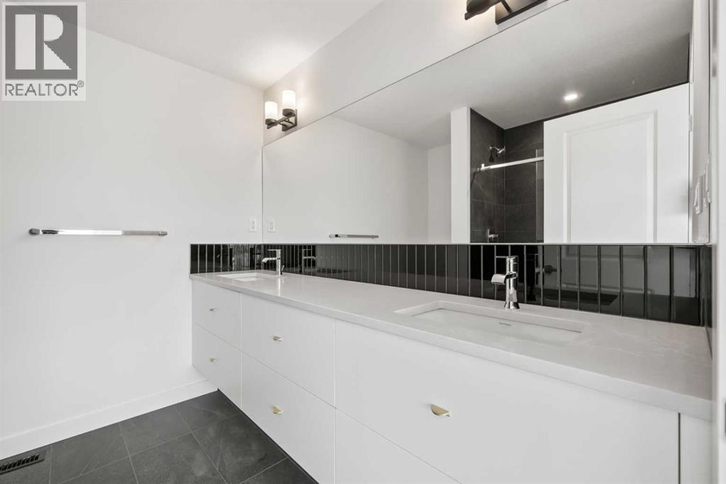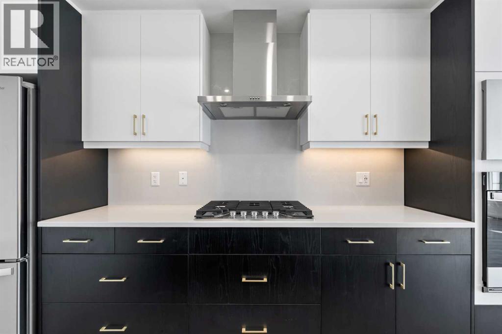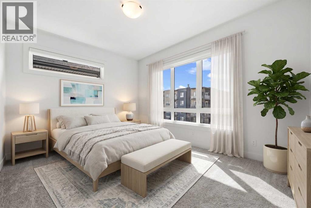 Experience elevated urban living in West Springs with this brand-new, never-occupied three-storey townhouse offering over 2,340 sq. ft. of total living space, sophisticated upgrades, and an unbeatable west Calgary location. Thoughtfully designed with 3 bedrooms, 2.5 bathrooms, a private office/flex space, and a double attached garage, this home blends modern style with everyday functionality.The entry level features a versatile private office/flex room enclosed with elegant double French glass doors, making it ideal for working from home, a fitness space, or additional lounge area. From here, enjoy direct access to the double attached garage and convenient guest street parking on a quiet road.The main living level showcases a bright open-concept layout with oversized windows that flood the home with natural light. Stylish luxury vinyl plank flooring, modern metal railings, upgraded lighting, and a striking dark and moody designer colour palette create a sophisticated atmosphere throughout. The beautifully appointed two-tone kitchen features quartz countertops, a full quartz backsplash, stainless steel appliances, built-in oven, gas cooktop, range hood, and a large island with breakfast bar seating. The spacious dining and living areas flow seamlessly together, creating the perfect space for entertaining or everyday living.Step outside to the impressive oversized west-facing balcony with south exposure, glass railings, unobstructed views, a BBQ gas line, and plenty of room to relax and enjoy sunny afternoons and evening sunsets.Upstairs, the spacious primary retreat offers an extended closet and a private 4-piece ensuite with quartz counters and modern finishes. Two additional bedrooms, another full bathroom, and upper-level laundry complete the top floor, providing convenience for families, professionals, or roommates.Additional highlights include over $22,000 in upgrades, all appliances including washer and dryer, all window coverings, AC rough-in, Hardie board exterior, tankless hot water, and a gradient mechanical system.Located within walking distance to shopping, restaurants, parks, pathways, schools, and everyday amenities, this exceptional West Springs home offers easy access to downtown Calgary, major roadways, and everything west-side living has to offer.Modern design, premium upgrades, and an outstanding location make 848 83 Street SW an incredible opportunity to own in one of Calgary’s most sought-after communities. (id:51913)